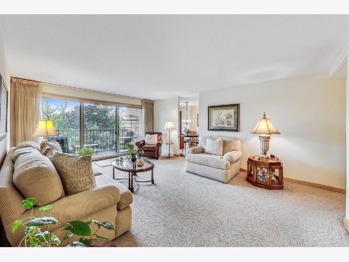 SOLD BEFORE PRINT. Spacious and gracious, this 2 bedroom 2 1/2 bath condo is nestled in Park Ridge's highly sought after Park Lane gated community. A fabulous foyer welcomes you. The lovely living room is lit by sliding glass doors that lead to the first of two balconies with treetop views of the gorgeous grounds. Shining wood floors lead to the inviting kitchen with plentiful cabinetry. Dual-sided cabinets perch above the seats at the breakfast bar. Host gatherings in your elegant dining room. Your guests can happily drift into the adjacent family room which is graced by a cozy gas fireplace with access to a sociable second balcony. This side of the home is filled out by a handy workshop, laundry room, and half bath. The cozy den/office with built-in shelves offers a peaceful place to work. Well-lit mirrors and a pleasing tub-shower are the hallmarks of the hallway bathroom. Fantastic floor-to-ceiling cabinets plus a generous closet highlight the guest bedroom. Bright and beautiful, the expansive primary suite easily accommodates king size furniture and has a wonderful, well-organized walk-in closet. The en suite bathroom was thoughtfully laid out for maximum comfort and privacy with its separate shower, tub, and wide vanity. The superior storage and fabulous flow of this home are a winning combination. Tour Park Lane's abundant array of amenities: billiards room, lending library, party room with kitchen, sundeck, outdoor pool, tennis & shuffleboard courts, exercise room with sauna, and outdoor deck with grilling area. Two side-by-side parking spaces in the heated garage and a roomy storage cage are included. Welcome home!