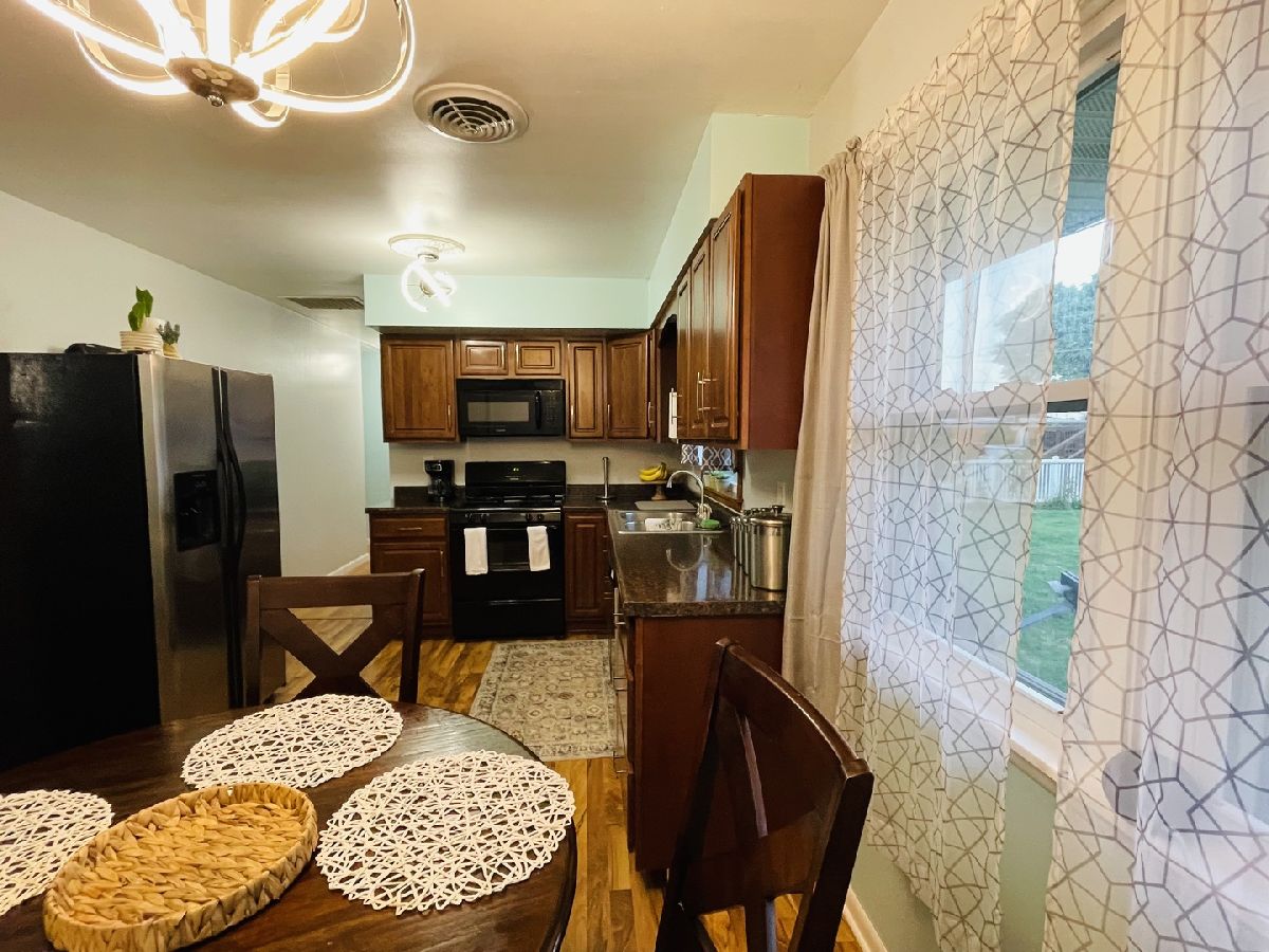 MODERN, OPEN FLOOR PLAN MOVE IN READY BRICK RANCH offers (3) Bedroom, (1) Bath home, (1) Car Garage 15' x 27'- The kitchen has beautiful cabinets with plenty of counter space for cooking. Other features include large picture window, main floor laundry, and a spacious pantry. Updates include NEW Flooring, Light Fixtures, and Painted Rooms. Oven/Range, Refrigerator, Microwave, Dishwasher, Washer/Dryer Appliances Stay with the Home. The oversized outdoor shed is an asset for extra storage or lawn equipment. Enjoy outdoor living on the large front porch deck or the fenced in back yard.