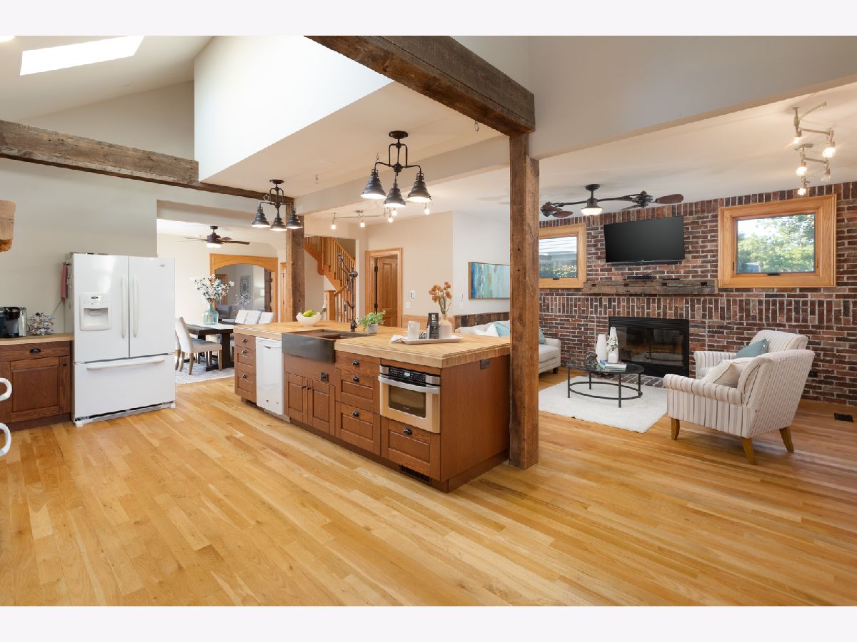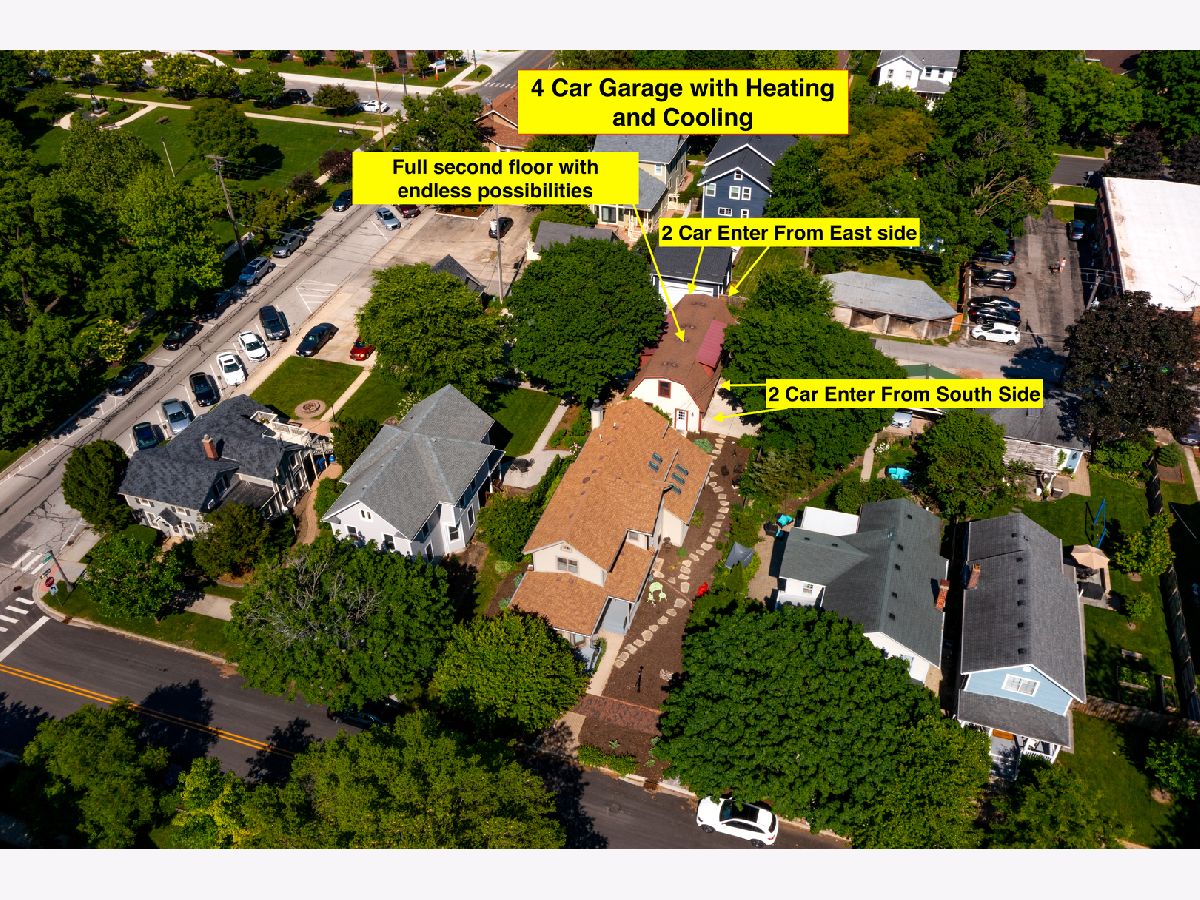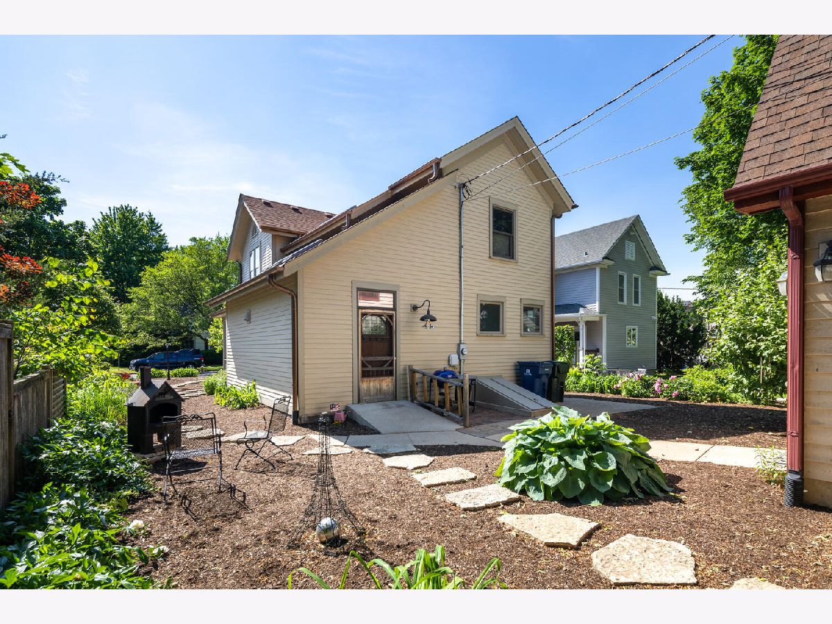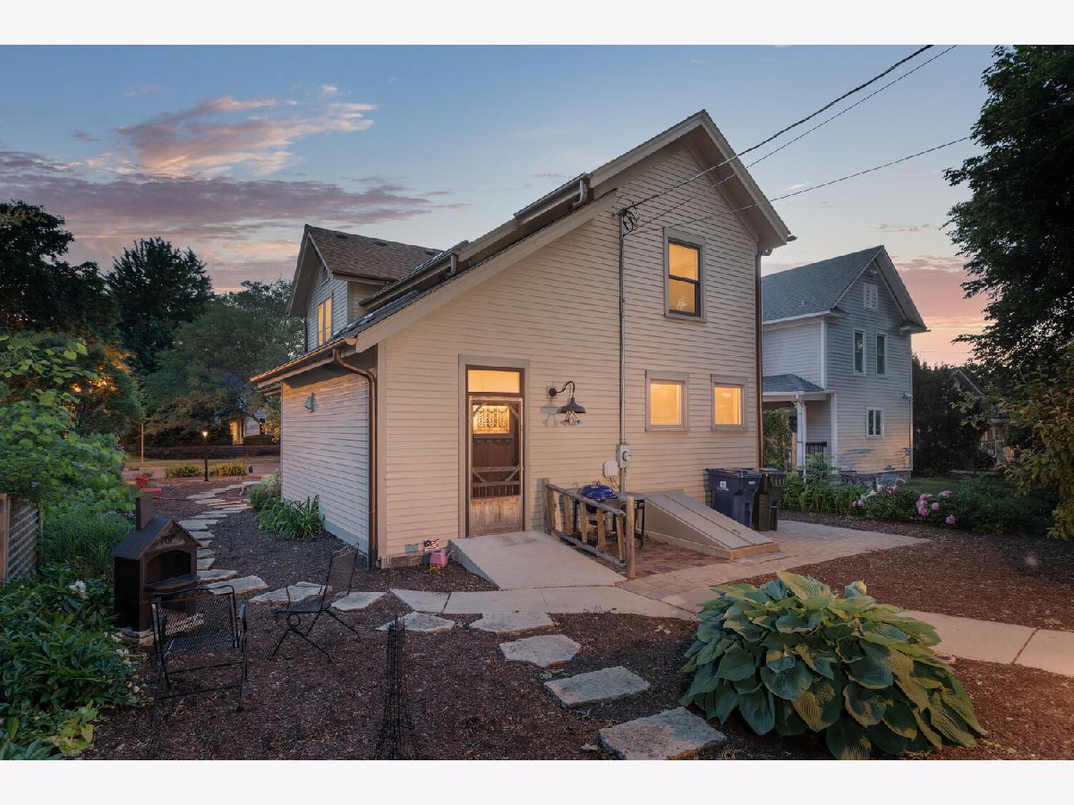 This home beautifully merges modern amenities with vintage appeal, and it is just a short walk from the train, downtown Naperville, and schools. Originally built in1860, this approx. 2,300 sf, 3-bedroom, 2 full bath home was completely remodeled, with an addition, in 2014. The homeowners repurposed wood beams and accents from the original structure to create a fresh take on living in the Historical District of downtown Naperville. Light infuses the vaulted kitchen through two skylights which are controlled with a remote and sensors that will automatically close them if it starts to rain. The kitchen also boasts a large butcher block island, an elegant copper farm sink, updated appliances, and reclaimed brick around the stove. The hearth room off the kitchen is a perfect place to relax or entertain. The fireplace is nestled in a reclaimed brick wall and features a wood beam mantle that was once part of the original home. The kitchen and the recently added first floor full bath have radiant flooring. Large windows and doorways allow light to flow throughout the first floor, creating an open space. Arched French doors can separate the dining room from the living room and family room if desired. Beautiful wood floors run throughout both floors of the home, and a wide staircase takes you to the second floor. Each of the three bedrooms on this level has handcrafted barn beam closet doors, and the third bedroom has a built-in Murphy bed. The full bath has reclaimed wood accents, a copper soaking tub, a copper sink, slate tile flooring, and a large walk-in shower. The skylights over the tub infuse the room with natural light. The second floor laundry room has a newer washer and dryer. Gain approximately 2,000 sf with the four-car, heated and cooled, detached garage. Once the woodshop of the owner, the approx. 1,000sf upstairs space has innumerable possibilities, from guest quarters to office space to billiard room. The 12 year-old garage has a separate furnace and air conditioner, and is just steps from the house. Repurposed doors create the backdrop for the storage space located in the back entryway of the home. The yard is low maintenance and enhanced by a meandering limestone path that connects the front yard to the back. The roof and hardie board siding were all new with the renovation, as is the high-end, high-efficiency boiler system that heats the house and radiant flooring. There are two furnaces and air conditioners in the house, along with the furnace and air conditioner in the garage. The basement is unfinished and has walkout cellar doors. This home is a beautiful blend of modern amenities and history, and it is close to the train and all the wonderful attractions downtown Naperville has to offer. Welcome home!