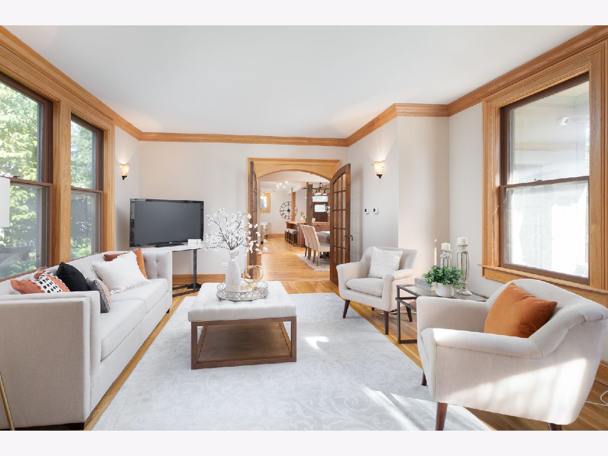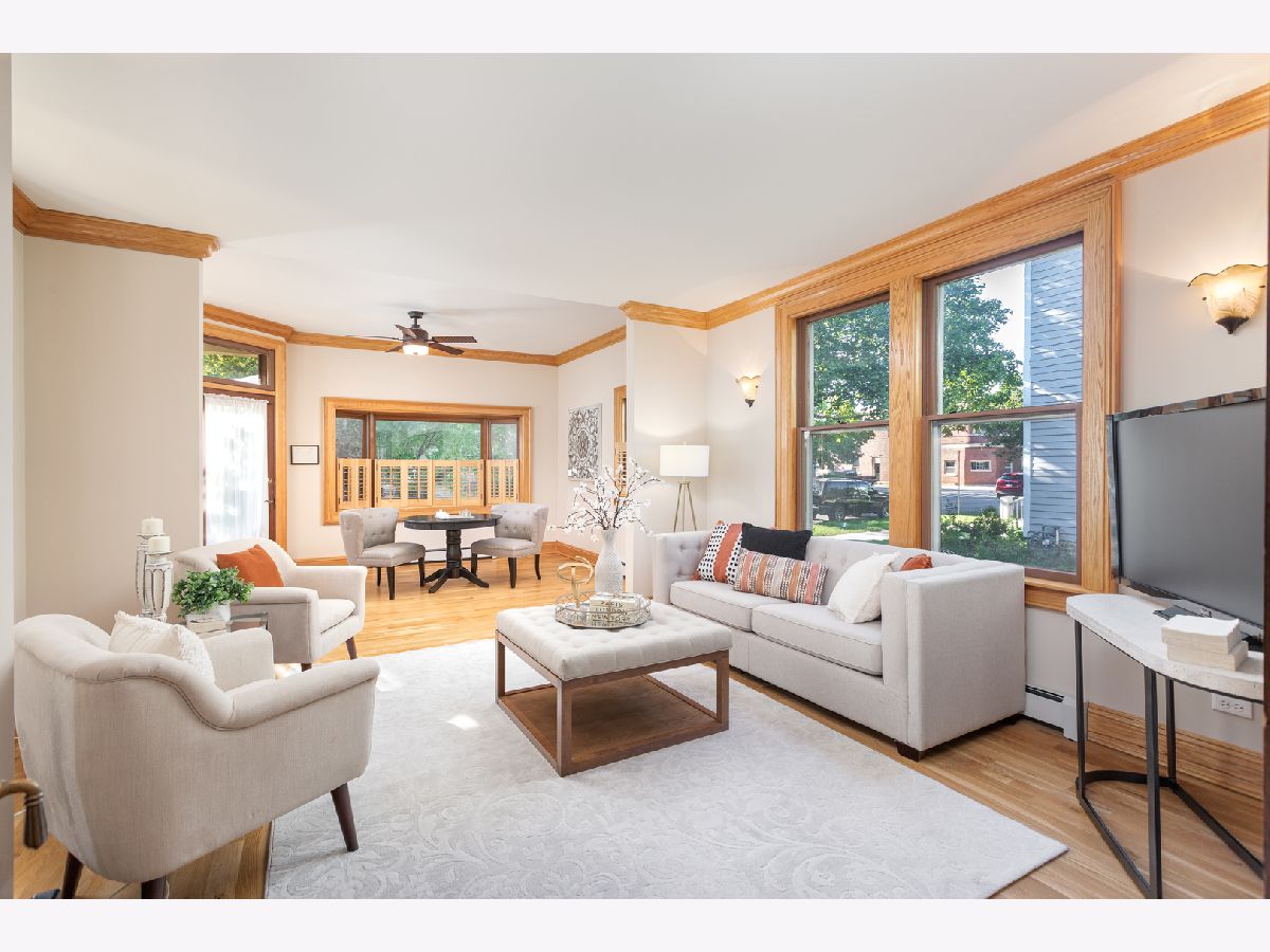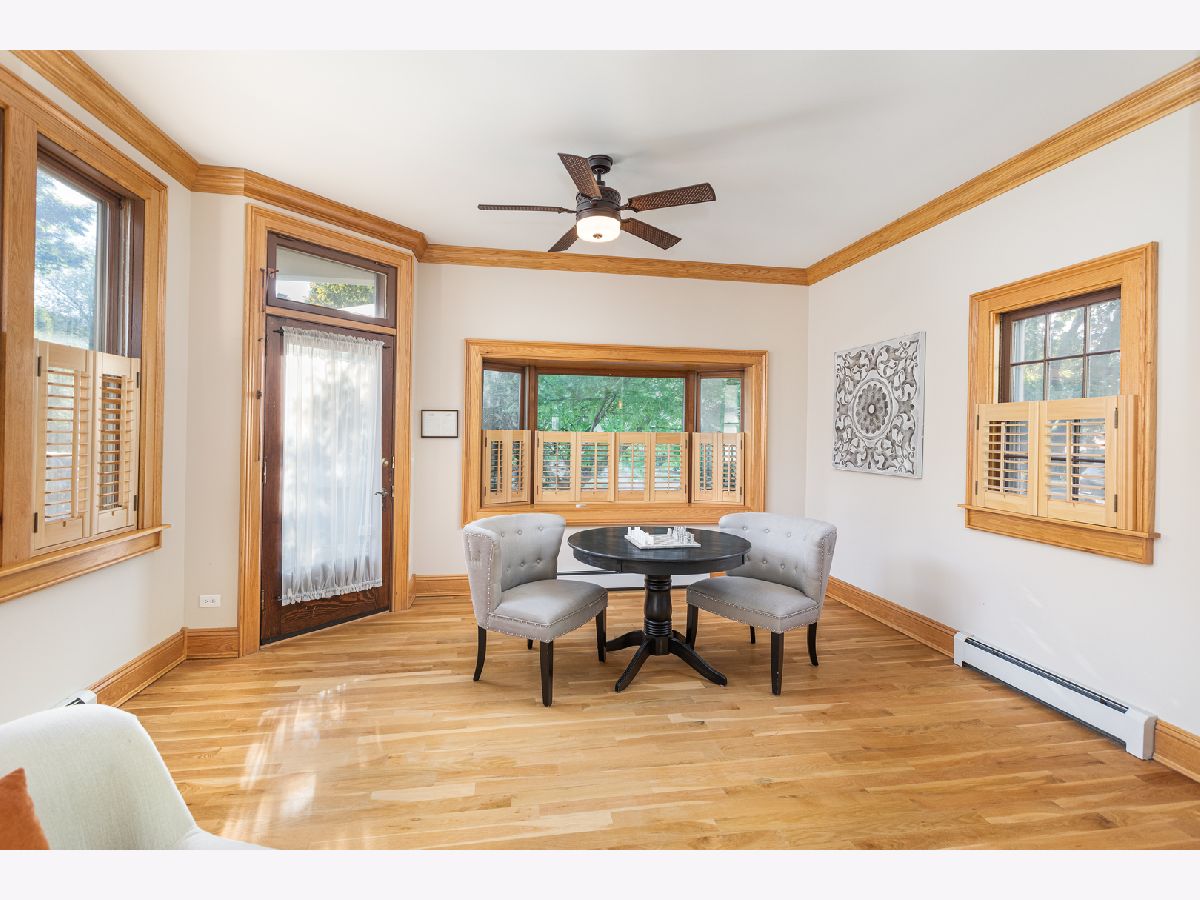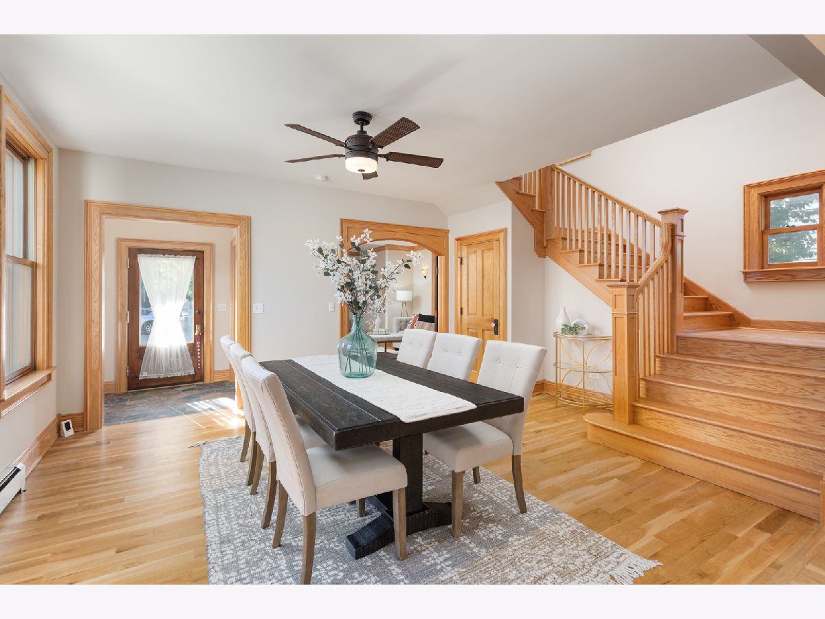 This home beautifully merges modern amenities with vintage appeal, and it is just a short walk from the train, downtown Naperville, and schools. Originally built in1860, this approx. 2,300 sf, 3-bedroom, 2 full bath home was completely remodeled, with an addition, in 2014. The homeowners repurposed wood beams and accents from the original structure to create a fresh take on living in the Historical District of downtown Naperville. Light infuses the vaulted kitchen through two skylights which are controlled with a remote and sensors that will automatically close them if it starts to rain. The kitchen also boasts a large butcher block island, an elegant copper farm sink, updated appliances, and reclaimed brick around the stove. The hearth room off the kitchen is a perfect place to relax or entertain. The fireplace is nestled in a reclaimed brick wall and features a wood beam mantle that was once part of the original home. The kitchen and the recently added first floor full bath have radiant flooring. Large windows and doorways allow light to flow throughout the first floor, creating an open space. Arched French doors can separate the dining room from the living room and family room if desired. Beautiful wood floors run throughout both floors of the home, and a wide staircase takes you to the second floor. Each of the three bedrooms on this level has handcrafted barn beam closet doors, and the third bedroom has a built-in Murphy bed. The full bath has reclaimed wood accents, a copper soaking tub, a copper sink, slate tile flooring, and a large walk-in shower. The skylights over the tub infuse the room with natural light. The second floor laundry room has a newer washer and dryer. Gain approximately 2,000 sf with the four-car, heated and cooled, detached garage. Once the woodshop of the owner, the approx. 1,000sf upstairs space has innumerable possibilities, from guest quarters to office space to billiard room. The 12 year-old garage has a separate furnace and air conditioner, and is just steps from the house. Repurposed doors create the backdrop for the storage space located in the back entryway of the home. The yard is low maintenance and enhanced by a meandering limestone path that connects the front yard to the back. The roof and hardie board siding were all new with the renovation, as is the high-end, high-efficiency boiler system that heats the house and radiant flooring. There are two furnaces and air conditioners in the house, along with the furnace and air conditioner in the garage. The basement is unfinished and has walkout cellar doors. This home is a beautiful blend of modern amenities and history, and it is close to the train and all the wonderful attractions downtown Naperville has to offer. Welcome home!