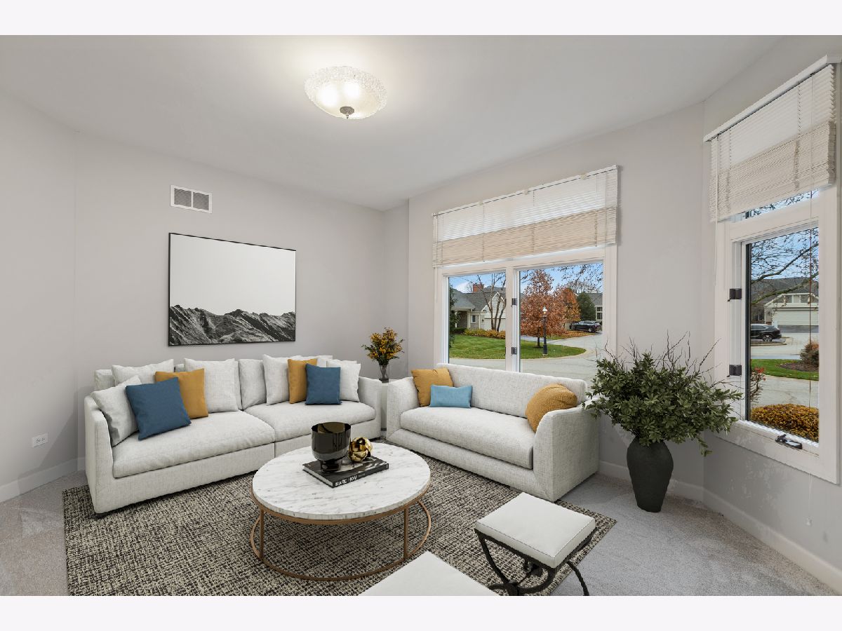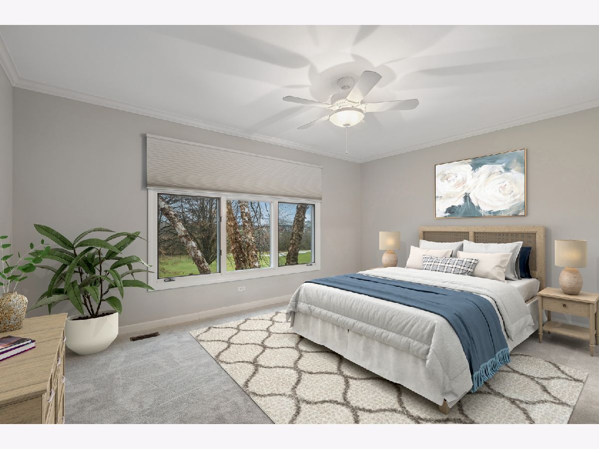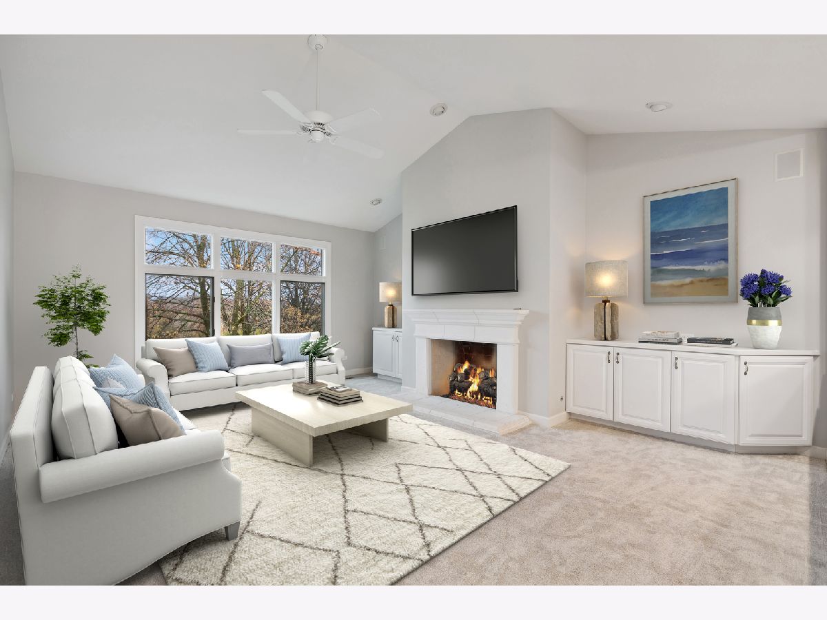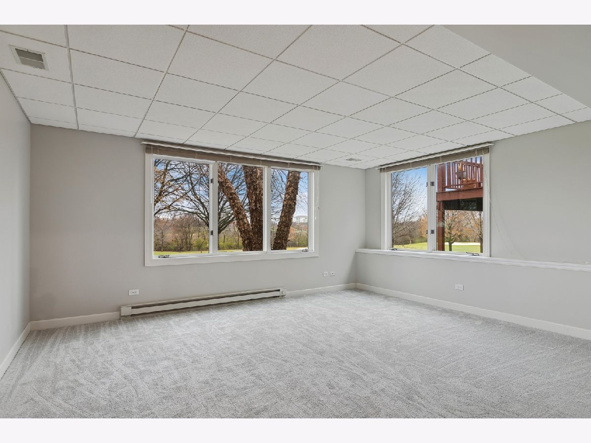 Tranquility. Beauty. Grace. These words cannot quite capture the awe-inspiring attraction of this incredible home perched on the 13th fairway of the Boulder Ridge golf course. Nestled on professionally manicured landscaping and offering breathtaking views, this home is an absolute dream! The sun-drenched interior features high ceilings and an open concept layout that is sure to impress. Endless living space in the bright living room, separate dining room and large family room with vaulted ceilings, recessed lighting and a cozy gas fireplace. The stylish kitchen features an abundance of cabinets, under-cabinet lighting, granite countertops, recessed lighting, large center island and an eating area that leads out to the deck. Opposite the living area, is an elegant master with vaulted ceilings, his & hers walk-in closets and a private en suite bath with dual vanities and a whirlpool tub - your own peaceful retreat. The second bedroom is spacious with a gorgeous bay window. Completing the main level is a second full bathroom and a laundry room with extra storage and a sink. PREPARE TO BE AMAZED as you make your way downstairs to the finished walkout lower level. There is a 3rd large bedroom and another full bathroom. Plus, a HUGE rec room/entertainment area with a wet bar, fireplace, recessed lighting and a wall of windows that overlooks the patio and provides beautiful views of the fairway. Enjoy the outside space on your private deck located off the kitchen or the patio below. Set against the tranquil backdrop of the golf course, this home artfully balances indoor and outdoor spaces, seamlessly connecting the home with the grounds. Updates include: brand new carpeting and paint throughout, newer roof, AC, furnace and water heater. Irrigation and alarm systems included. The Boulder Ridge community has voluntary membership access for dining, social and golf but you do NOT have to be a member to live here. Just minutes from shopping, dining, entertainment, parks, trails, Randall Rd & I90 expressway, this home is the ULTIMATE LUXURY and one you don't want to miss!