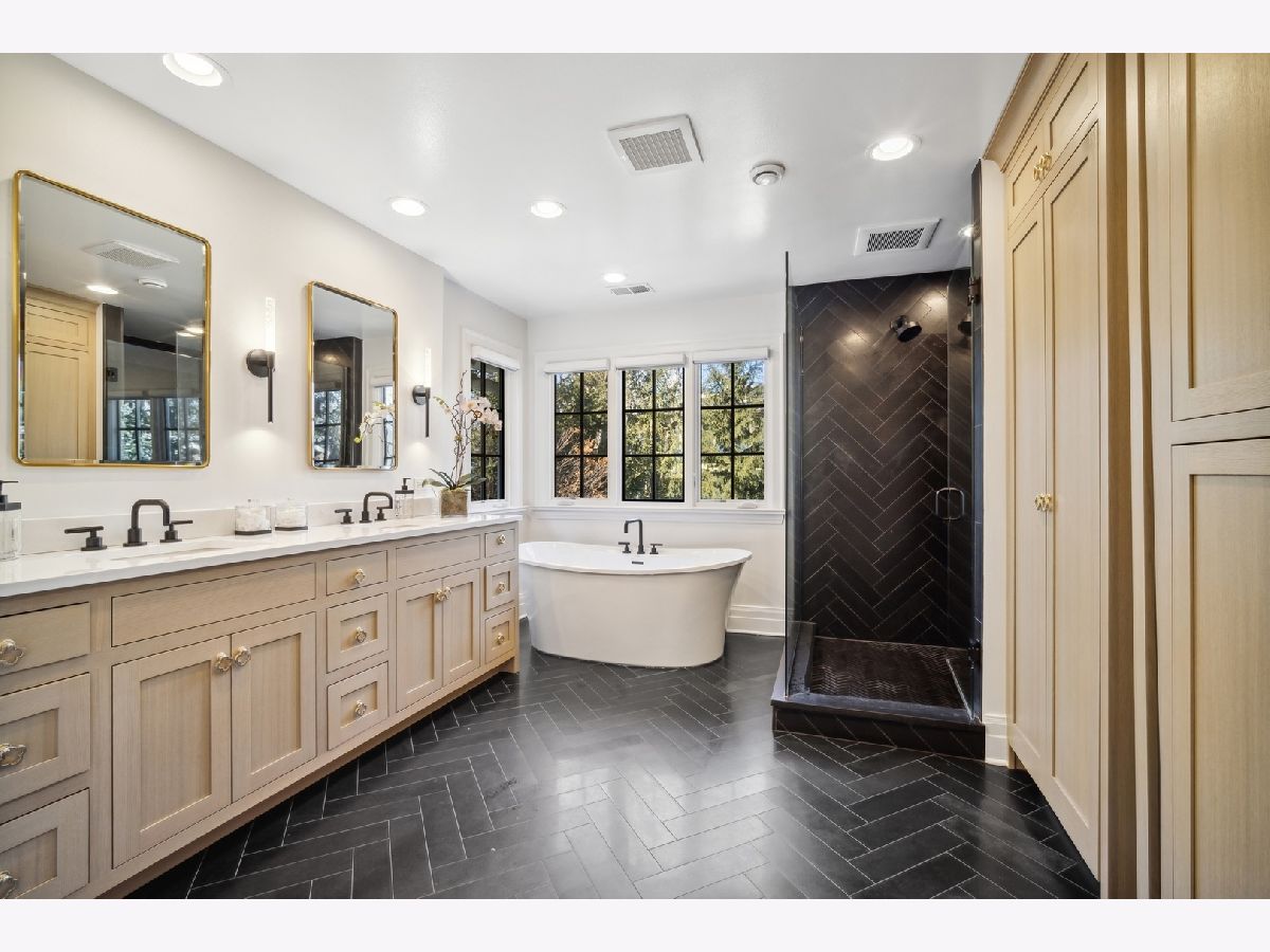 IN A CLASS OF ITS OWN! Located in East Lake Bluff, this impressive residence with approximately 4665 sf on first two floors and an additional 1900 sf in the highly finished basement, has been masterfully remodeled and redesigned offering a new open chic look and features designer details and superior finishes throughout. Attention has been paid to every detail. The state-of-the-art, restyled kitchen boasts custom cabinetry, huge island with 5' sink with two built-in workstations, two ovens, two dishwashers, Viking range, Subzero stand-alone refrigerator and freezer, and walk in pantry with fridge, make this area perfect for cooking and entertaining. The inviting dining room has an adjacent fully fitted-out entertainment bar with sink and wine cooler. Working from home becomes a delight in the soaring one- and one-half story office with exquisite millwork, coffered ceiling, fully equipped bar, Subzero fridge and half bath. The comfortable family room with fireplace adjoins the kitchen and leads to the garden room with both windows and screens. Pretty primary bedroom has redone spa bath with heated floors, separate tub, and shower with dual heads. Expansive basement includes large recreation area, fifth bedroom, fourth bath with steam shower, third laundry room and ample storage. Emtek and Marvin windows, Sonos sound system, heated 3 car garage wired for an electric vehicle, invisible dog fence, keyless home entry. Too many special features to mention. Nothing to do but move in.