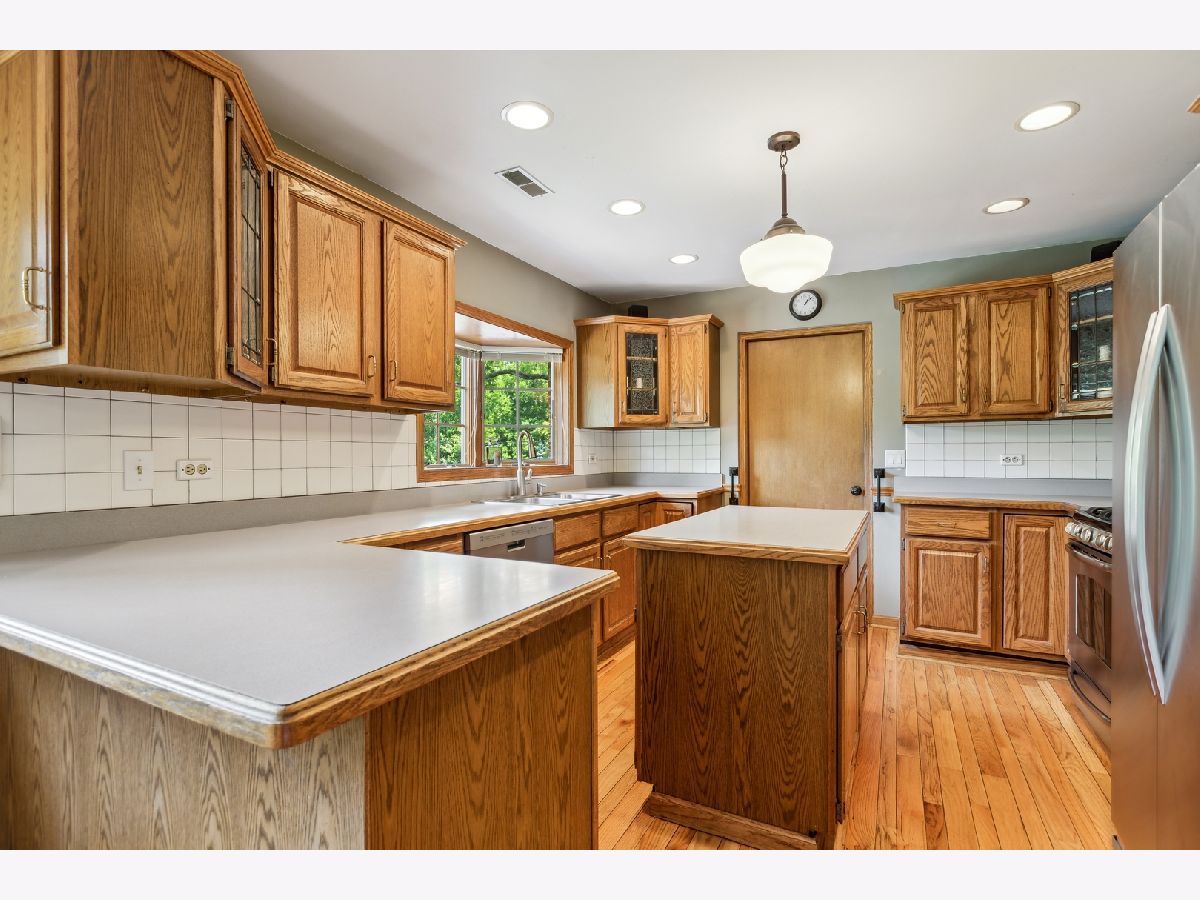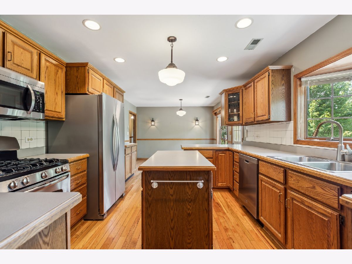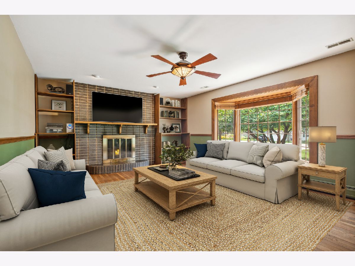 Exceptional opportunity to own this charming, all-brick ranch home. Nestled on a large, premium lot where curb appeal abounds! The covered front porch welcomes you inside to discover the fine detail and craftsmanship throughout. The stylish kitchen boasts stainless steel appliances, a center island, rich hardwood floors, recessed lighting and 2 bay windows. Creating the perfect space for entertaining guests, the sun-drenched living room features hardwood floors, recessed lighting, a cozy fireplace and another bay window. The main level also showcases 3 bedrooms, each with ceiling fans and upgraded windows. Plus, there is a lovely full bathroom as well. Venture downstairs to the spacious lower level, which provides even more fantastic living space. There is a large family room with a wood-burning fireplace, a REC room, 4th bedroom, 2nd full bathroom and a flex room that can be utilized as an office, playroom, home-gym, the possibilities are endless. This amazing home also includes an expansive, multi-use mudroom with a side entrance door, a second staircase leading to the lower level and a full attic accessible via a new 22.5-inch-wide aluminum ladder. The backyard is truly a SHOW STOPPER! The porch and patio overlook a beautiful, serene backdrop with endless green space, mature trees and colorful perennials. Your own private oasis! Plus, a 127-square-foot double-door shed with electricity, perfect for storing your riding lawn mower and various items. The attached 2-car garage provides even more storage space. A new boiler was installed in 2023 and a new water heater in 2021. Original hardwood flooring in the kitchen, family room and the 2 bedrooms on the main floor. Close to endless shopping, dining, entertainment, parks, top-rated schools, easy access to highways and the Metra, this property offers an unparalleled living experience you won't want to miss!