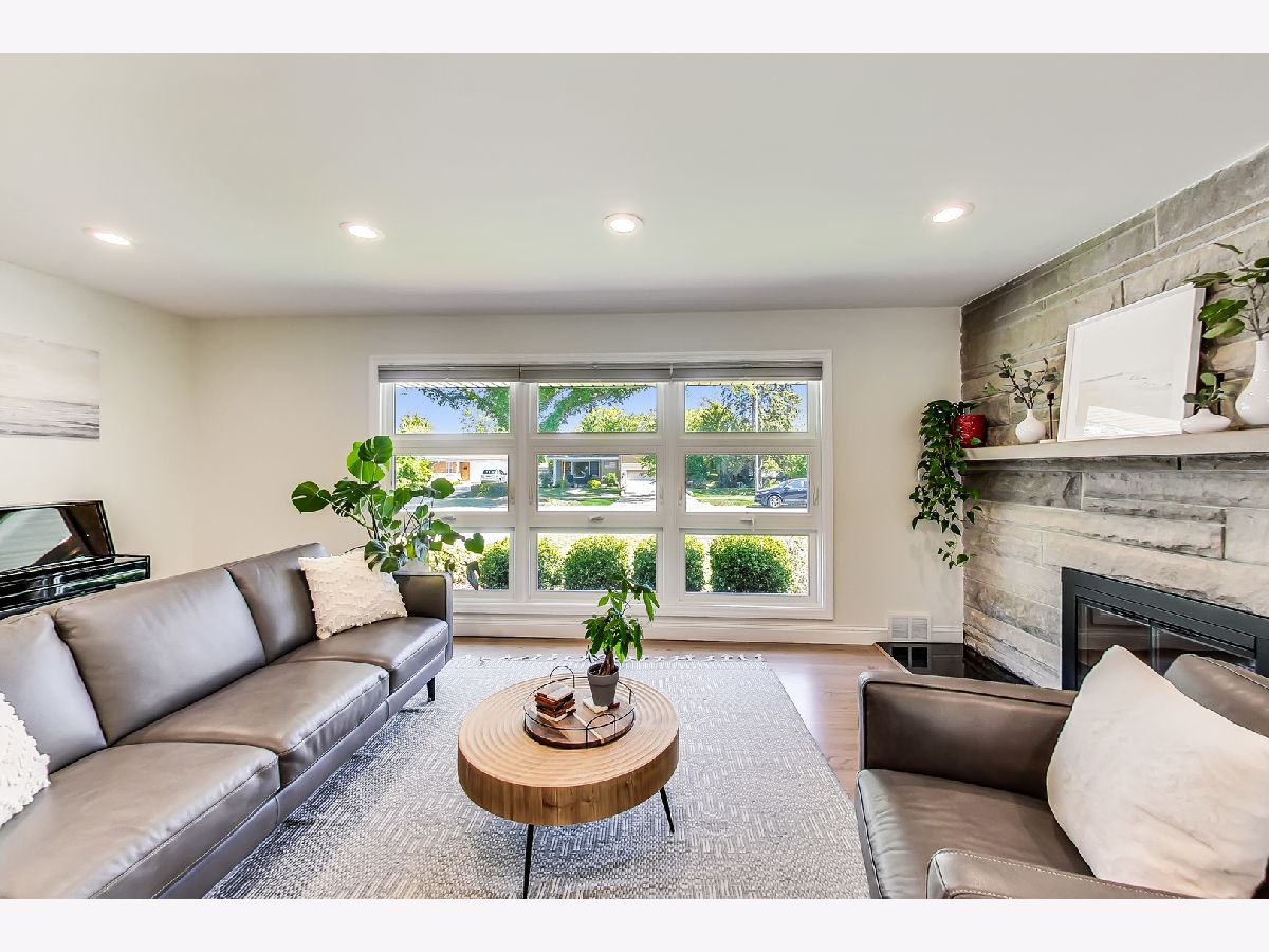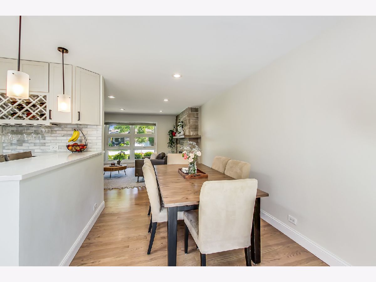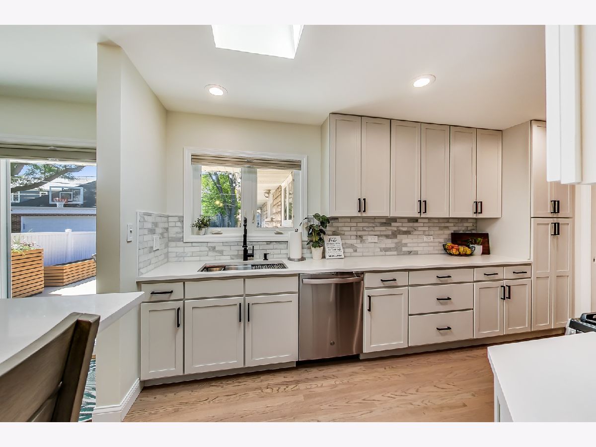 This lovely ranch home in Park Ridge has been completely updated and looks fantastic! There is a marble floored entry that leads in to a beautiful living room with a huge front window and a gas burning fireplace. There is a separate dining room which is open to the renovated (2021) kitchen. The kitchen has white cabinets, stainless steel appliances, quartz counters and a breakfast bar. The layout is such that the bedrooms on the main level are at the back of the house, away from the living space. The primary bedroom is spacious with 2 closets and a nook that serves as an office or could be turned in to an ensuite bath. The basement space is fully renovated and adds tons of living space to the square footage. There is a family room area that has a wood burning fireplace, plus a laundry room, a large pantry, a bedroom (or office) and a phenomenal full bath. In addition, there is an area for crafting, homework, or whatever your imagination can think of. Also, lots of storage. Beyond all that the inside of this house has to offer is the amazing yard! A large patio and plenty of green space make this yard a perfect spot for entertaining, playing and relaxing! There is also a shed for additional storage. Along with all of that comes a location perfectly situated close to school, park and train!