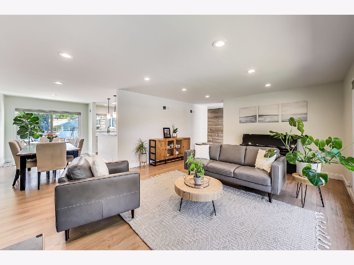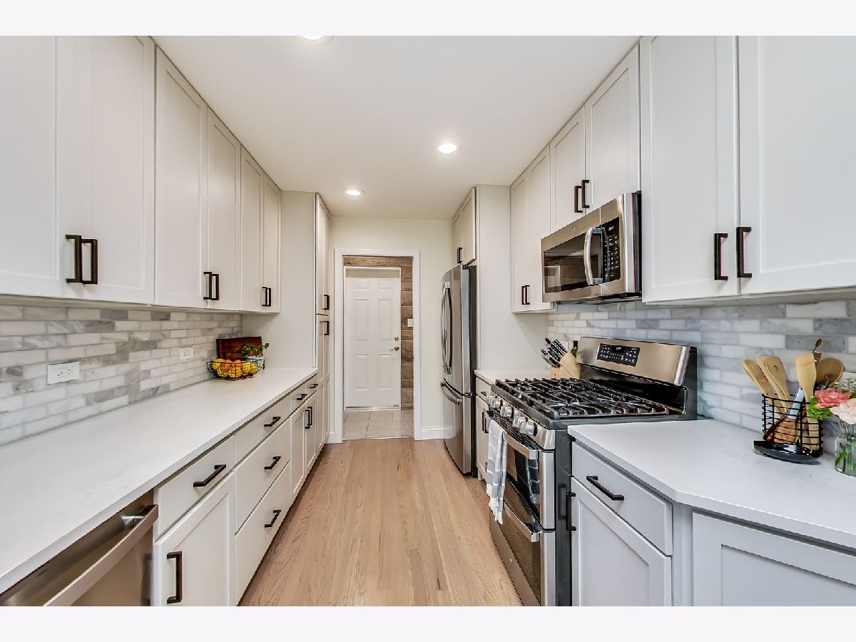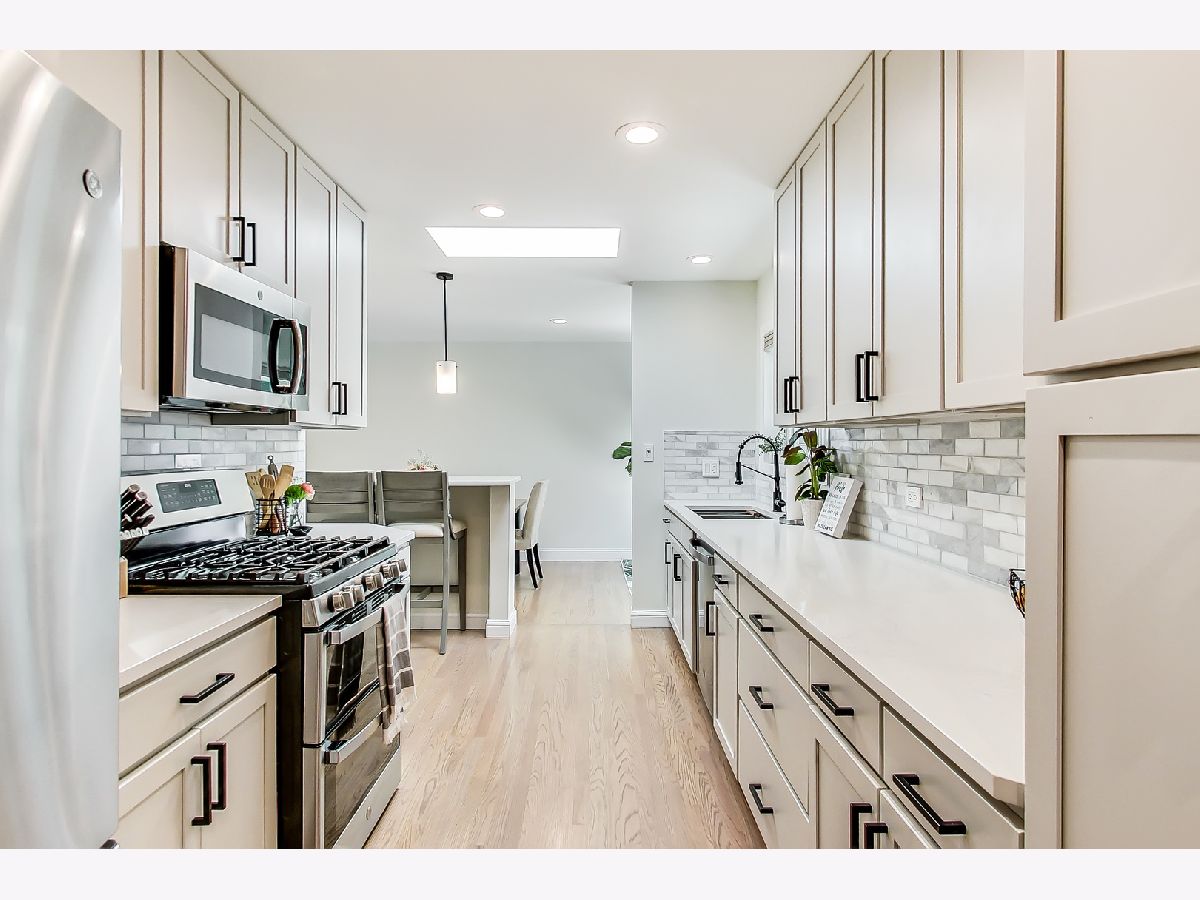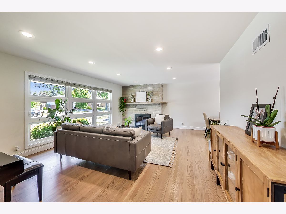 This lovely ranch home in Park Ridge has been completely updated and looks fantastic! There is a marble floored entry that leads in to a beautiful living room with a huge front window and a gas burning fireplace. There is a separate dining room which is open to the renovated (2021) kitchen. The kitchen has white cabinets, stainless steel appliances, quartz counters and a breakfast bar. The layout is such that the bedrooms on the main level are at the back of the house, away from the living space. The primary bedroom is spacious with 2 closets and a nook that serves as an office or could be turned in to an ensuite bath. The basement space is fully renovated and adds tons of living space to the square footage. There is a family room area that has a wood burning fireplace, plus a laundry room, a large pantry, a bedroom (or office) and a phenomenal full bath. In addition, there is an area for crafting, homework, or whatever your imagination can think of. Also, lots of storage. Beyond all that the inside of this house has to offer is the amazing yard! A large patio and plenty of green space make this yard a perfect spot for entertaining, playing and relaxing! There is also a shed for additional storage. Along with all of that comes a location perfectly situated close to school, park and train!
