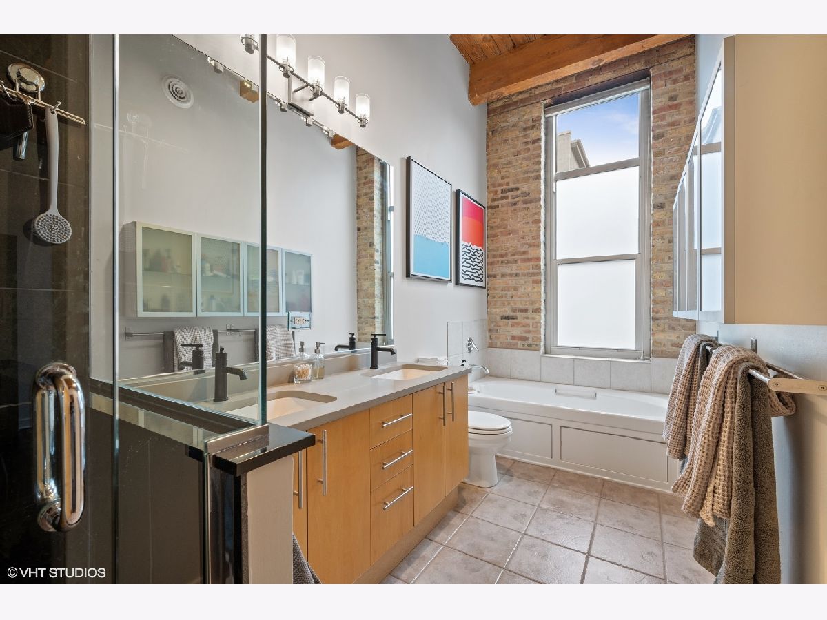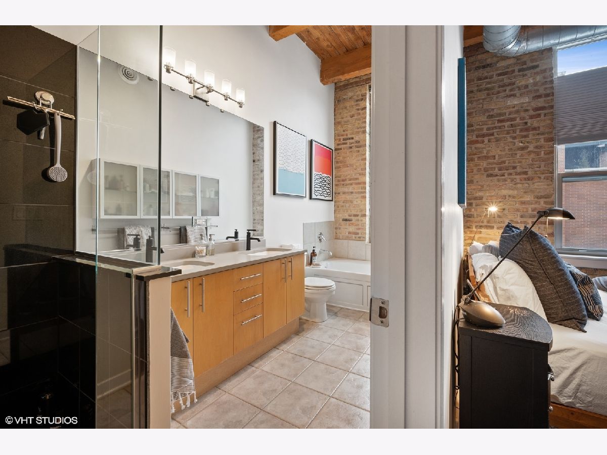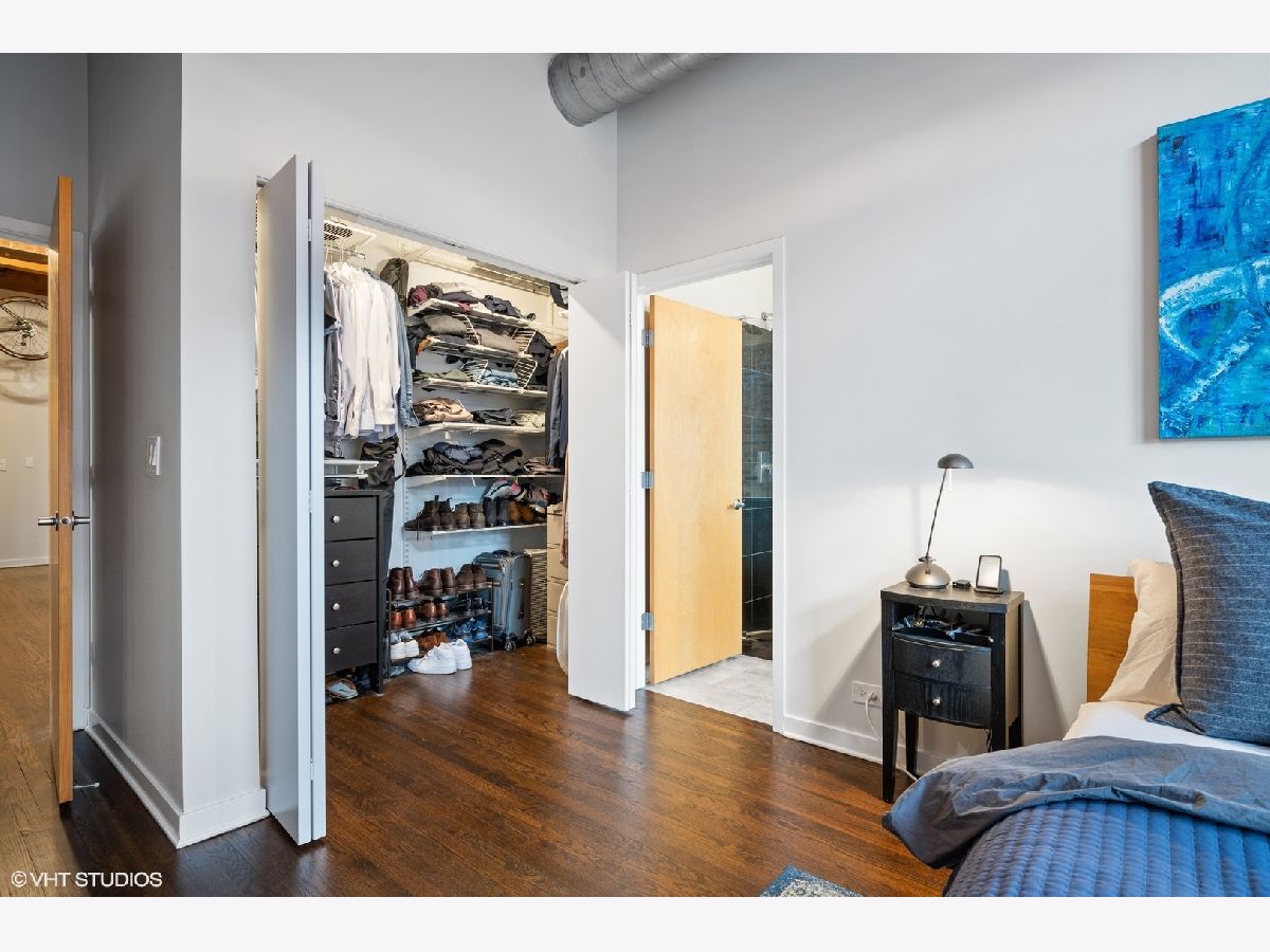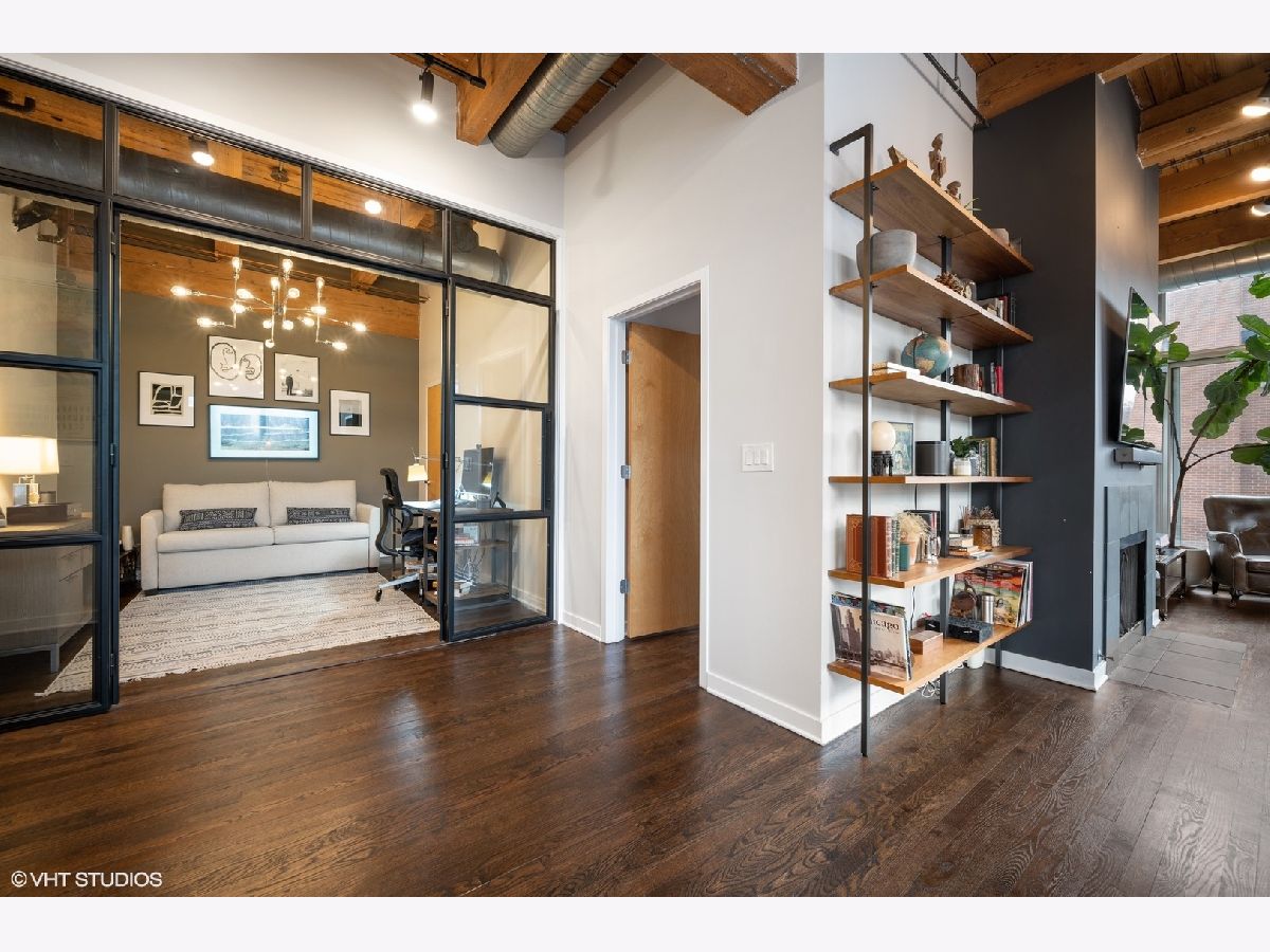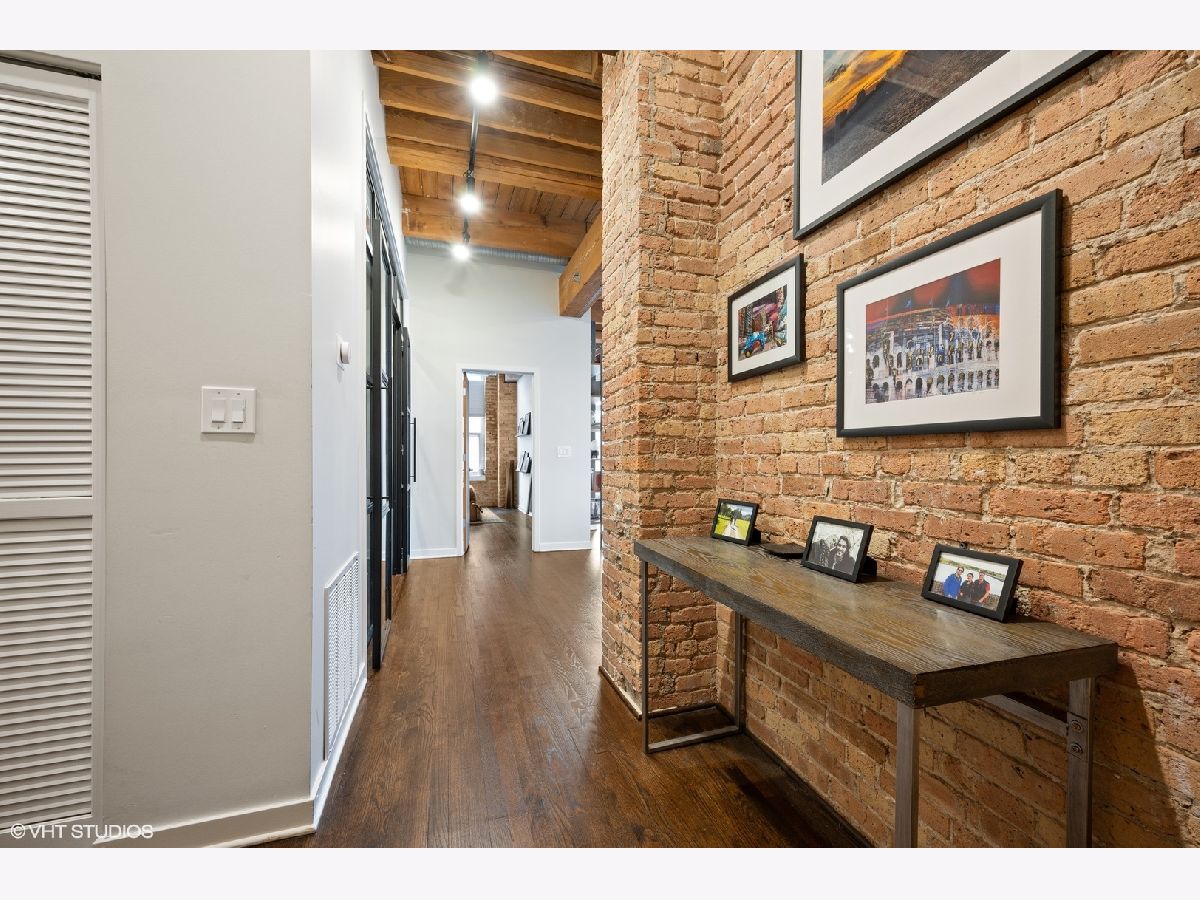 WELCOME to ACME LOFTS, a three- story boutique loft building on the edge of Wicker Park and Bucktown. This converted industrial building houses 25 unique lofts with exposed brick, 14 ft. ceilings and original timber beams. But, this unit is anything but your standard timber loft Unit #10 is a handsome NW corner unit on the second floor, with big beautiful windows offering treetop views of the neighborhood and gleaming hardwood floors throughout. . It has been thoughtfully updated, adding style and sophistication to an already cool space. This condo loves people and provides a beautiful space for gathering with friends and family. The inviting open floor plan includes a spacious Living/Dining room, with wood -burning fireplace/ gas starter and a private balcony for grilling.. The renovated kitchen boasts stainless steel appliances with new gas range (2021), wood cabinets with all new doors and hardware, painted a deep navy blue, beautiful white quartz counters, an expansive island wrapped in walnut and topped in quartz, a built-in prep bar area and new RH lighting. If you love to cook and entertain this is the space for you. The Primary bedroom is fully enclosed and includes walk-in closet and en-suite spa bath with new quartz counters and fixtures, marble shower and separate whirlpool style tub. The guest bathroom also has new quartz counter and fixtures. The second bedroom, currently used as an office, has been enclosed with a custom industrial style glass wall/doors....... a statement designer touch that allows light to pour into a previously uninspired room. Curtains or blinds can provide privacy for use as a bedroom. NEw RH Chandelier adds personality to this custom space. In-unit laundry, new HVAC w/humidifier (2017), storage locker and assigned parking spot in heated attached garage, complete this unique home. Did we mention that the location can't be beat? One block off of Milwaukee Ave., with all of its shops and restaurants; a dog park next door; entrance to the 606 nearby;2 blue line el stops equidistant from home; Aldi and Olivia's Market within walking distance. Investor and Pet friendly.