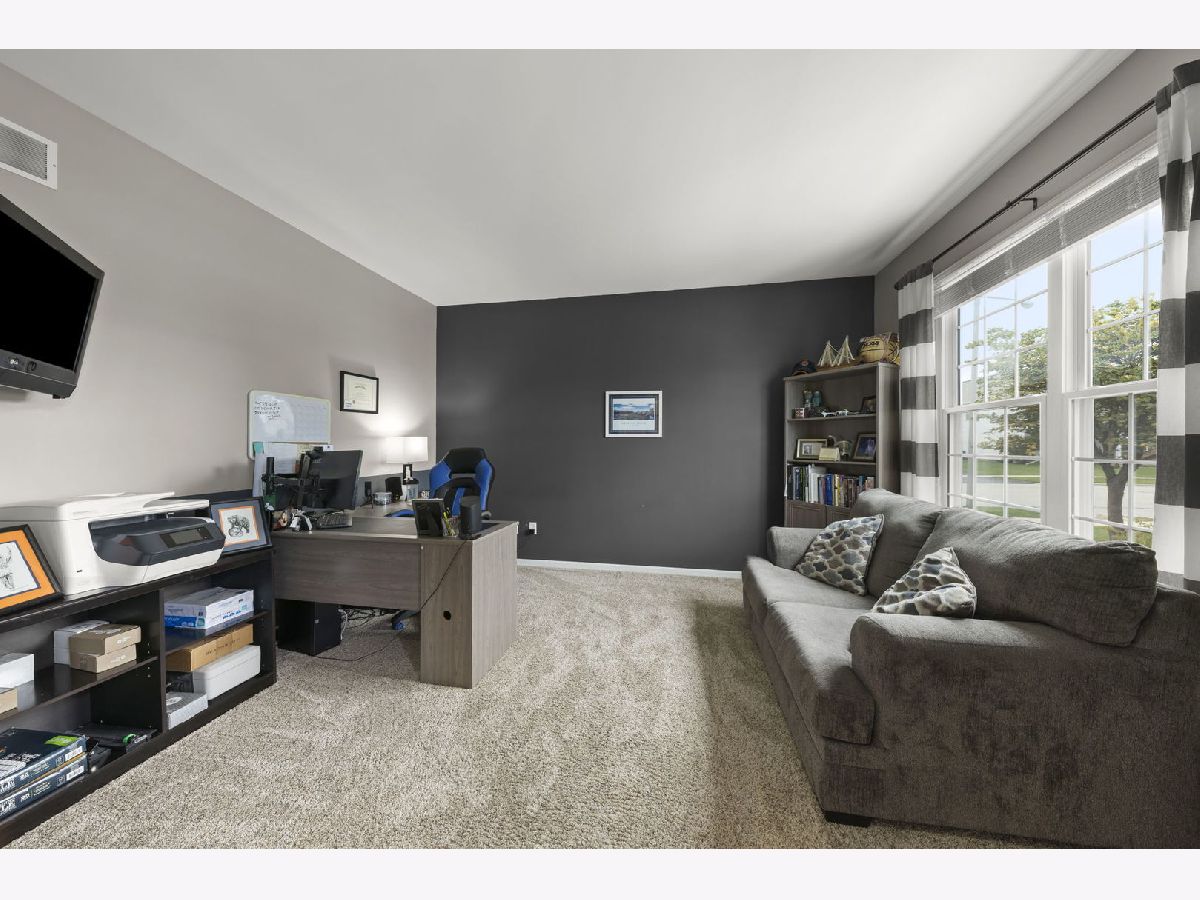 Stunning 4-Bedroom Home in North Grove Crossings, Welcome to this exquisite 2,500 square feet gem in the coveted North Grove Crossings neighborhood. This spacious four-bedroom, two-and-a-half-bath home offers a blend of modern comfort and convenience that's sure to impress. Bright and open living spaces with wide hallways that create a welcoming atmosphere. The updated kitchen boasts black stainless steel appliances and is a chef's dream. Unfinished basement with rough-in plumbing, ready for your custom touches. Dedicated office/den, ideal for remote work or as a cozy reading nook. Spacious bedrooms, three of which feature walk-in closets for added convenience. Corner lot with meticulously landscaped grounds, providing ample outdoor space and a Pond. Located in the highly desirable North Grove Crossings neighborhood. Close proximity to top-rated schools, parks, shopping, and dining. Easy access to major highways for a stress-free commute. With its perfect blend of space, functionality, and style, this property won't last long on the market. Don't miss your opportunity to make this house your forever home! Updates to Property: Roof and Gutters 2020, Windows 21 & 22, Fireplace, 21, Counter Tops and Back Splash 21, Fence 19, Carpet and Hardwood Flooring 18, Black Stainless Steel Appliances 18, Sump Pump, Hot Water Heater 18,