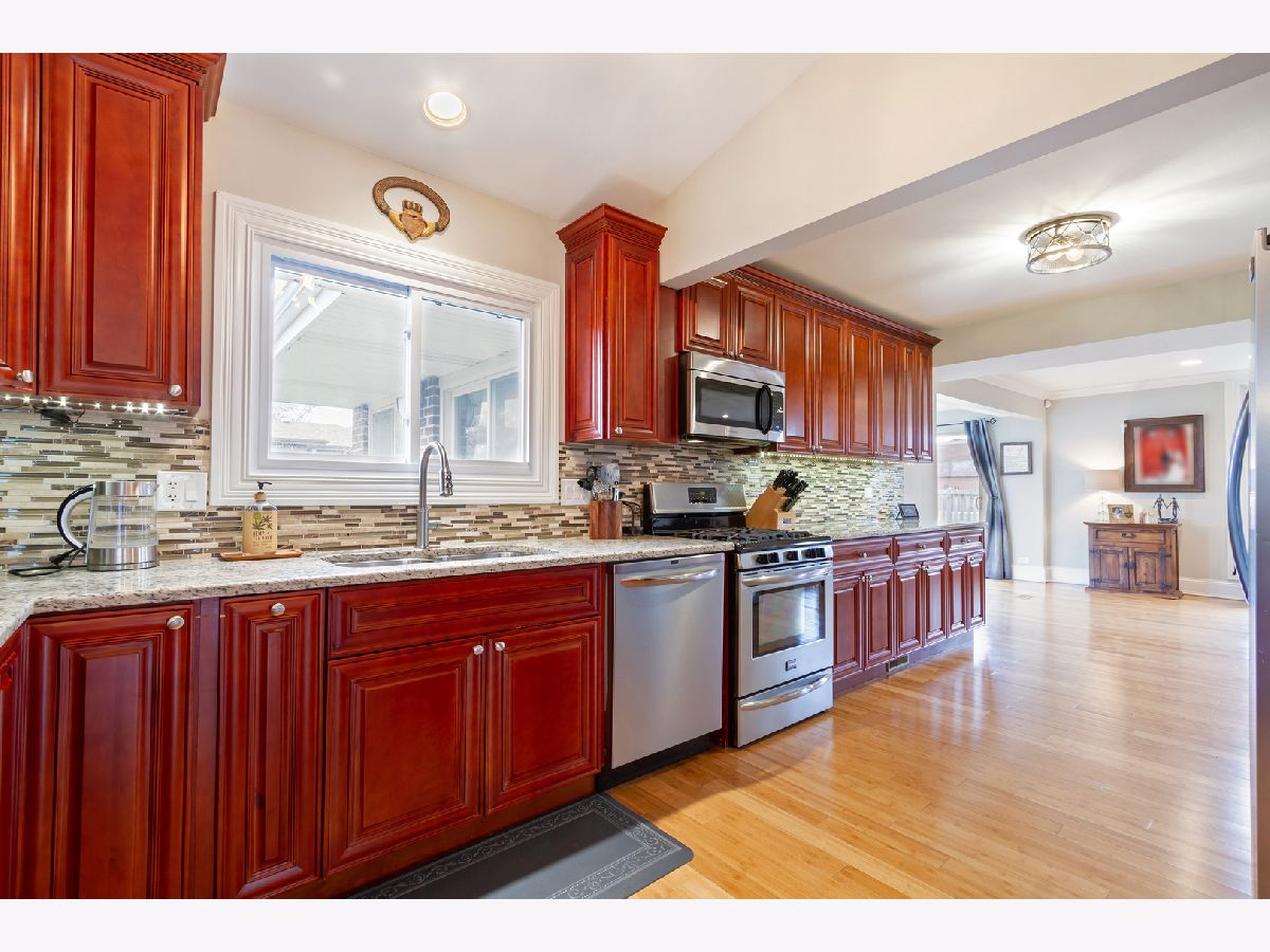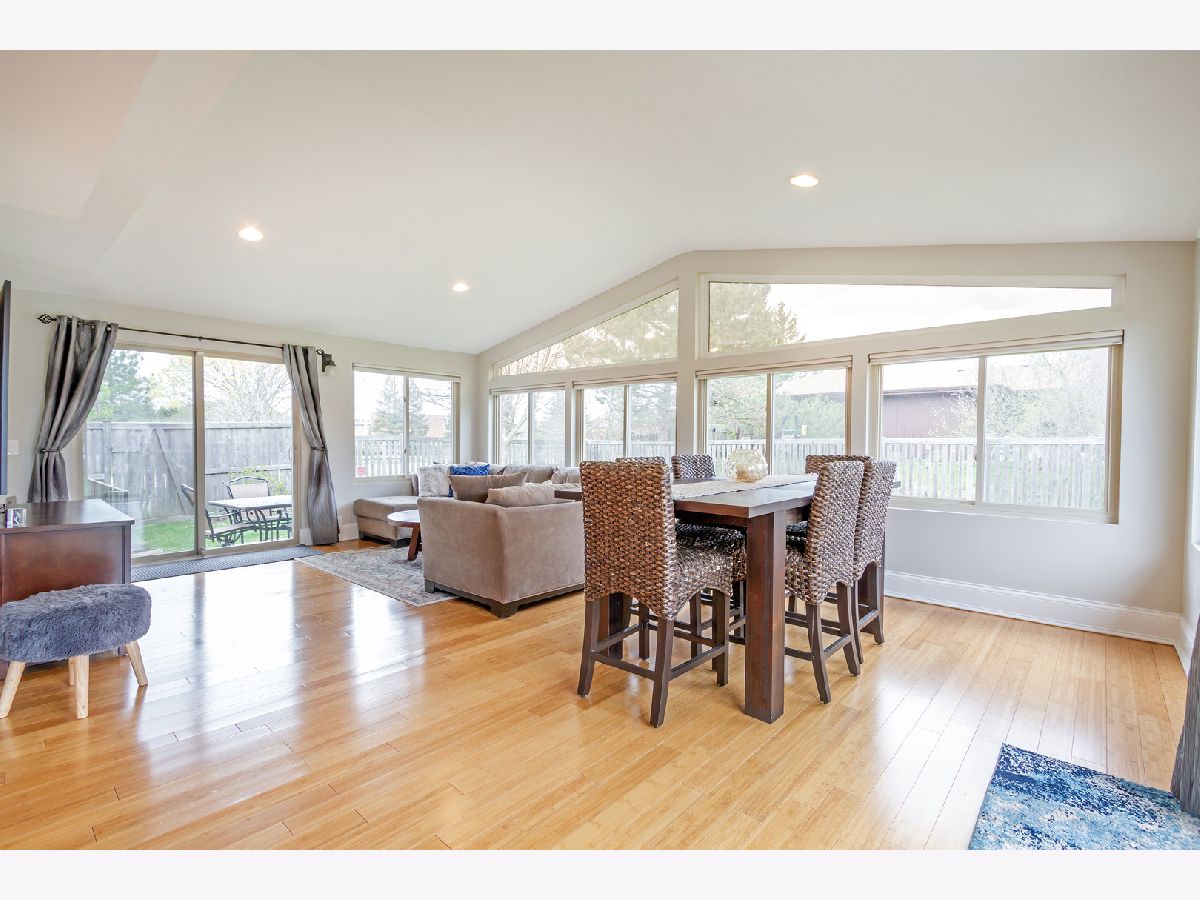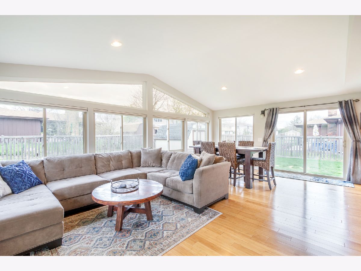 YOU'VE FOUND THE ONE ~ move right in to this stunning and updated home! Bright & open floor plan, gorgeous bamboo hardwood flooring, and upgraded trim throughout the main level. Sunny living room with vaulted ceiling, recessed lighting, and large picture window, flows into the formal dining room. Beautiful chef's kitchen with granite countertops, mosaic tile backsplash, and stainless steel appliances. Family room accented by crown molding and cozy whitewashed fireplace. Window-lined sun room is an addition to the home, and exits to the patio and backyard. Laundry room with utility sink and added cabinetry exits to the attached two-car garage. A powder room completes the main level. Spacious master suite includes a private master bath featuring a double sink vanity with granite countertop. 2nd, 3rd, and 4th bedrooms are all generously sized and share access to a full hall bath which also features a double sink vanity with granite top. Finished lower level with exterior access adds even more living space with an impressive wet bar, large rec room, and a full bath! Sprawling fully fenced-in backyard includes a concrete patio. Great location in a quiet neighborhood, yet also close to shopping, dining, and other amenities. Highly rated Schaumburg schools. This one won't last... WELCOME HOME!