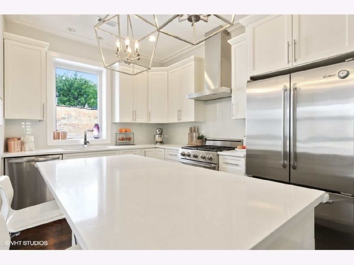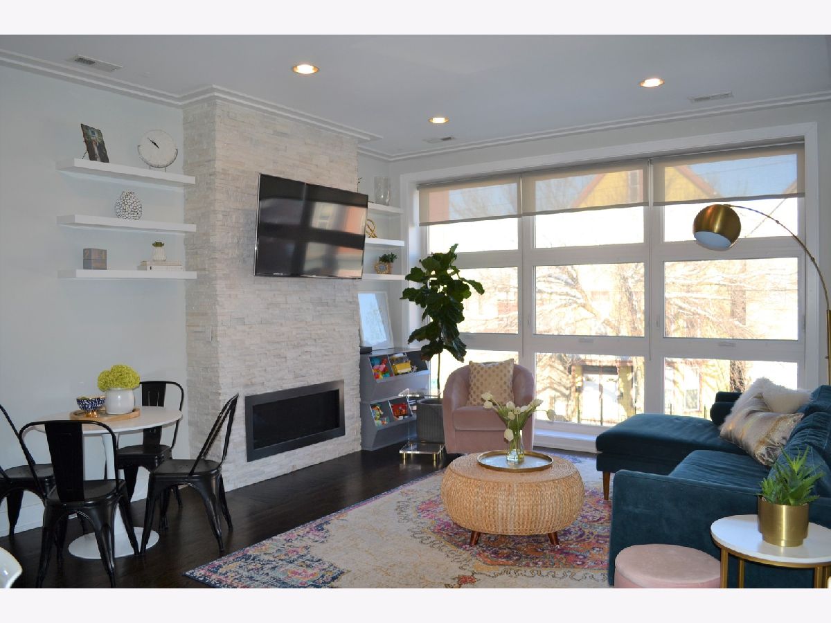View our virtual 3D tour! Gorgeous newer construction 3 bedroom unit in the heart of Roscoe Village. Bright and airy open floor plan features stone fireplace, floor to ceiling windows with custom window treatments and hardwood floors. Chic white kitchen with center island and Dacor appliances opens to living room/dining room combo. Primary bedroom features a luxe en-suite bathroom with double vanity and large walk-in shower with body sprays. Fantastic outdoor space with large deck off and common yard space. This unit also has additional storage and garage parking. Seconds from Starbucks, walk to restaurants, Fellger play lot and Mariano's.
