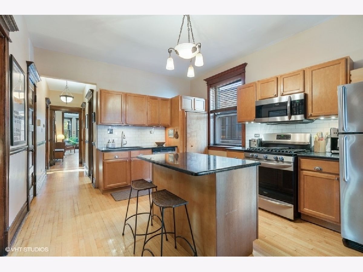 Vintage 1912 gem with sympathetic restoration and updates. Lovely, light-filled three bedroom home on a tree-lined street in UV. Classic Chicago second floor walk-up with vintage charm throughout the building. This unit boasts generous room sizes, classic updates, and the only unit in the building with a balcony accessed through the stunning floor to ceiling restored window off the third bedroom. Two full bathrooms - one with a beautiful claw foot tub and vintage built-in and one with an updated classic subway tile shower for the best of all worlds. Large kitchen with granite countertops, breakfast island, stainless steel appliances and subway tile back splash. In-unit washer/ dryer, additional basement storage, common yard with raised-bed garden planters and garage parking round out this unique property. Additional updates include new storms/screens with restored/reglazed vintage windows. Full list included in additional docs. Prime location within walking distance to Wicker Park, Division & Damen street shops and restaurants, and close to public transportation.