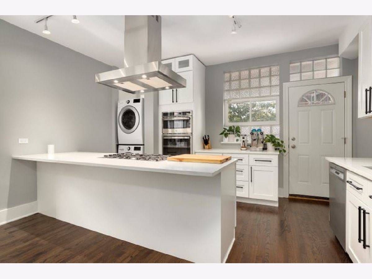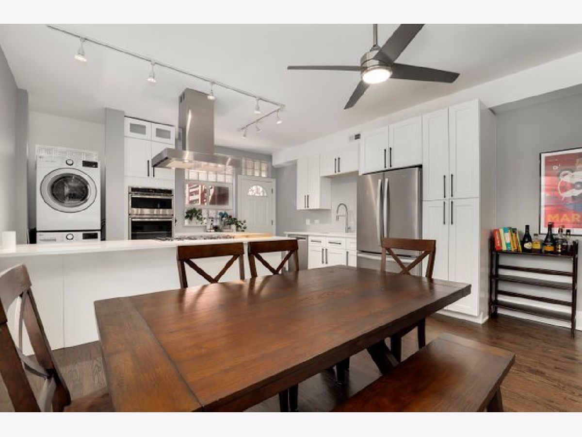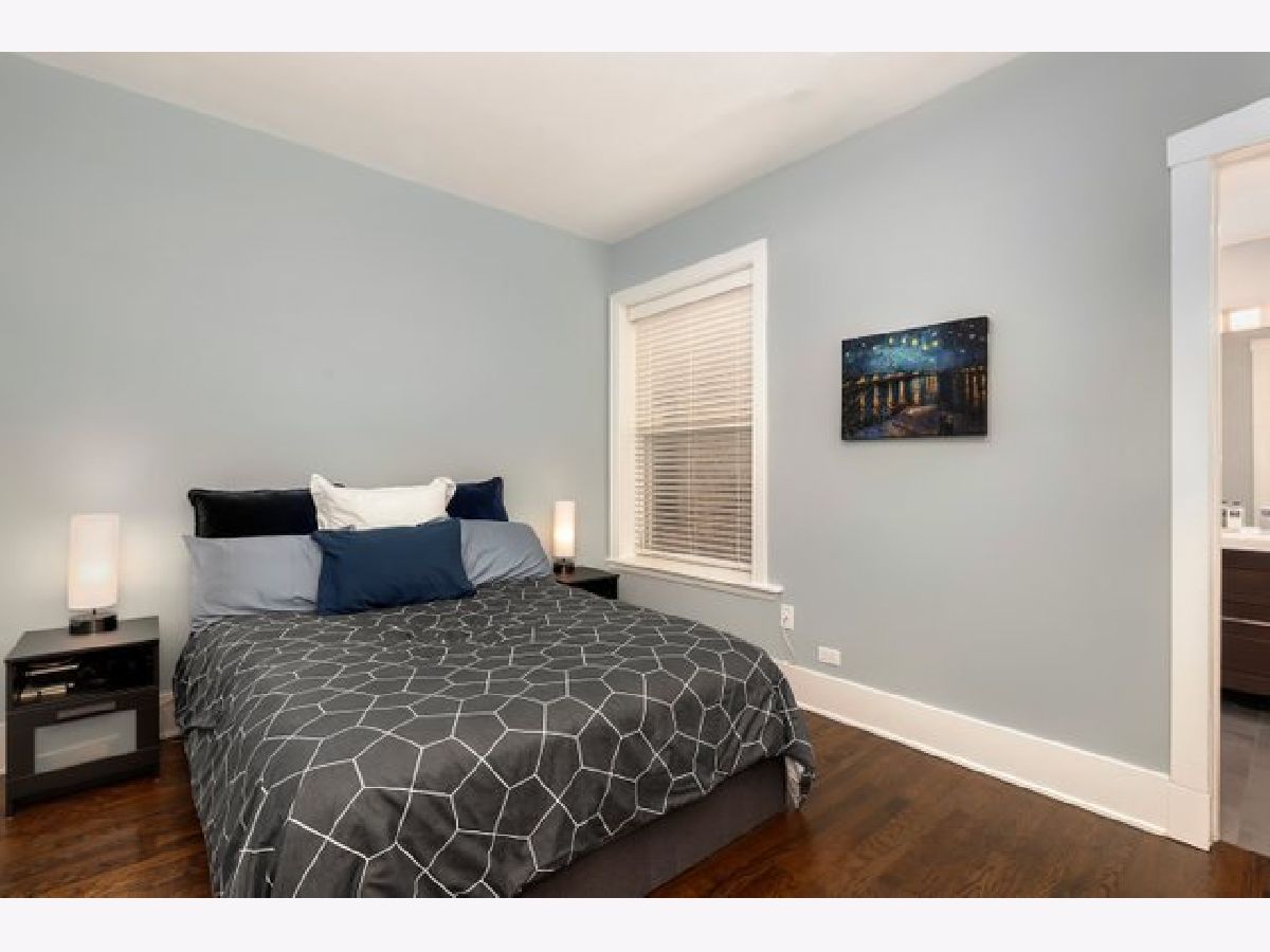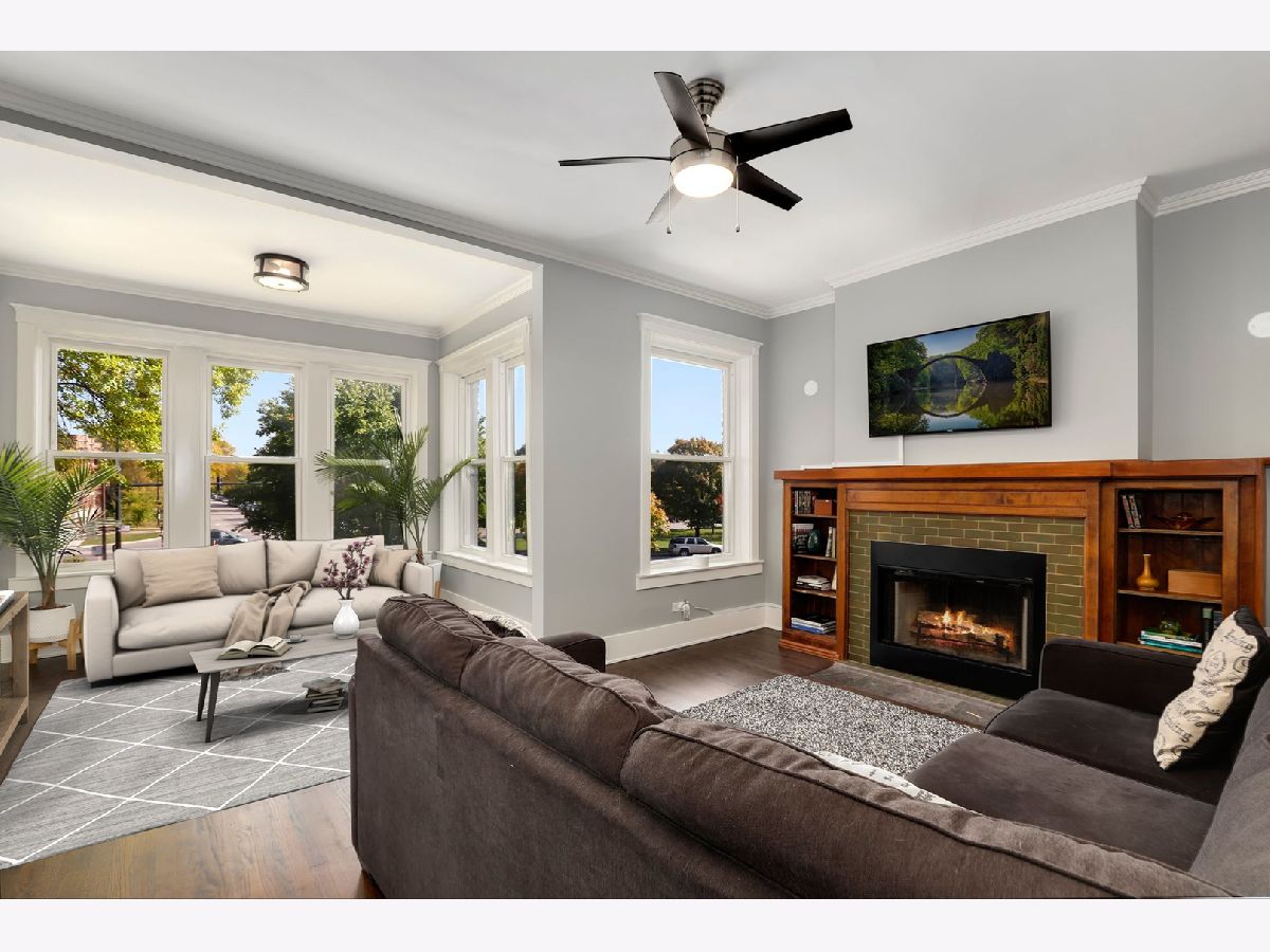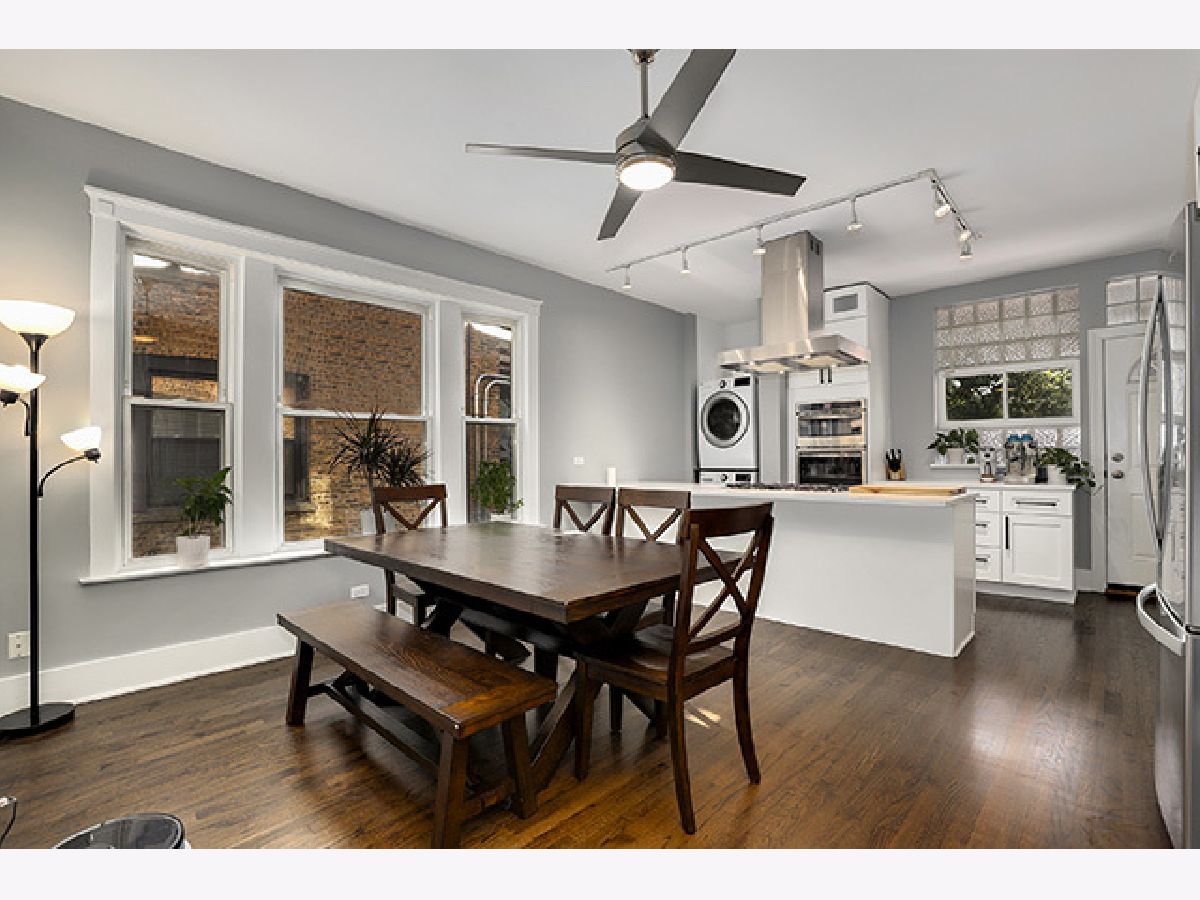 Stunning and completely renovated sun-filled home in the PERFECT Logan Square location! Situated in a quiet solid brick building directly across the street from Palmer Square, this gorgeous home offers tons of space, loads of charm and character, and has been renovated top to bottom with all of the amazing finishes you would find in new construction - truly the best of all worlds! Upon entering this spacious and inviting home, a generous foyer leads you to a living room featuring a wood-burning fireplace with brick surround and original woodwork and built-ins. A separate sunroom with south, east, and west-facing windows floods the entire space in natural light. A brand new designer kitchen boasts custom Italian solid wood cabinetry, quartz counters, high-end appliances including Bosch dishwasher and 5-burner built-in Bertazzoni range, and an oversized island with breakfast bar large enough to seat four. Open-concept kitchen overlooks a separate dining area that can accommodate a 6-8 person dining set. Your large private covered rear deck is perfect for relaxing, grilling out, or entertaining! Primary bedroom features a luxurious en-suite bath with Madeli vanity, Grohe fixtures, and contemporary floor-to-ceiling glass tile. Second bedroom easily accommodates queen furniture. Second brand new full bathroom with floating vanity and step-in shower. Rich dark-stained hardwood floors, high ceilings, elegant crown molding, and fresh paint with crisp white trim throughout! Easy street parking and additional 5x10 storage room included. Incredible location right across the street from the beautiful Palmer Square Park and Divvy station, with quick and easy access to the blue line, Fullerton bus, 90/94 expressway, and all of the amazing dining, nightlife, shopping and entertainment Logan Square has to offer!