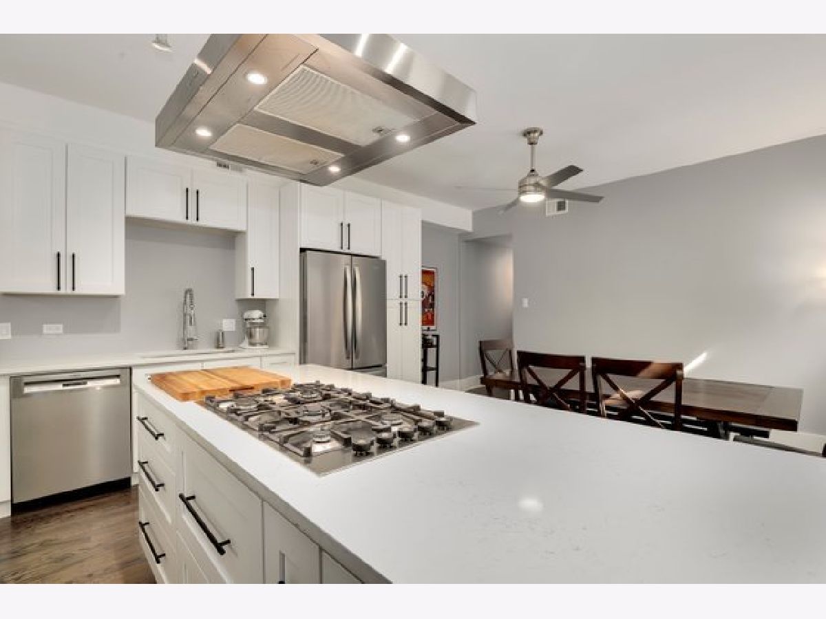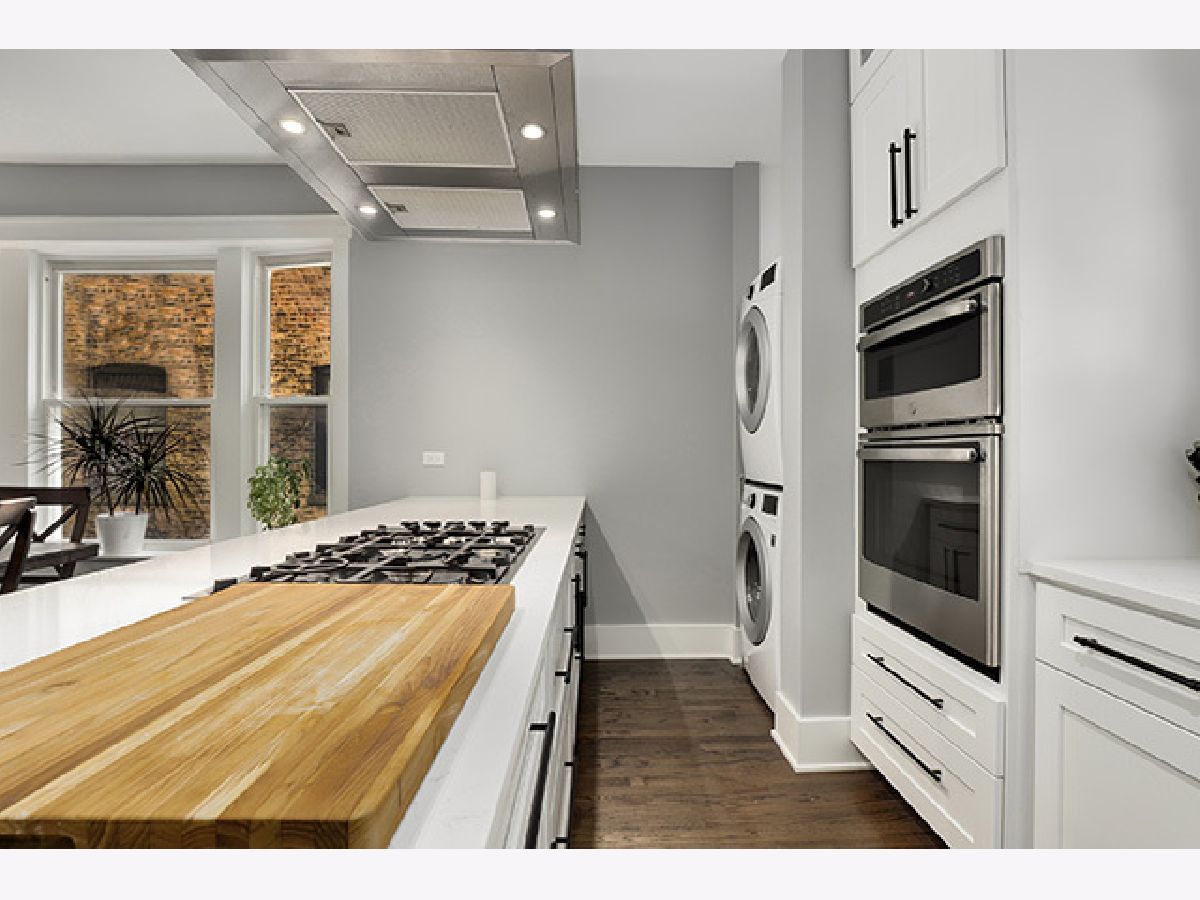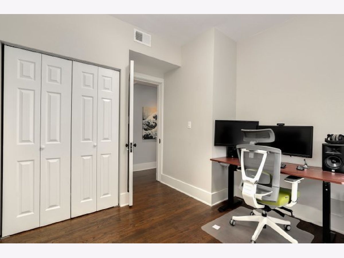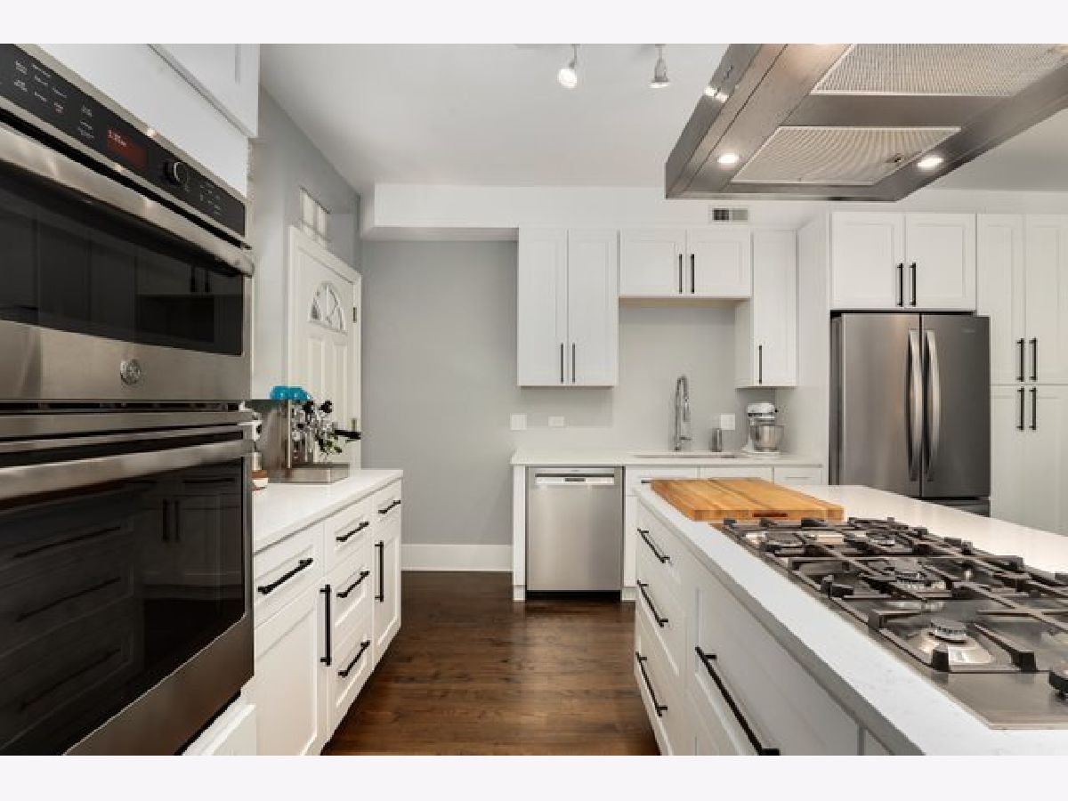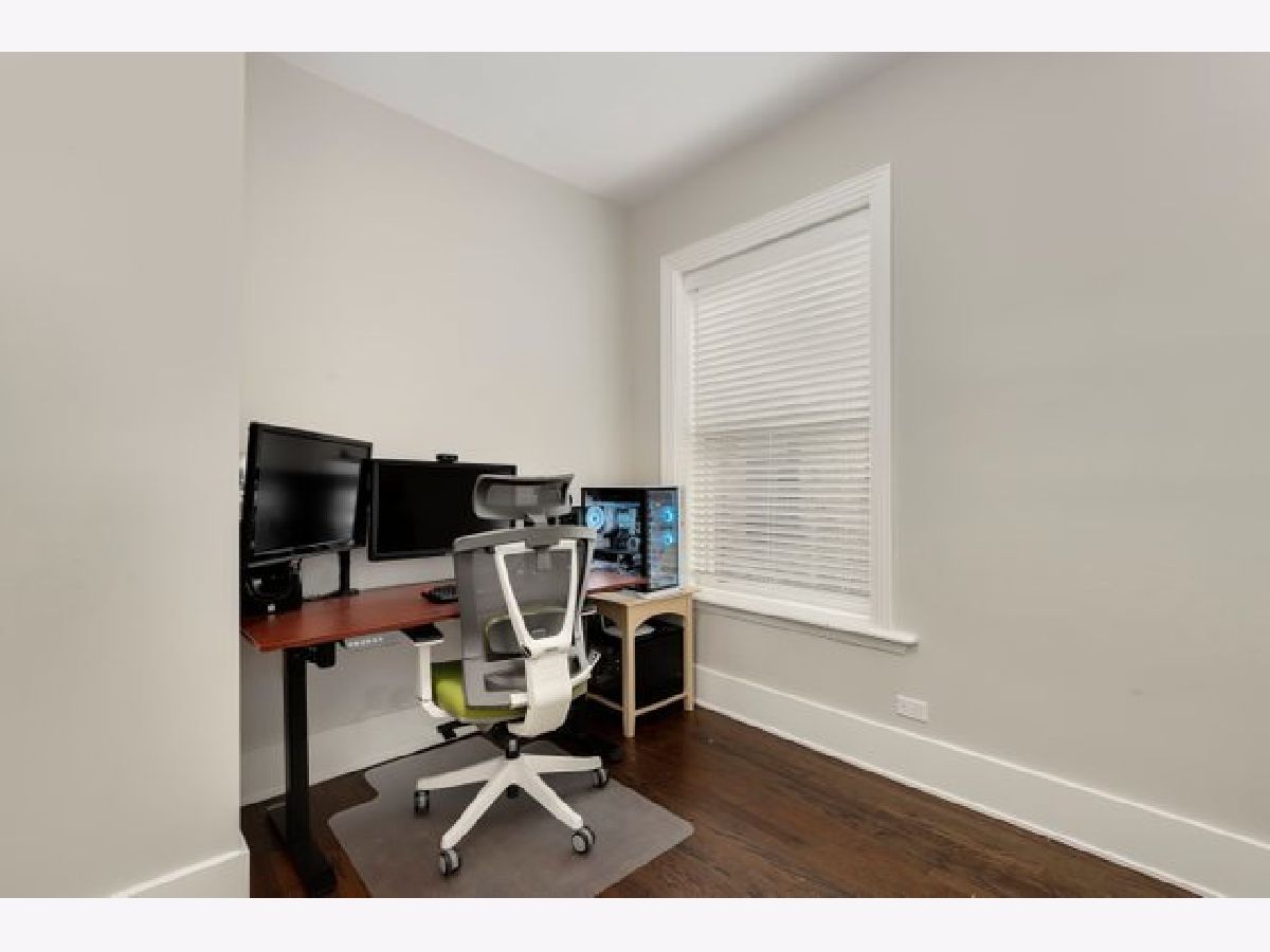 Stunning and completely renovated sun-filled home in the PERFECT Logan Square location! Situated in a quiet solid brick building directly across the street from Palmer Square, this gorgeous home offers tons of space, loads of charm and character, and has been renovated top to bottom with all of the amazing finishes you would find in new construction - truly the best of all worlds! Upon entering this spacious and inviting home, a generous foyer leads you to a living room featuring a wood-burning fireplace with brick surround and original woodwork and built-ins. A separate sunroom with south, east, and west-facing windows floods the entire space in natural light. A brand new designer kitchen boasts custom Italian solid wood cabinetry, quartz counters, high-end appliances including Bosch dishwasher and 5-burner built-in Bertazzoni range, and an oversized island with breakfast bar large enough to seat four. Open-concept kitchen overlooks a separate dining area that can accommodate a 6-8 person dining set. Your large private covered rear deck is perfect for relaxing, grilling out, or entertaining! Primary bedroom features a luxurious en-suite bath with Madeli vanity, Grohe fixtures, and contemporary floor-to-ceiling glass tile. Second bedroom easily accommodates queen furniture. Second brand new full bathroom with floating vanity and step-in shower. Rich dark-stained hardwood floors, high ceilings, elegant crown molding, and fresh paint with crisp white trim throughout! Easy street parking and additional 5x10 storage room included. Incredible location right across the street from the beautiful Palmer Square Park and Divvy station, with quick and easy access to the blue line, Fullerton bus, 90/94 expressway, and all of the amazing dining, nightlife, shopping and entertainment Logan Square has to offer!
