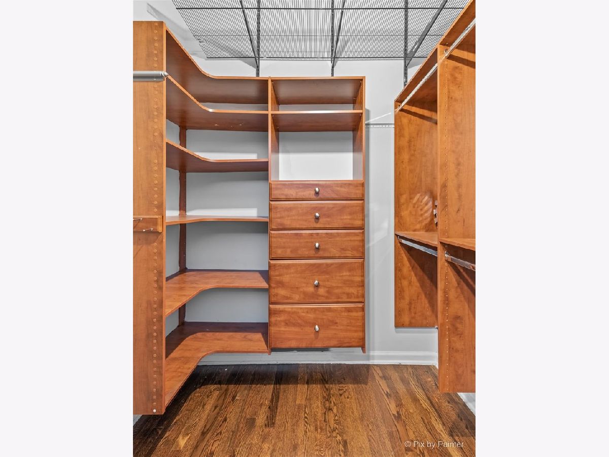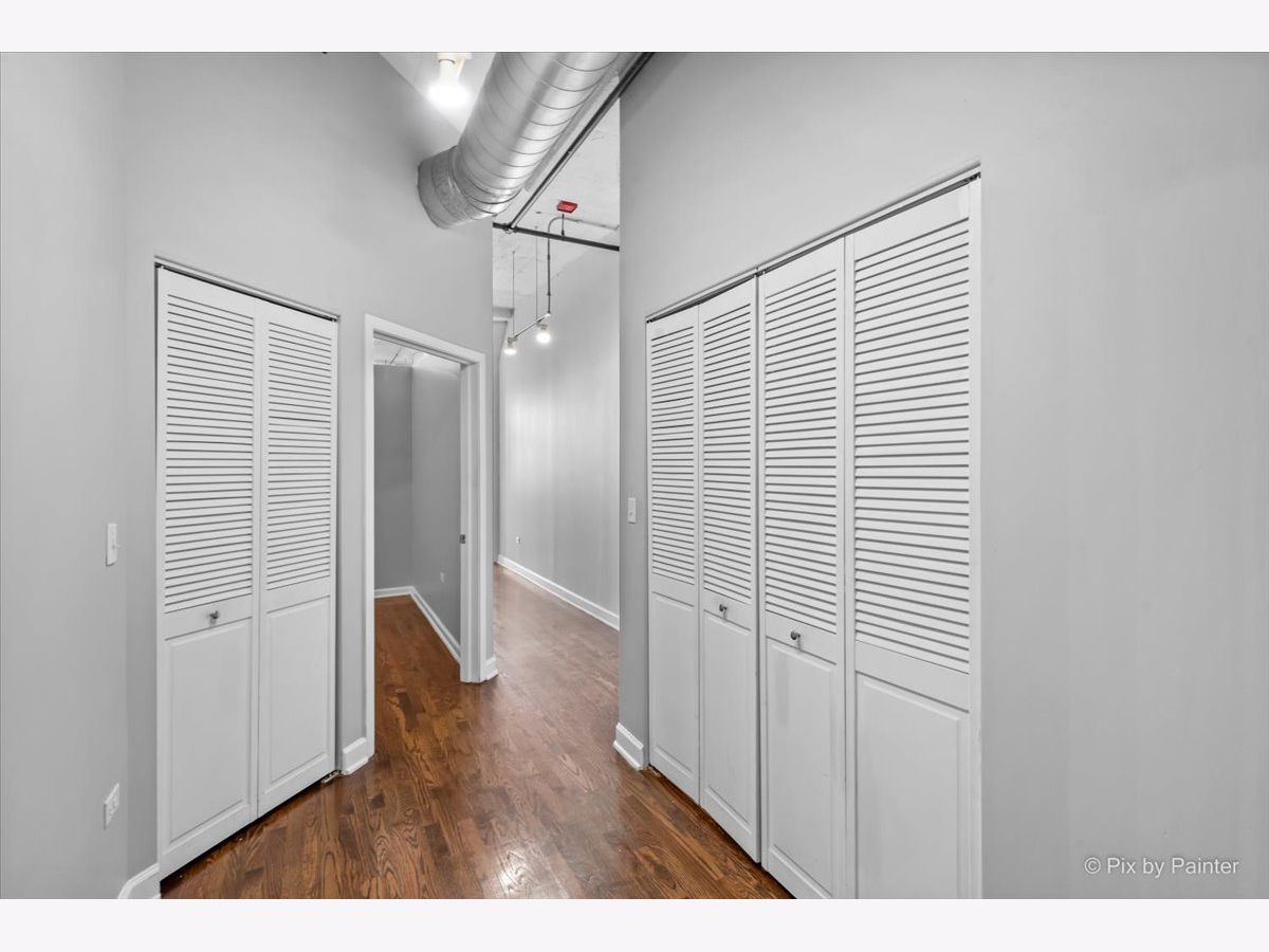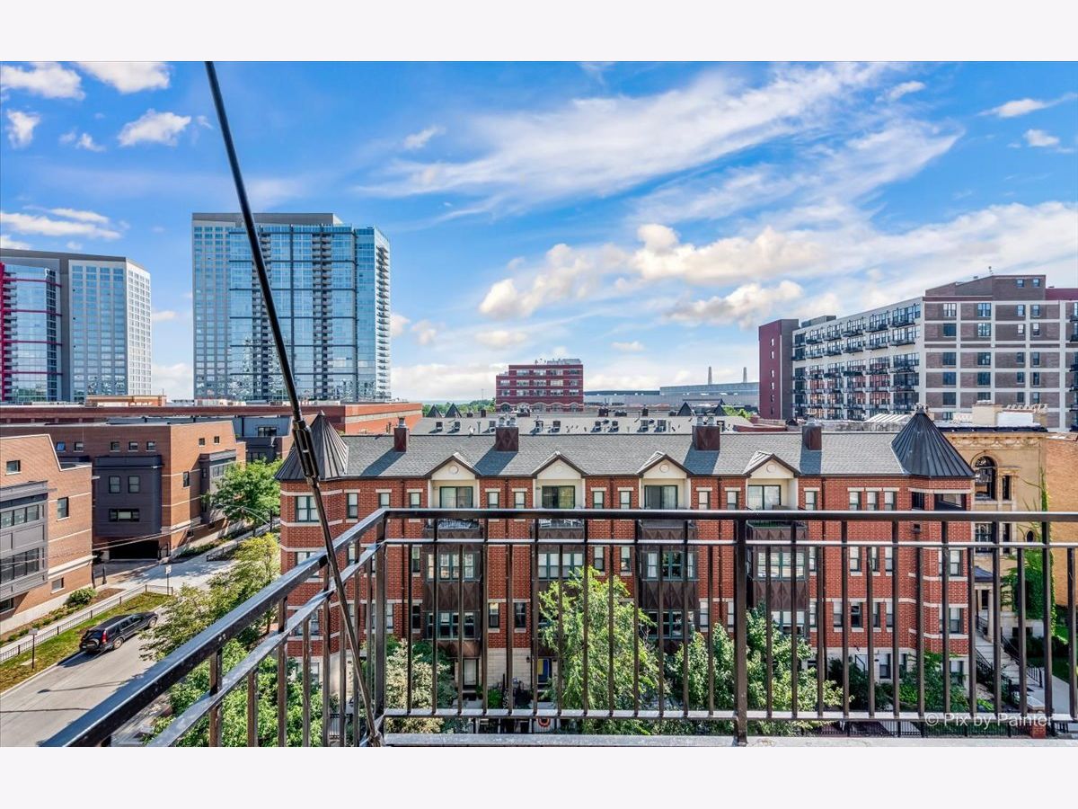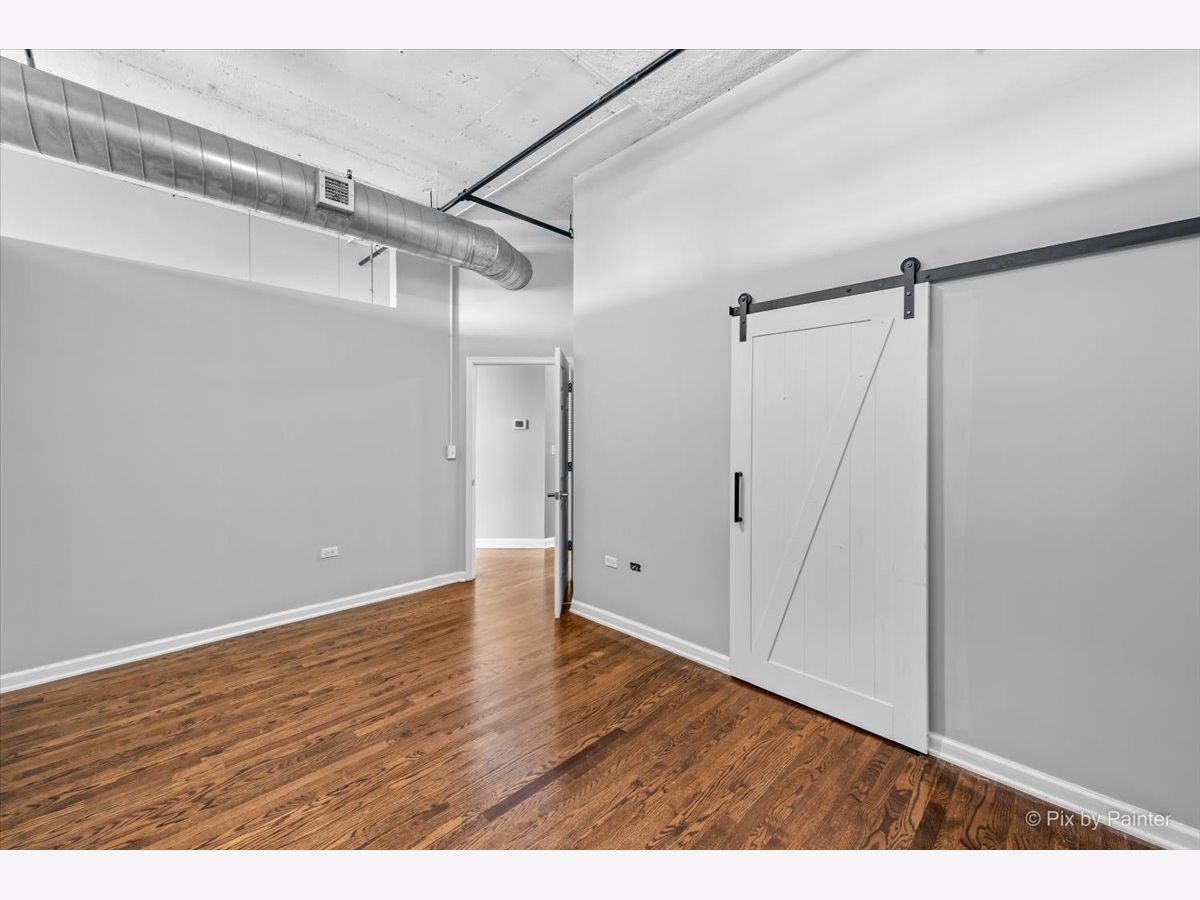 Sunny East-facing condo in popular Prarie Ave Lofts! This unit features a large balcony with a peek at Lake Michigan, 13ft ceilings, exposed brick, beautiful hardwood floors, granite countertops, custom backsplash, stainless steel appliances, and 42" cabinets. 10ft walk-in closet w/ barn door & built-ins. Updated bath with separate tub and shower, double sink vanity. High-efficiency in-unit washer/dryer. Storage locker on unit floor. Deeded garage parking an additional $25,000.