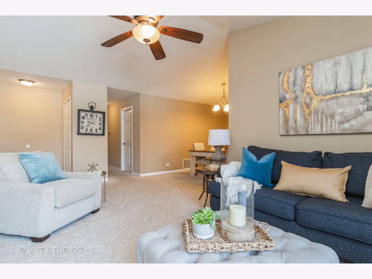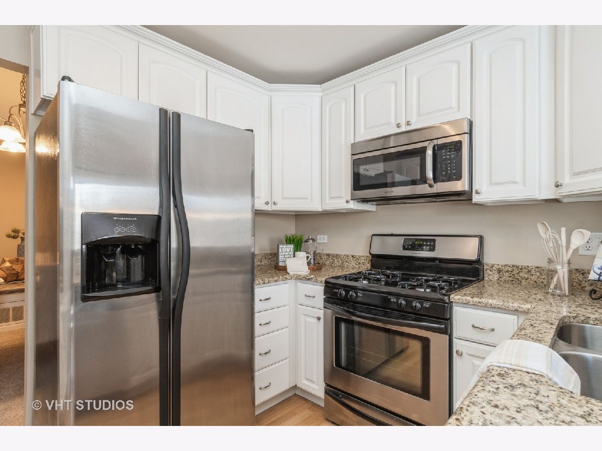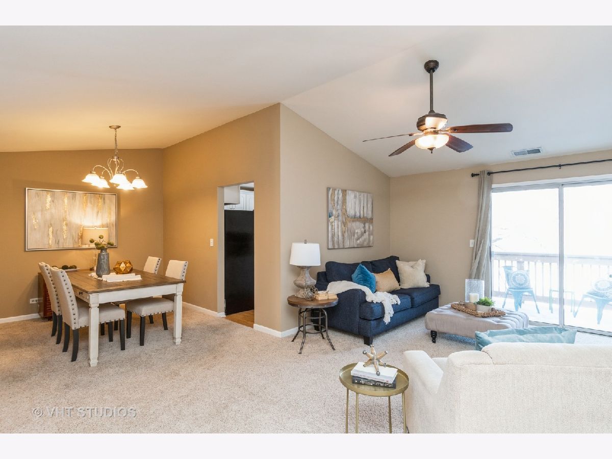 Grab this rare opportunity to enjoy a peaceful condo with a private view from its well-sized balcony. This second-level unit is super quiet thanks to no neighbors above you. Condition? Move-In-Ready of course! Some updated features include a white trim package with 6-panel white doors, neutral wall colors that work with any decorating color theme, light stained wood laminate flooring, unmarked & nicely padded neutral tone frieze carpet, satin nickel finish lighting, fixtures and hardware, stainless steel kitchen appliances (Frigidaire!), 42" white Kitchen cabinets tastefully graced with crown caps & constructed with solid dovetail corner joints on drawers, granite kitchen & MBTH counters. The vaulted & cathedral ceilings in the DR, LR & even the Kitchen eating area create that big-feel space. If you are hungry for storage you'll be satisfied here. The Kitchen has a wall full of custom installed storage cabinets with a granite butler bar that is NOT typical for this model. BOTH Bedrooms have REAL walk-in closets (one is 8'X5'). The big plus is the H-U-G-E attic above the Garage with convenient pull-down stair access. It's as good as having basement storage with zero risk of flooding! For a break from the indoors, step onto the balcony and enjoy a great view. Laundry here is a breeze with the in-unit private laundry room providing a full-size stack washer & dryer (Samsung!). Conveniently located on the southern border of the "central" Naperville area and attends highly ranked School District 203 (Kingsley Elem, Lincoln JHS & Naperville Central HS). Commuters, you're just minutes away from the Naperville Metra Train station or a quick hop onto I-355 that quickly connects to I-88. Best of all, no need to go to Chicago for an urban fix. You have your own vibrant downtown right here in downtown Naperville which is also only minutes away. This condo is PRICED TO SELL.