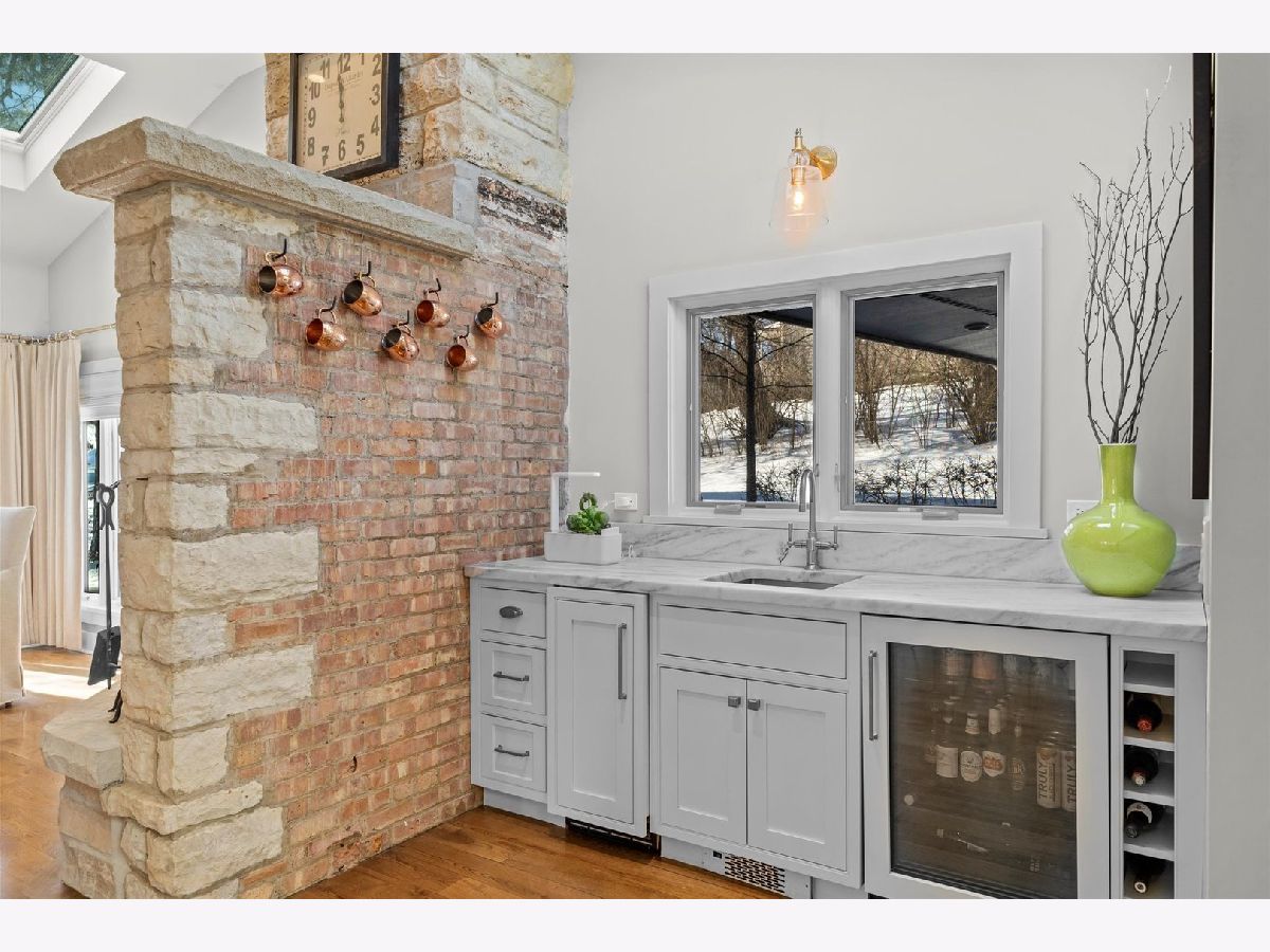 The private residence at 221 Hawley Lane combines the timeless history of the 1933 fishing cabin that it once was with a fully modern home that was completely reimagined and redesigned in 2016. No expense was spared to create a tranquil oasis located just steps to Geneva's thriving Historical District. Situated on over two acres and featuring a 5000+ sqft main house, a Sear's Kit guest/pool house, a screened gazebo, an expansive 45'x18' pool, multiple bluestone patios & outdoor firepits, and an Aquascape stream & pond, this home offers an unparalleled lifestyle experience. The main house includes four bedrooms all with en suites, hardwood floors throughout, and panoramic vistas of the peaceful surroundings. During the reconstruction, ceilings were raised, new Pella windows installed, and electrical & plumbing updated. Chef's dream kitchen flaunts quartzite counters, custom cabinetry from Shiloh and Pervo, Sub-Zero and Wolf professional appliances and a built-in Miele coffee system. An original stone fireplace with a reclaimed wood mantle flanks both the dining area and beverage center, and offers family and friends the perfect spot to gather together. The sprawling main living area features two home offices on either side of the open living and sun rooms. These rooms are highlighted by picture windows to enjoy million dollar views of the grounds and also provide access to multi-tiered outdoor patios. The second floor addition boasts two bedrooms; one the primary bedroom suite w/ French doors that open to the covered porch. The bath features heated floors, beautiful marble tile, double vanities, a glass-enclosed shower and custom closet. The walkout basement includes a 600 bottle wine room w/ temperature control, full bath and plentiful storage. Once outside, stone walkways guide you to the recently rejuvenated pool/guest house ~ ceilings were raised and brand new windows, kitchen, flooring, bath and HVAC systems were installed. Explore further to the pool and pool deck, showcasing glass fire bowls, fountains, a tanning ledge and the rebuilt pool w/ automatic pool cover. The charming wooden bridge connects the pool area to the WWII era screened gazebo and the restored outdoor fireplace. The 3+ car garage has been rebuilt to include heat within, ample work & storage space, an epoxy floor, a washtub, and a separate single garage door accessible from the yard. Above the garage, you'll discover a covered porch and an amazing large flex space with attached full bath for limitless options. Phenomenal attention to detail inside and out; a local artisan created an iron railing in the foyer to mimic the original bridge design near the pool, the split rail fence surrounding the home compliments the original log cabin design, and the grounds themselves have been professionally landscaped to compliment our Midwest seasons. An unimaginable escape that needs to be seen to be believed in all of its grandeur and splendor!