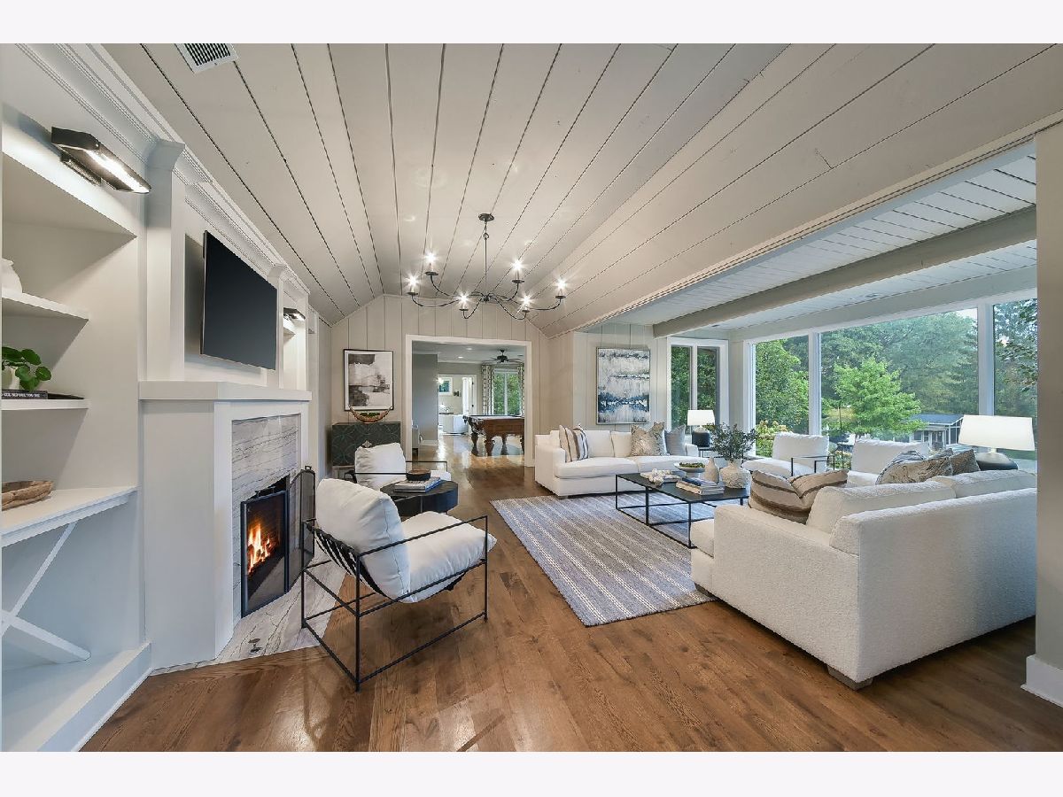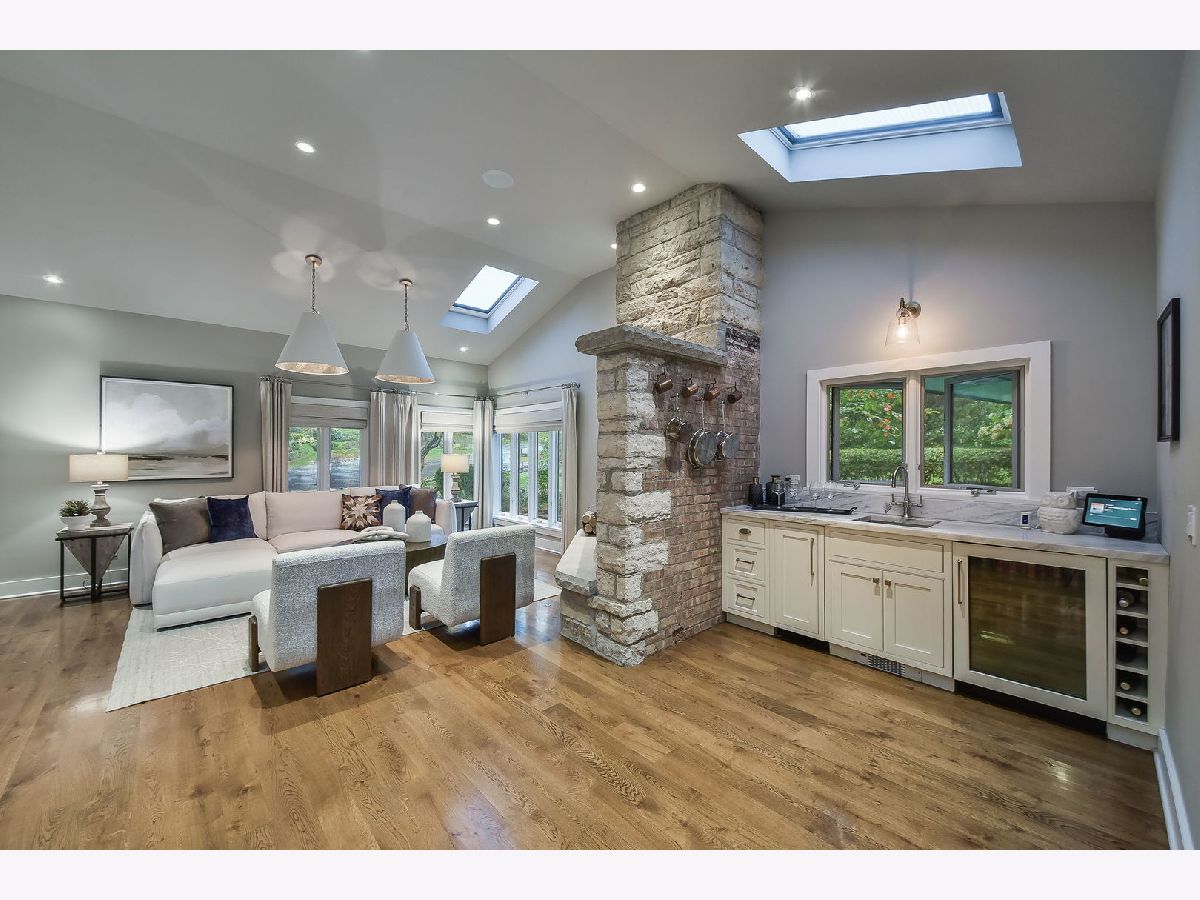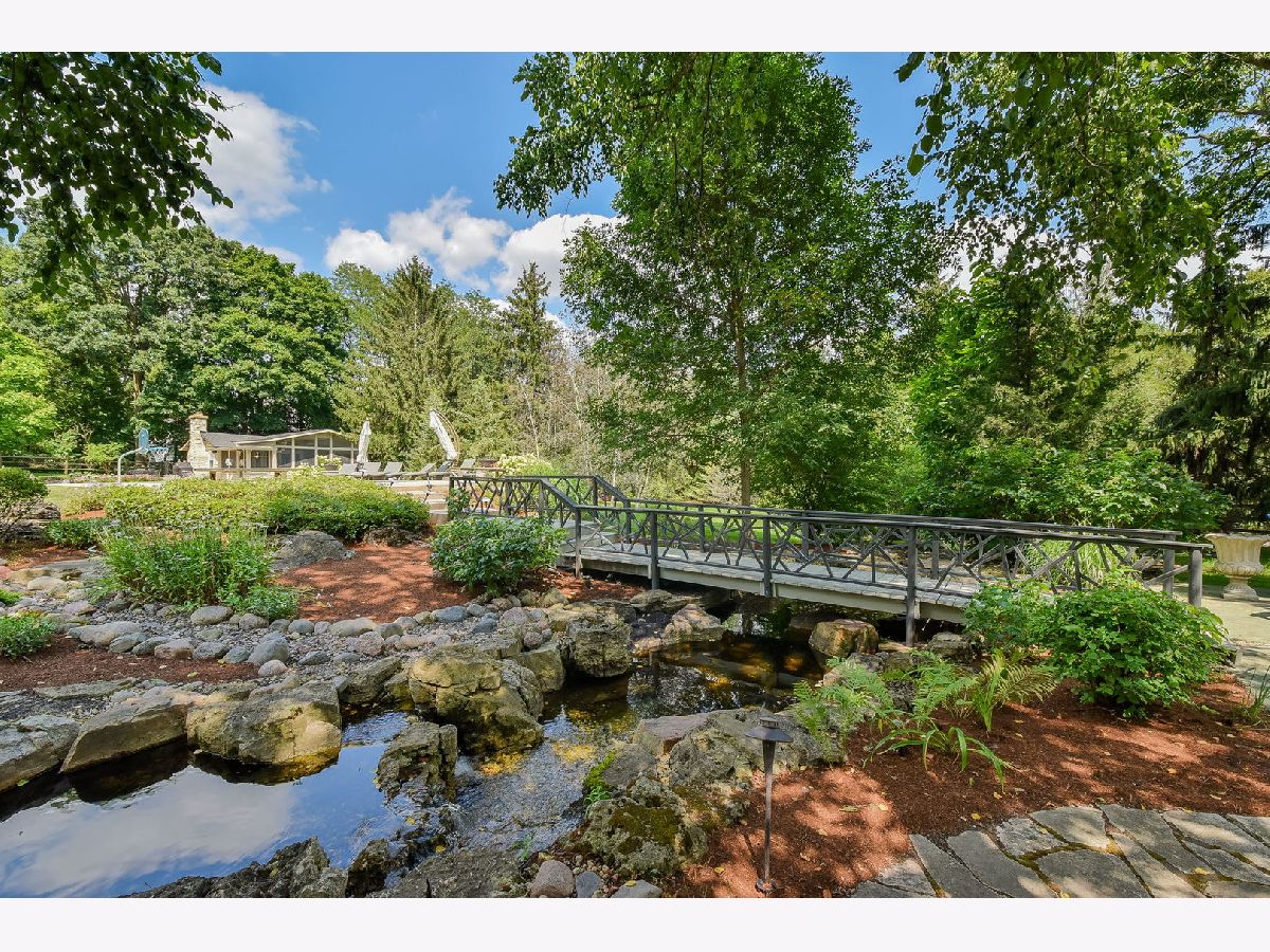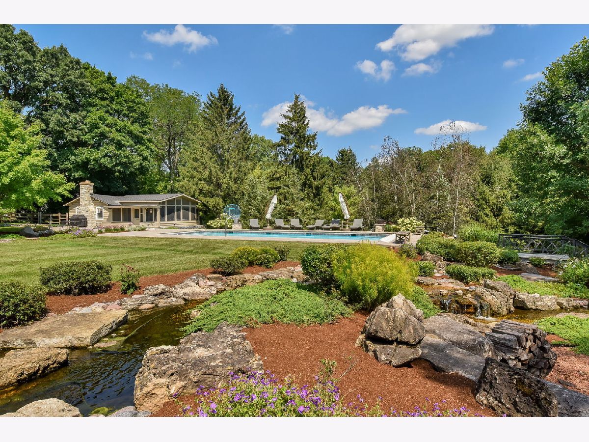 Step into a world where timeless history and modern luxury blend seamlessly at 221 Hawley Lane. Originally a 1933 fishing cabin, this private residence was transformed into a fully modern home in 2016, sparing no expense to create a serene oasis just minutes from Geneva's vibrant amazing downtown area with fantastic restaurants, boutiques, festivals and so much charm!!! Nestled on over two acres, the property boasts a 5000+ square foot main house, a charming Sear's Kit guest/pool house, a screened gazebo, an expansive 45'x18' pool, multiple bluestone patios, outdoor firepits, and an enchanting Aquascape stream and pond. The main house features four spacious bedrooms, each with its own en suite bathroom, and is adorned with hardwood floors throughout. Panoramic views of the tranquil surroundings are visible from every angle. During the 2016 renovation, ceilings were raised, new Pella windows were installed, and the electrical and plumbing systems were updated. The chef's dream kitchen showcases quartzite countertops, custom Shiloh and Pervo cabinetry, Sub-Zero and Wolf professional appliances, and a built-in Miele coffee system. The original stone fireplace, complemented by a reclaimed wood mantle, connects the dining area and beverage center, creating the perfect gathering spot for family and friends. The expansive main living area includes an open floorplan with a living room, and two other rooms that could be additional sitting areas or potential dual offices all enhanced by picture windows offering stunning, tranquil views and access to multi-tiered outdoor patios. The second-floor addition houses two bedrooms, including the primary suite, which opens to a covered porch through French doors. The primary bath is a sanctuary with heated floors, marble tile, double vanities, a glass-enclosed shower, and a custom closet. The walkout basement is a wine enthusiast's dream, featuring a 600-bottle temperature-controlled wine room, a full bath, and ample storage space. Outside, stone walkways lead to the rejuvenated pool/guest house, now equipped with raised ceilings, new windows, a kitchen, flooring, bath, and HVAC systems. The pool area is a haven of relaxation, with glass fire bowls, fountains, a tanning ledge, and an automatic pool cover. A charming wooden bridge connects the pool area to a screened gazebo and a restored outdoor fireplace. The 3+ car garage has been rebuilt to include heating, ample work and storage space, an epoxy floor, a washtub, and a separate single garage door accessible from the yard. Above the garage, you'll find a covered porch and a large flex space with an attached full bath, perfect for a nanny or in-law suite! Every detail, inside and out, has been meticulously crafted. The gorgeous iron railing in the foyer mimics the original bridge design near the pool, while a split rail fence complements the original log cabin design. The professionally landscaped grounds celebrate the beauty of the Midwest seasons. This extraordinary escape must be seen to be fully appreciated in all its grandeur and splendor!