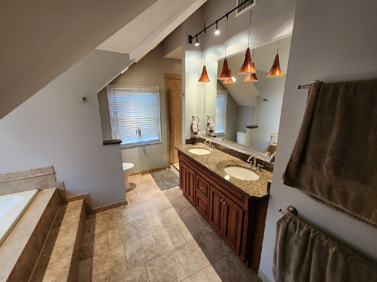 Welcome to this unique property featuring spacious land size and open floor plan with 4 bedrooms, 4 baths in this move-in ready home. Upstairs features large master suite with vaulted ceiling. Includes walk in closet, private bathroom with jacuzzi tub, and heated floors. 2 more bedrooms and additional full bathroom on this floor. Main floor has family room, large eat in kitchen and separate dining room along with 4th bedroom and full bathroom. Fully finished basement with large laundry room, family room, full bathroom, and office space with cedar closet. The yard is beautifully landscaped complete with an all-organic garden. Enjoy this part of Darien and the local parks, amazing school district. Close to Indian Prairie library, lots of shopping and restaurants nearby. The 2.5 car garage is gas heated, and setup with additional work room. Key features: Organic garden French drain backyard system Large brick patio and sitting wall Large laundry room Basement office Basement family room 2.5 car garage with extended room, GarageTec flooring Landscape lighting and porch lighting Stainless steel appliances Smart irrigation system Hardwood floors Patio globe lights Tree house Newer washer and dryer New AC unit Whole house Trimlight system Exterior hot tub Dual zone HVAC Whole house fan Wired smart smoke/CO alarm