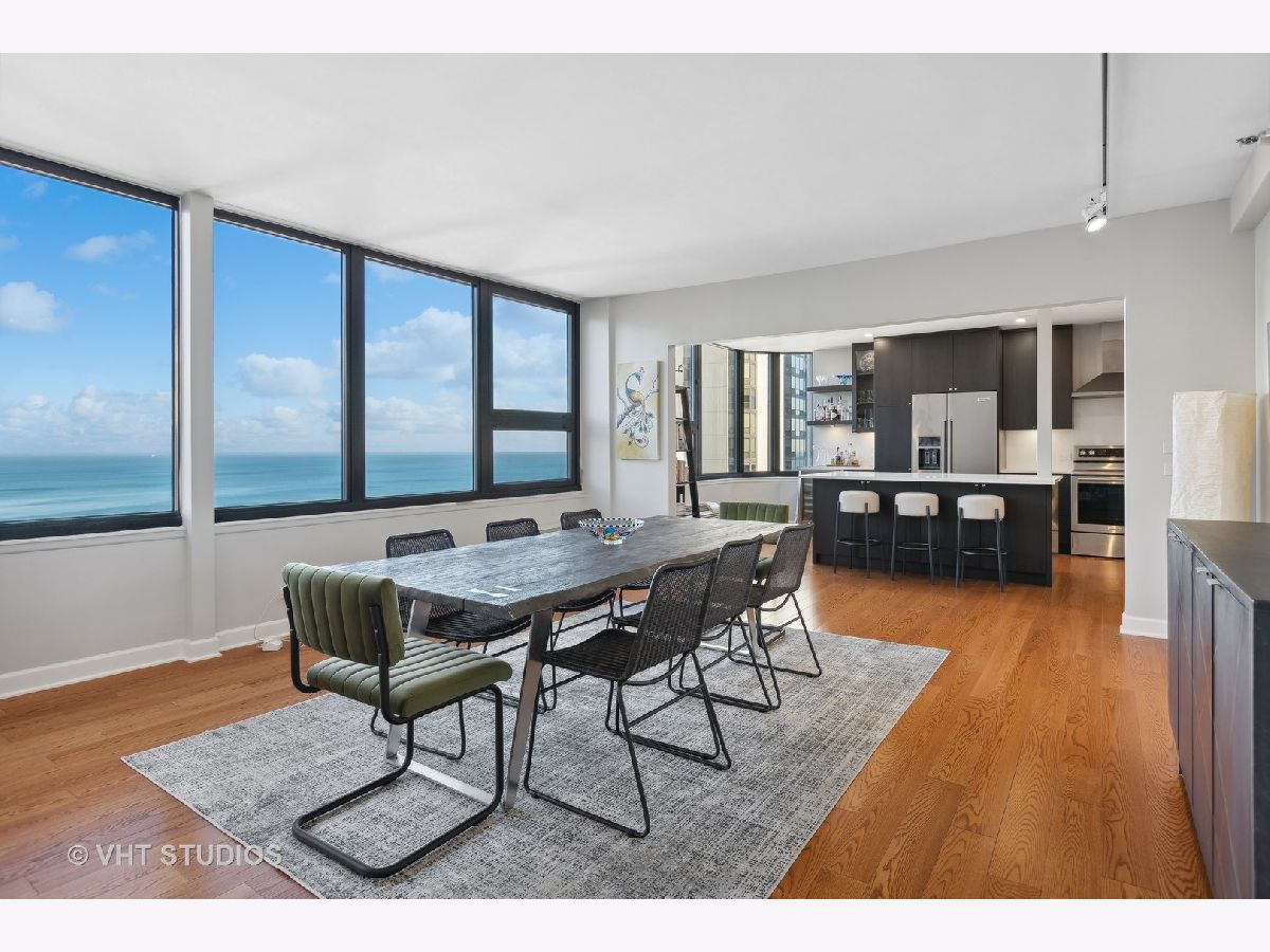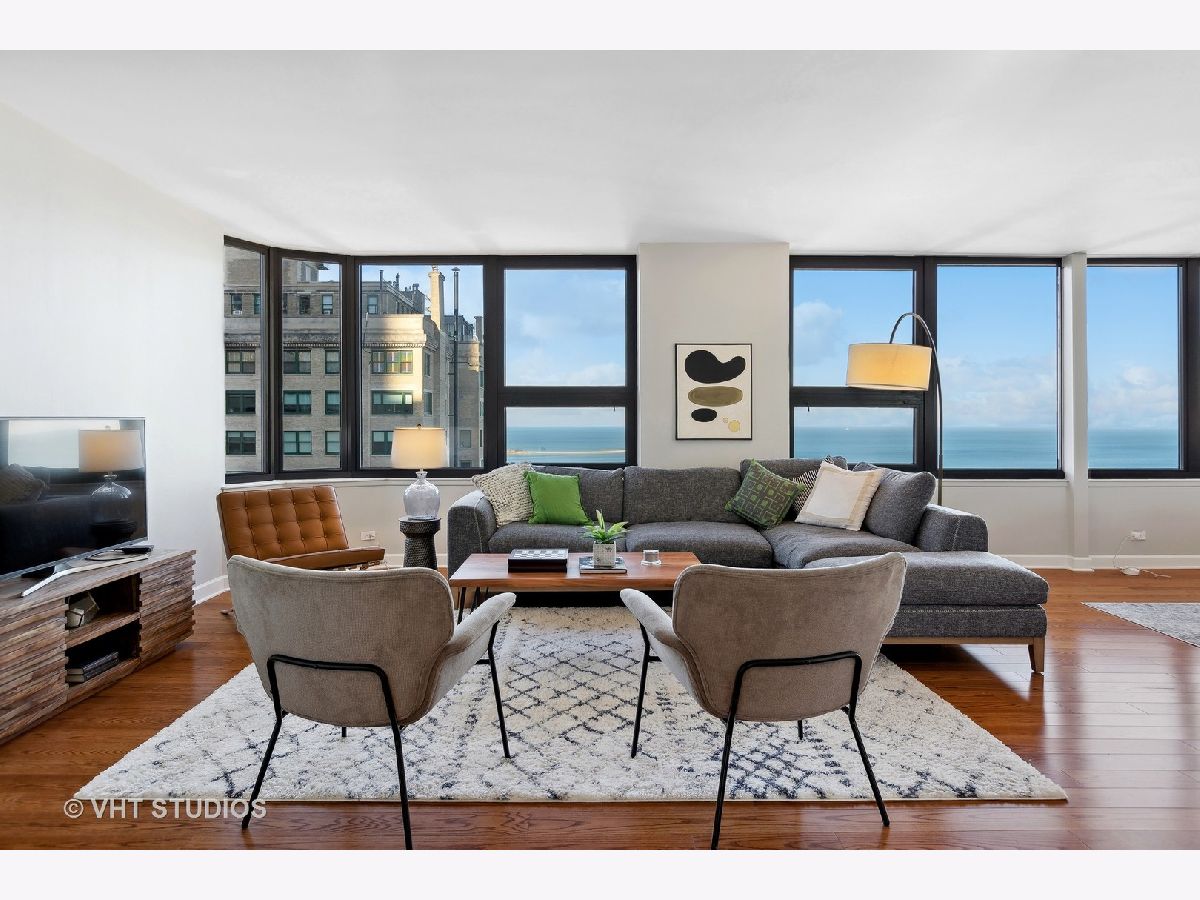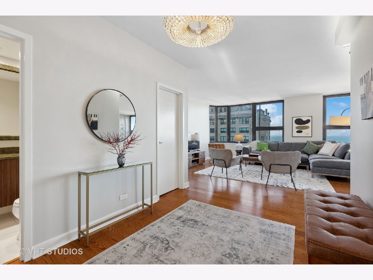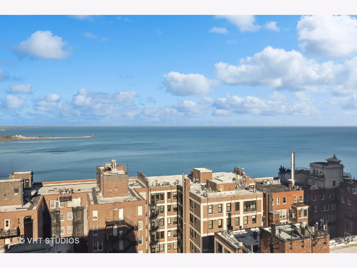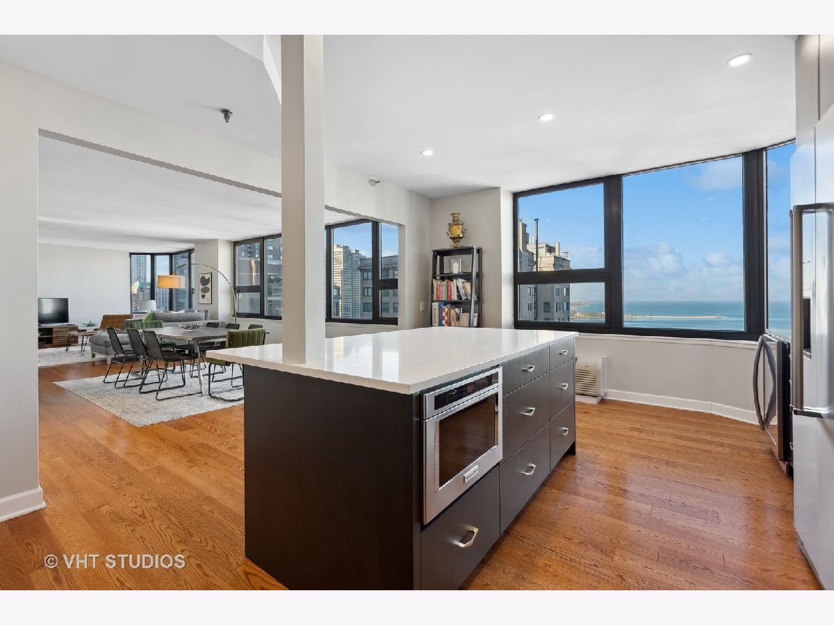 SEE MATTERPORT 3D TOUR and VIDEO TOUR of this amazing Gold Coast luxury home with lake views. With great light, this unit has the entire on the entire 19th floor exclusively with spectacular lake and city views. The elevator takes you to the private foyer, with two entrances into the main hall or into the kitchen area. The private elevator hall has newly renovated slate floors and custom wood slatted walls. The bright, large open concept living and dining room area have a wall of windows and is open to the brand new kitchen. The kitchen was renovated down to the studs and features walnut custom cabinetry, quartz countertops and back-splash, large island and all new appliances. The oversized primary bedroom suite and the additional two bedrooms have great closets, built ins and new motorized roller shades. Both the primary and second bath have radiant heated floors. Laundry room with ample storage and new full size Samsung washer and dryer. The entire unit has brand new pre-finished, engineered floating wood floors. 1 parking space in building's attached garage is available for sale at $35,000. This professionally managed boutique building recently invested $1.4+ million into improvements to the facade, elevators, garage, and other infrastructure. Amenities include a key fob access system, roof deck with grills, and storage. Pet-friendly, one large or two smaller dogs are welcome. Amazing location on beautiful Walton street just steps from the lake, Oak Street beach, the MCA, amazing restaurants, and Michigan Avenue! Truly walk to all location! This is a true gem!