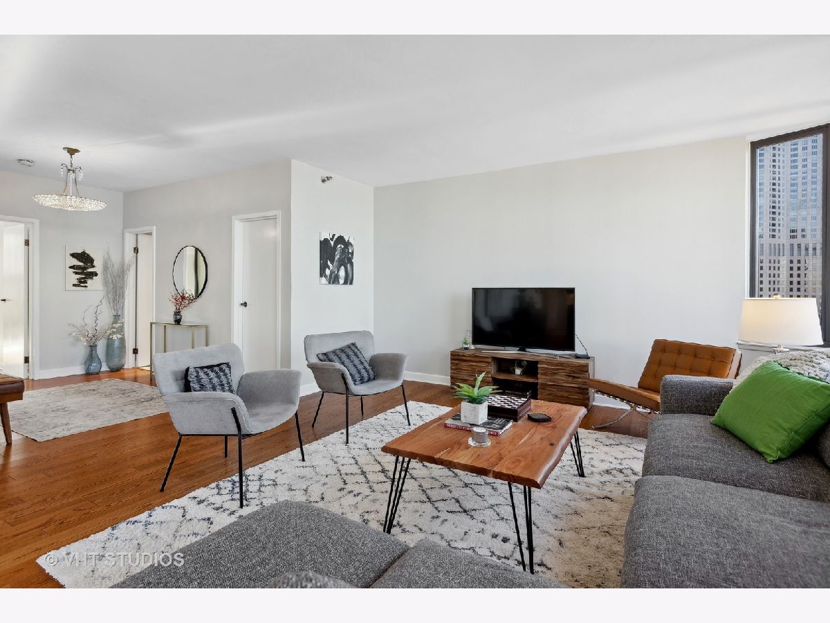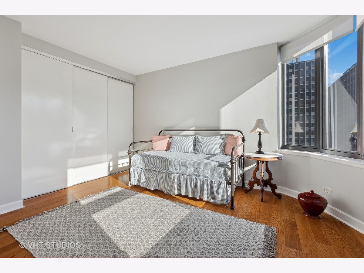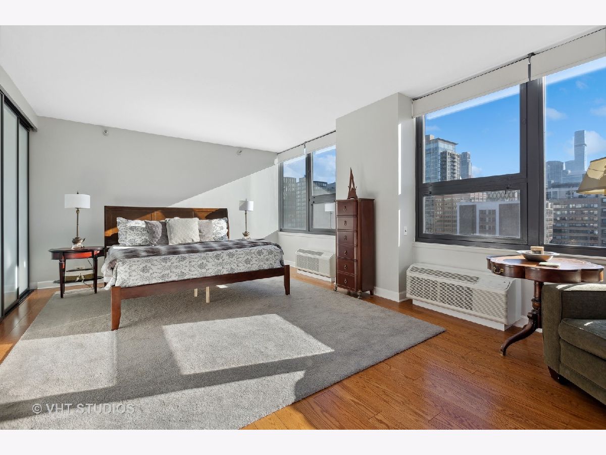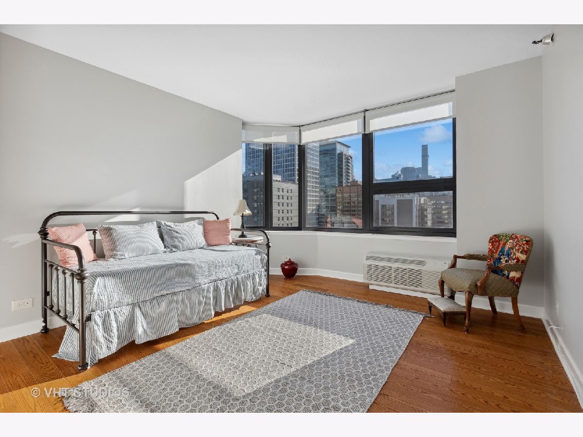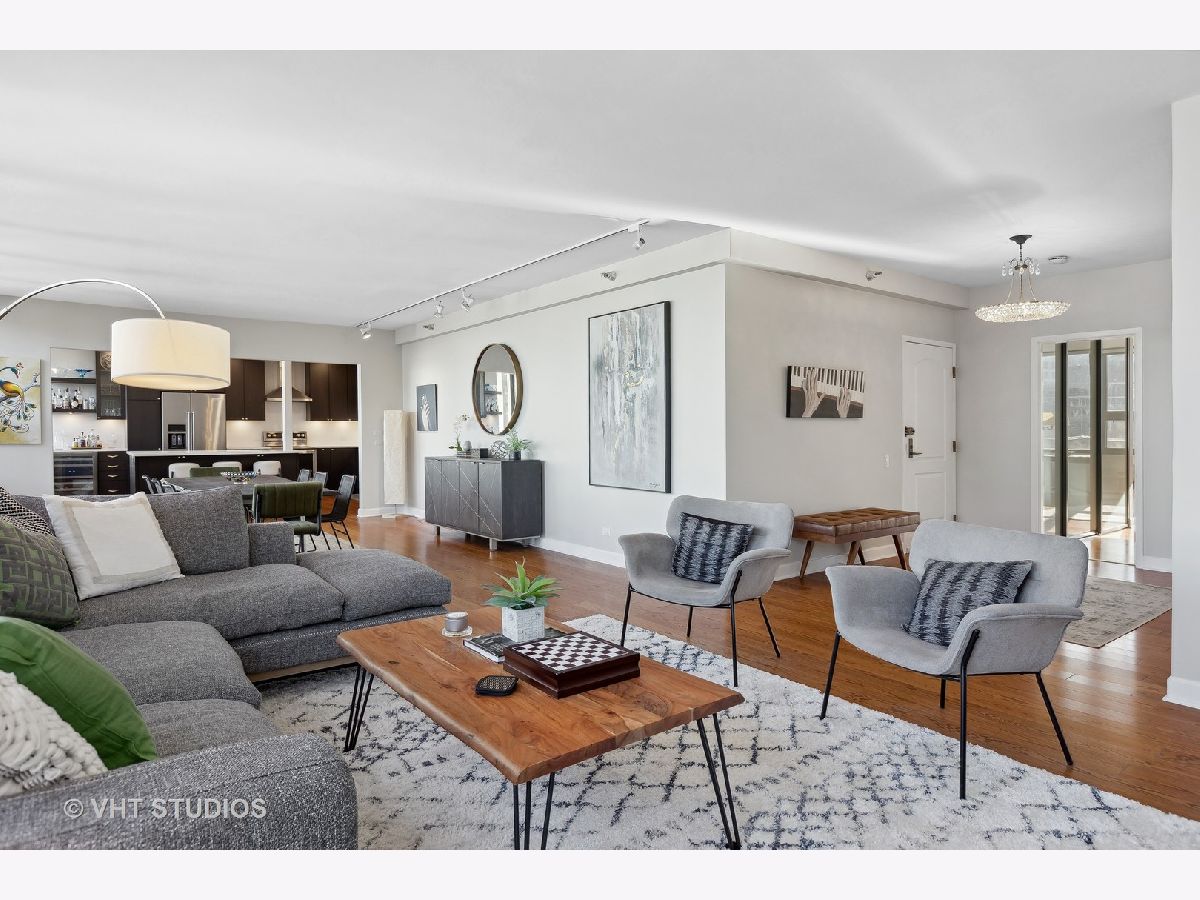 SEE MATTERPORT 3D TOUR and VIDEO TOUR of this amazing Gold Coast luxury home with lake views. With great light, this unit has the entire on the entire 19th floor exclusively with spectacular lake and city views. The elevator takes you to the private foyer, with two entrances into the main hall or into the kitchen area. The private elevator hall has newly renovated slate floors and custom wood slatted walls. The bright, large open concept living and dining room area have a wall of windows and is open to the brand new kitchen. The kitchen was renovated down to the studs and features walnut custom cabinetry, quartz countertops and back-splash, large island and all new appliances. The oversized primary bedroom suite and the additional two bedrooms have great closets, built ins and new motorized roller shades. Both the primary and second bath have radiant heated floors. Laundry room with ample storage and new full size Samsung washer and dryer. The entire unit has brand new pre-finished, engineered floating wood floors. 1 parking space in building's attached garage is available for sale at $35,000. This professionally managed boutique building recently invested $1.4+ million into improvements to the facade, elevators, garage, and other infrastructure. Amenities include a key fob access system, roof deck with grills, and storage. Pet-friendly, one large or two smaller dogs are welcome. Amazing location on beautiful Walton street just steps from the lake, Oak Street beach, the MCA, amazing restaurants, and Michigan Avenue! Truly walk to all location! This is a true gem!