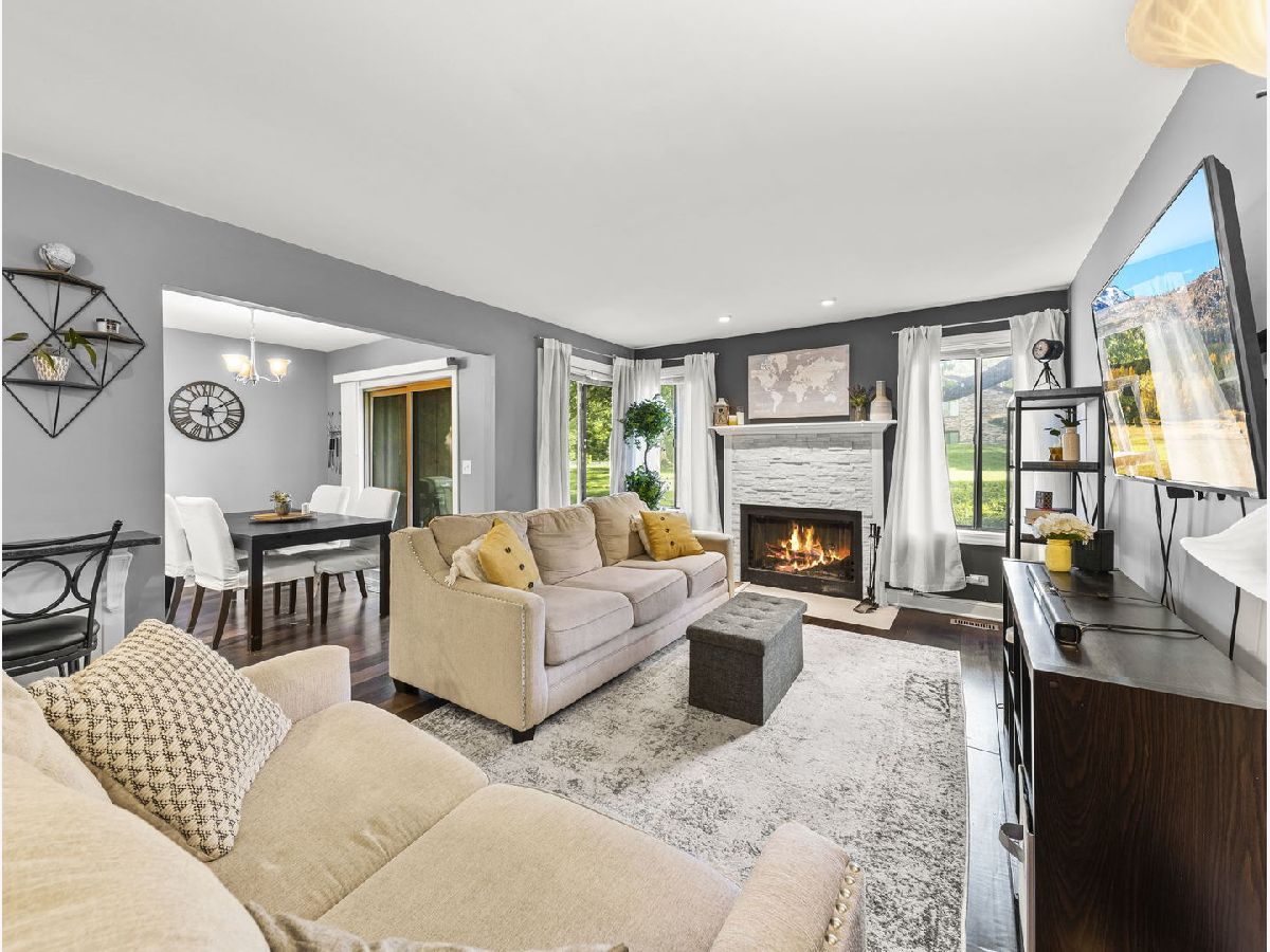 Don't miss your opportunity to own a beautiful and completely renovated two bedroom condo in the heart of Lisle! This bright & spacious first floor unit was completely redone in 2017 including new paint throughout, engineered hardwood floors in the main living spaces, carpet in the bedrooms, and all new appliances including HVAC, water heater, and washer & dryer. The kitchen boasts an open layout featuring granite countertops, black stainless steel appliances, and a spacious island. Perfect for entertaining! The dining area leads to the walkout patio with a great view of Timber Park. Some other bonuses include in-unit laundry, an attached one car garage, and close proximity to Benedictine University, the Metra, Expressways, Downtown Naperville & so much more. Welcome home!