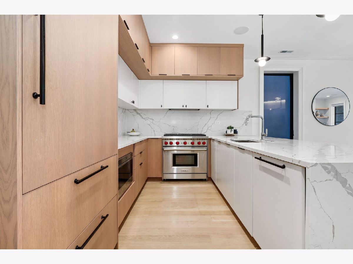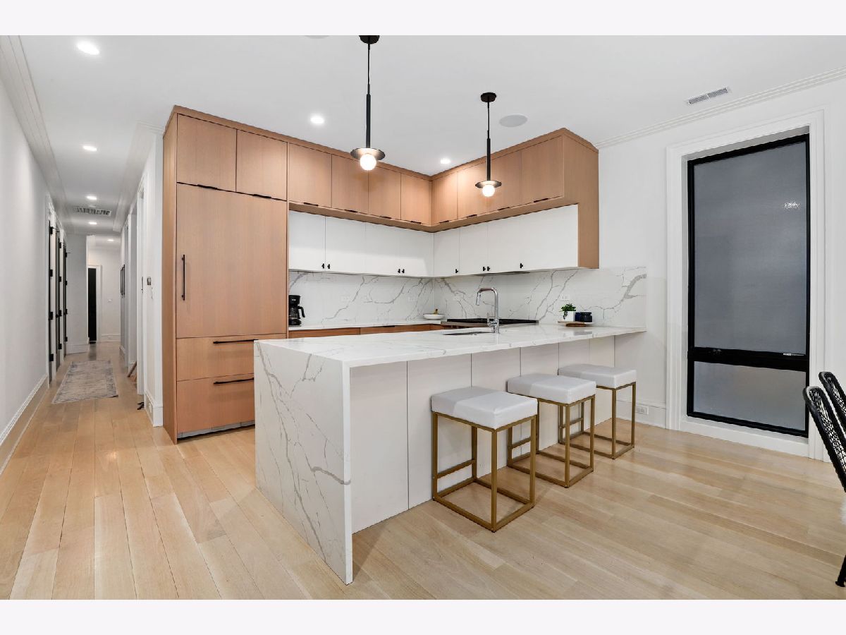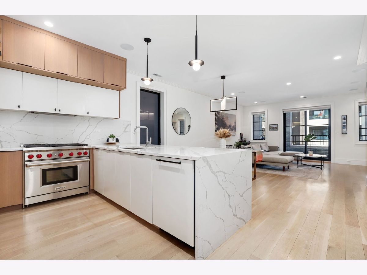 Step into this bright and inviting two-bedroom plus office in a beautifully crafted masonry, brick, and limestone building, perfectly situated in the heart of Lincoln Park. This stunning home showcases high-end finishes and a thoughtfully designed open floor plan. The chef's kitchen features sleek modern cabinetry, premium Wolf appliances, quartz countertops, and bar seating, seamlessly flowing into a separate dining and living area. The spacious 19-foot-wide living room boasts a custom wall unit and opens to a private front terrace, creating an ideal space for entertaining. The primary suite offers a luxurious retreat with a spa-like bath, including radiant heated flooring, elegant porcelain tile, and a double vanity. A generously sized second bedroom and a flexible bonus space-perfect for a home office or workout area add to the home's appeal. Additional features include 5-inch white oak hardwood flooring throughout, 8-foot solid core interior doors, floor-to-ceiling Jeld-Wen windows, custom lighting, in-unit laundry, and garage parking included in the price. Unbeatable location-just steps from top-rated restaurants, boutiques, Oz Park, the Fullerton "L" stop, Halsted bus, coffee shops, and more. Don't miss this exceptional opportunity!