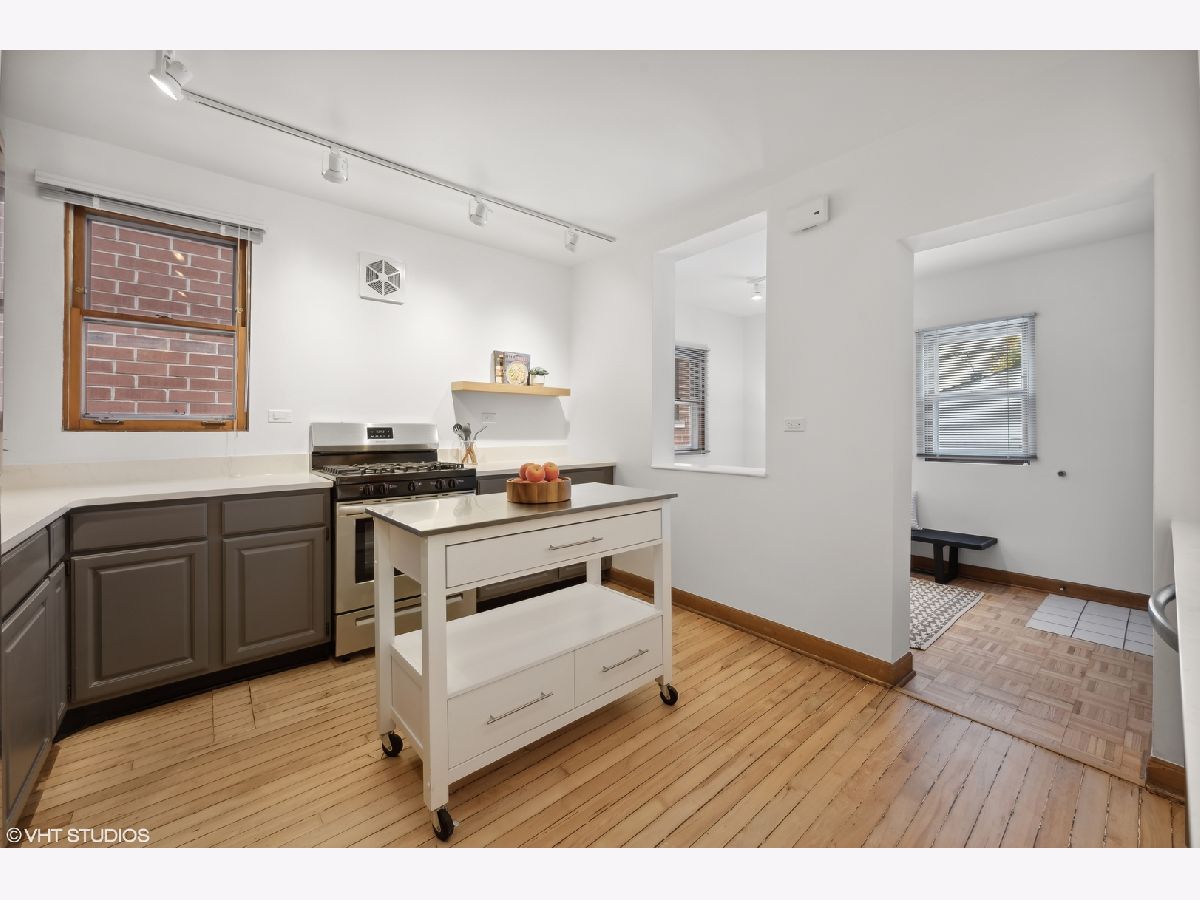 One of a kind Worker's Cottage located in the heart of Bucktown. This home has been meticulously maintained by the same owner for over 35 years. Recent updates to the home include kitchen and bath renovation with new appliances, quartz counters, floating shelves, undermount sink and new faucet, bathroom floor tile, vanity, faucet and toilet. Hardwood floors just refinished. Recent exterior work includes new ground cover in front parkway, new iron fence and gates in front, new rear patio pavers, tuckpointing and painting of exterior and garage and tear off roof on garage. Near Ehrler Park, the 606, Western & Damen Blue Line stops, 90/94 and tons of restaurants and shops.