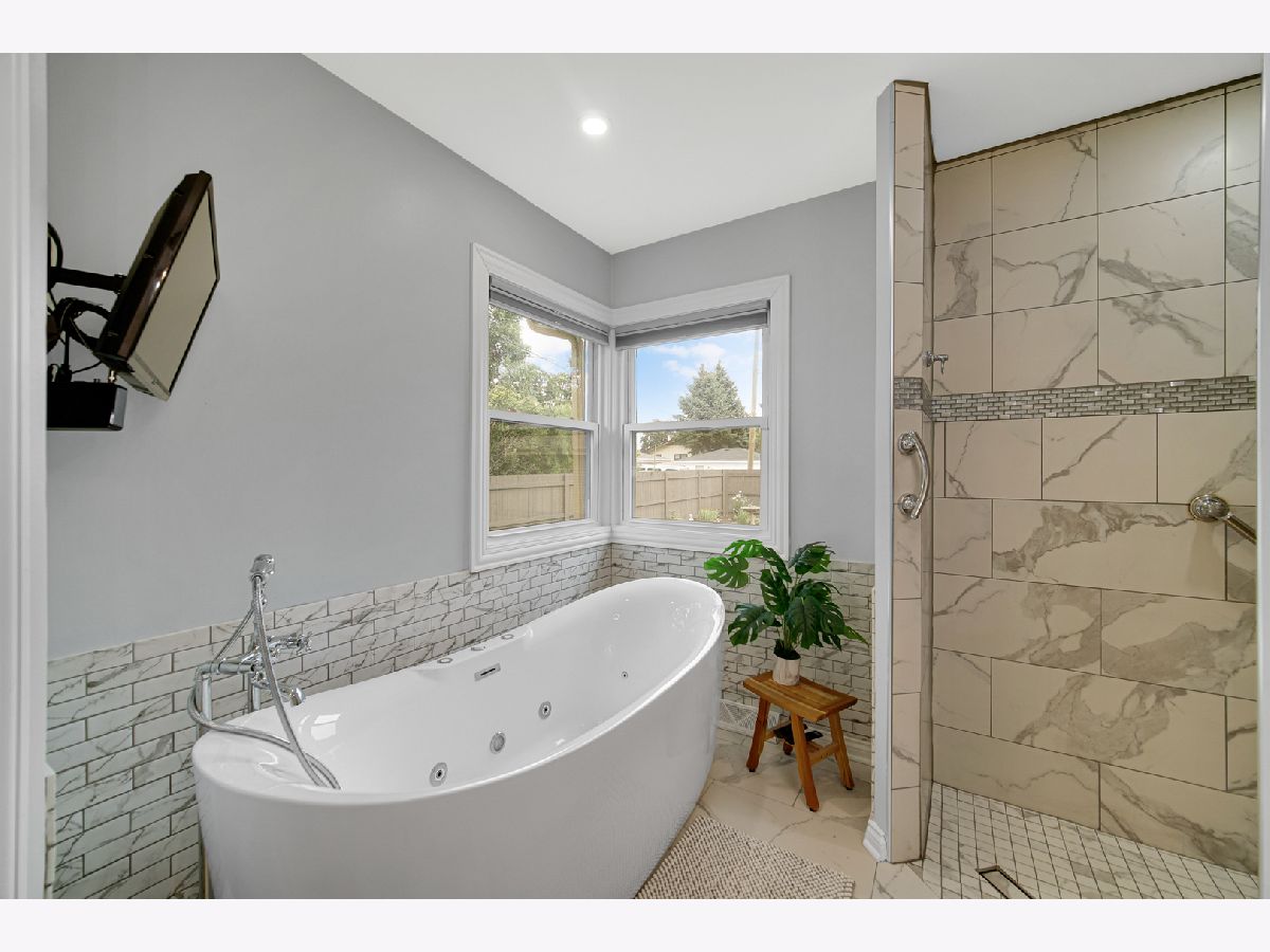 Welcome to this impeccably remodeled home, where every detail has been thoughtfully designed and upgraded. This home offers three spacious bedrooms, two full bathrooms, and an additional half bath, ensuring ample space and comfort for everyone. As you step inside, you'll be greeted by an inviting large living room and dining room, perfect for entertaining guests. The state-of-the-art custom kitchen is a chef's dream, equipped with pot and pan drawers, slide-out pantry shelving, and a charming breakfast nook framed by new windows. Modern appliances include a convection wall microwave and oven, an induction five-burner cooktop, and a range hood with efficient exterior venting. One of the main floor bedrooms is equipped with a convenient elevator that provides easy access to the basement, enhancing the home's accessibility. The luxurious primary bedroom suite is a true retreat, featuring an en suite bath with heated flooring for ultimate comfort. The bathroom also boasts a large vanity with abundant storage, an oversized freestanding Jacuzzi tub, separate tiled zero edgen shower and a spacious walk-in closet. The completely remodeled lower level is designed for relaxation and entertainment. Wide stairs lead to a generous living area that doubles as a theater room, alongside a third bedroom and a full bathroom. This bathroom is a spa-like haven, offering a steam shower, heated tile flooring, and a stunning mural surround shower tile. The property features a 2.5 car garage, complete with a brand new roof and a durable steel access door. The expansive yard is fully fenced, providing privacy and security, with an electronic gate entry at the driveway for added convenience. Additional upgrades include a newer HVAC system, sump pump, and a tankless water heater, ensuring modern efficiency and reliability throughout the home. Experience the perfect blend of luxury, comfort, and functionality in this beautifully remodeled home.