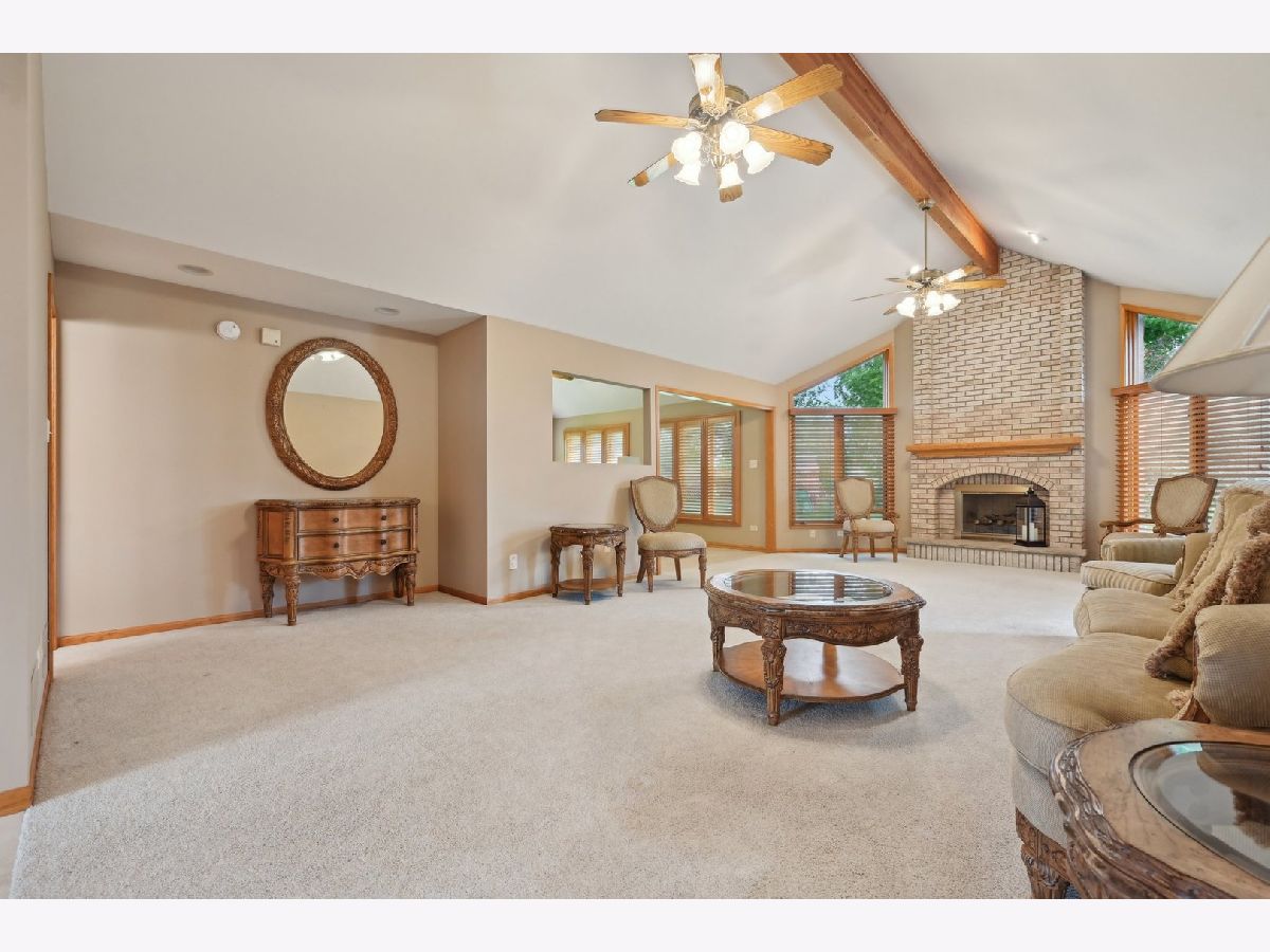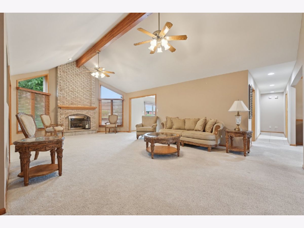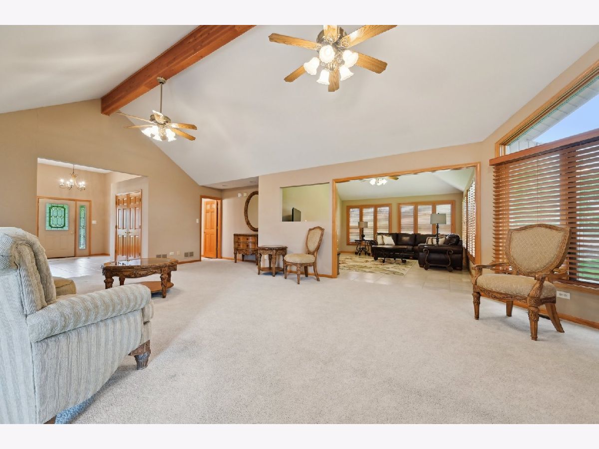 Welcome to your new home in Frankfort's sought-after Sandalwood Estates! This spacious, custom-built ranch features 3 bedrooms, 2.5 bathrooms, and a full basement with a rough-in for an additional bathroom-offering possibilities for future expansion. The open-concept main floor boasts vaulted ceilings and a generous living room centered around a striking floor-to-ceiling fireplace. The grand kitchen is ideal for everyday living and entertaining, complete with stainless steel appliances, granite countertops, reverse osmosis system, breakfast bar, and an eat-in area that leads out to an outdoor deck. A separate dining room provides the perfect space for formal meals, while a den/family room adds flexibility for your lifestyle. The primary suite includes a private en-suite bathroom and a walk-in closet, and the attached 3-car garage adds extra convenience. Recent updates include a new water heater (2024), sump pump (2022), kitchen appliances (2020), roof (2018), furnace (2017), and A/C (2016). This well-maintained home combines comfort, quality, and convenience in one of Frankfort's most desirable neighborhoods!