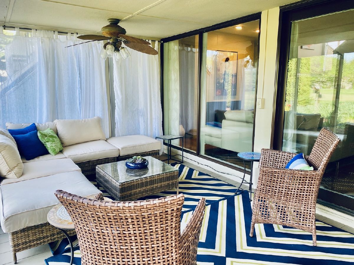 Beautifully updated condo with amazing views on Lincolnshire Golf Course. This 2 story unit offers an open floor plan thru out both levels. Updates from Top to bottom in this beautiful 3 bedroom, 2.5 bath 2 car garage condo with additional private golf cart garage. The hardwood flooring gleams across the open dining room into the great room with fireplace-both overlook the large rear porch, Thoughtful landscaped private rear and side yards and golf course beyond. Yard also has invisible fence for pets. Enjoy the architecture of the open staircase leading the bedrooms & 2nd living room area with plenty of built-in book shelving franked by a wall of light as floor to ceiling doors/windows give an even better prospect over the course. Master suite is large with same amazing views and large enough for sitting space. New roof, new siding, windows, and sliding door 2019, updated baths, 2018 & 2019, new gas fireplace and surround 2019, all new lighting & ceiling fans 2018, new wall mounted living room cabinet, new dishwasher, 14 new doors & hardware and new barn door in master and new garage door, opener and key pad 2018. So just drive into your garage and come home in your new oasis retreat!