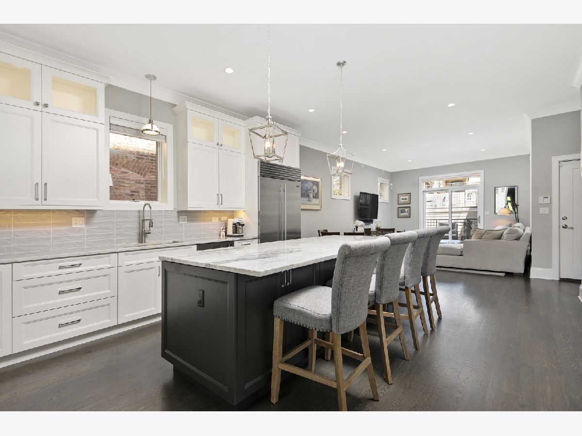 This nearly new (2017), Extra-Wide duplex home boasts an A+ Lincoln Park location and is ideally situated in the top rated Oscar Mayer school district. The thoughtfully designed floor plan features an open layout, large room sizes and multiple private outdoor areas including a substantial private roof deck. Sleek design elements and high end finishes are found throughout the property. The eat-in kitchen features an oversized quartz island with breakfast bar, a custom wet bar and top of line Wolf/Subzero appliances. The upper living level was finished to impress with 8 ft solid core doors, custom millwork and beautifully designed built-ins. The home lives like a single family with all beds on the radiant heated lower level. The primary bedroom includes a substantial walk-in closet and a spa-like bathroom with steam shower, dual vanity and custom marble tile work. Laundry is conveniently located on the bedroom level. The home is wired for sound and includes garage parking. Easily walkable to Armitage and the Train!