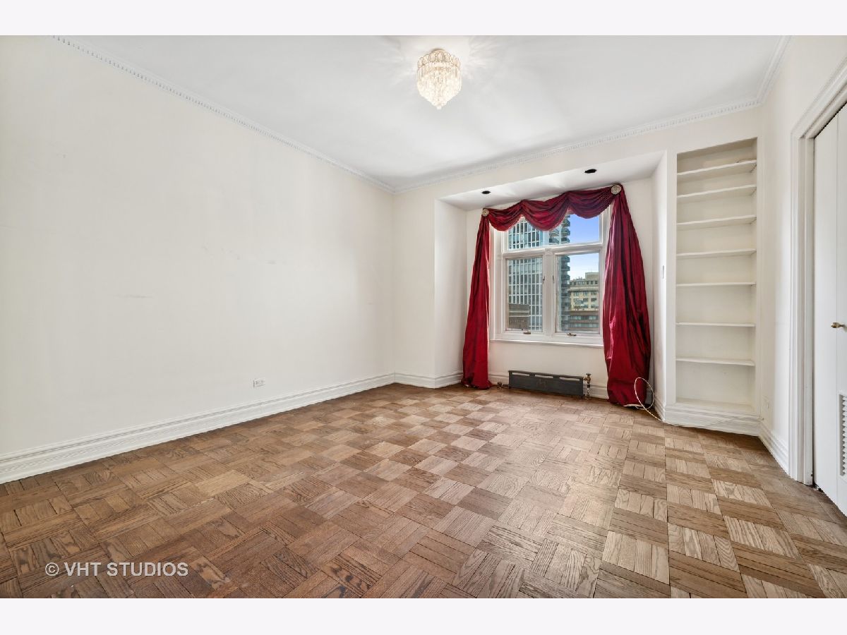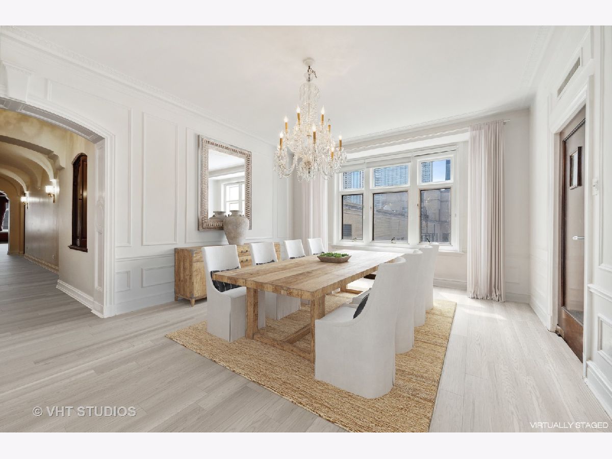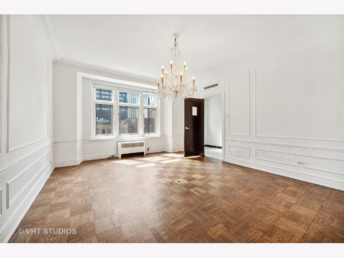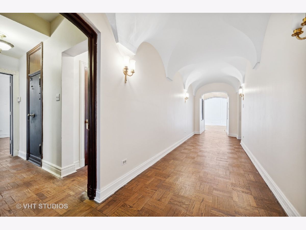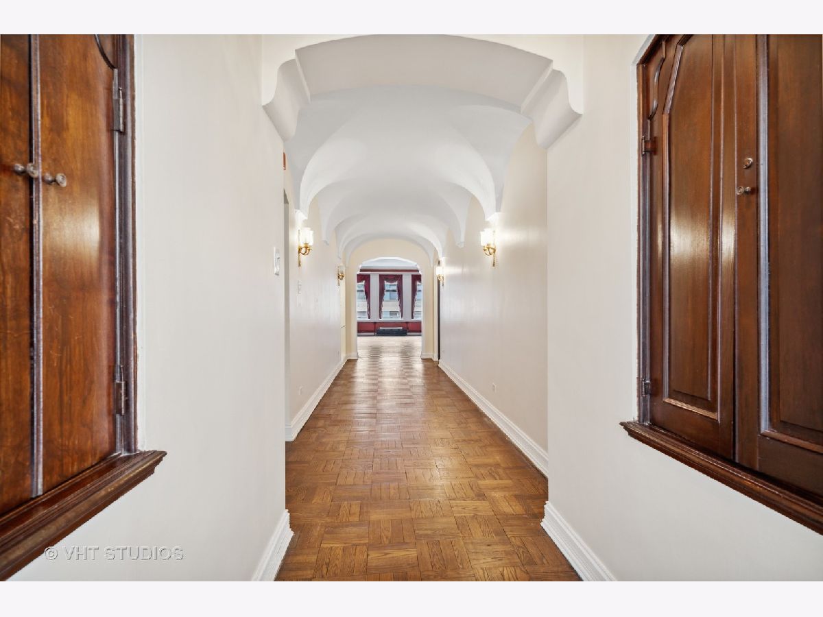 This elegant vintage condo is an architectural gem, waiting to be restored to its original glory. The elevator operated by the doorman, opens to a vestibule shared by the 2 residences on the 16th floor. . You step into the grand 30 ft. foyer with barrel vaulted ceiling and built-in niches and you are immediately feel that you have been transported to Downton Abbey or Bridgerton! Original plaster walls and high ceilings are crowned with ornate plaster moldings; all still in excellent condition. The foyer spans the distance between the south facing, formal living room with decorative fireplace,at the front of the unit, and the elegant formal dining room, with spectacular and stately crystal chandelier, on the north end. Beyond the dining room are the butler's pantry, large kitchen, breakfast room/laundry room or office, and full bath. The home features original parquet flooring throughout, built-in linen cupboards in the sleeping quarters and an original and functioning cedar lined safe for storing furs, jewels and any other valuables. The primary bedroom suite includes 2 closets, a dressing room and full bath ensuite. The second ample bedroom also includes an ensuite bath;and the third bedroom could be used as, a large nursery or incorporated into the primary suite as a sitting room or den. In addition to the building's hot water heating system, current owners installed dual-zoned HVAC systems which allow them to regulate the heat and air in accordance with their needs. Owners also installed a washer /dryer hook up in the breakfast room closet off the kitchen. The "A Tier" units are approximately 2800 sf....the largest units in the building. This gem is being sold "As-Is";looking for a fan of old world elegance to update this home and make it their own. Recent "A Tier" units fully renovated sold for $900K-$1.1M. This is one of the grand boutique buildings in Streeterville, with the character and charm of another era. The building features 24 hour door staff and elevator operator, a freight elevator, a communal rooftop deck, an exercise room, a full laundry room and storage in the basement. Location is ideal with quick access to Michigan Ave. shopping and dining, The MCA, Streeterville dining and entertainment, and the lakefront. Parking, if needed, is available for lease in various garages on the block, including the garage immediately to the east of the entrance to 222 E Chestnut.