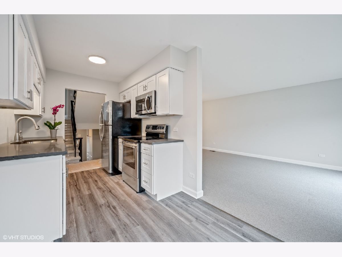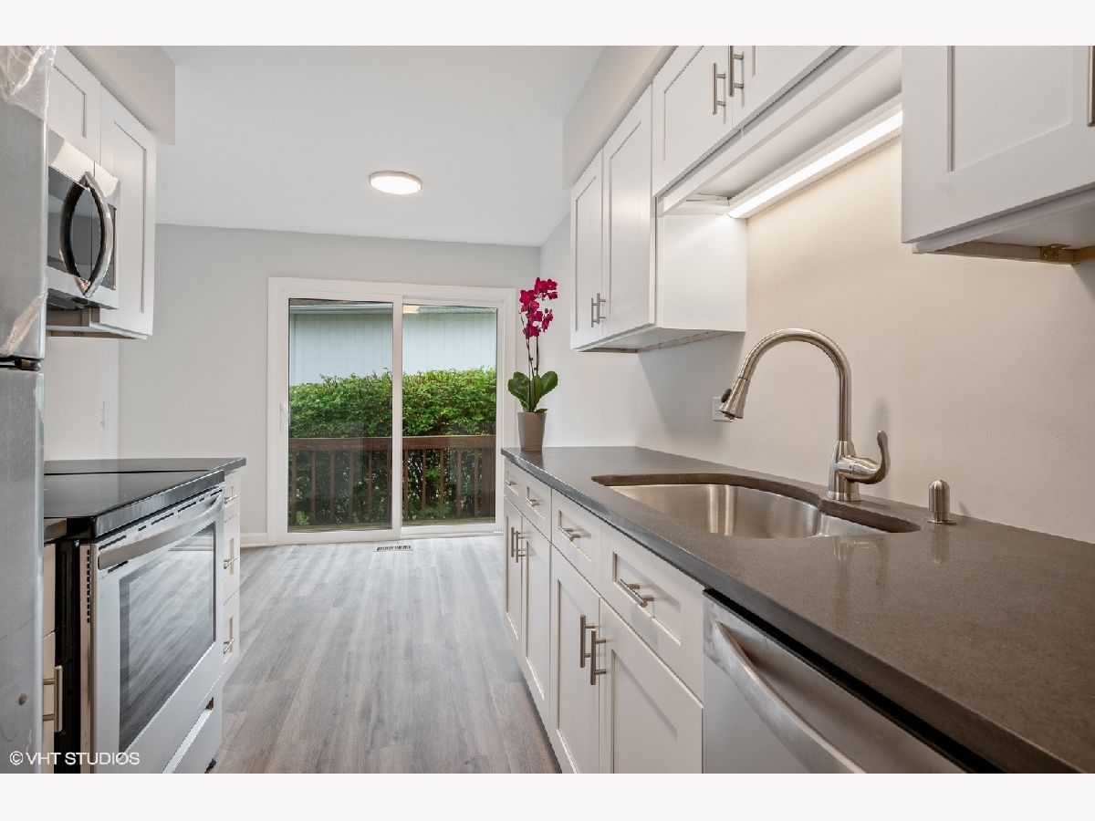 Beautiful condo completely updated! Modern, fresh paint colors, new light fixtures, choice tile & vanities in the bathrooms make this home move in ready and very current. Brand new kitchen has been opened up to the bright living room/dining room area and includes all new appliances, new cabinets, new light fixture and new countertops. This main floor has new sliding glass doors that lead to deck and allows abundant light to stream into this home! Entire home is freshly painted with new carpeting throughout. The master bedroom is on the second level and includes a new walk-in closet and brand new master bathroom. The 3rd level has two additional light filled bedrooms, a full bath and large linen closet. The lower level is a wonderful family room, also newly carpeted. This level also has the laundry room and a half bath. Enjoy the convenience of an attached garage and plenty of visitor parking. Assessments include exterior maintenance, siding, roofing, lawn care snow removal and common insurance. Great private road, but close to all of the wonderful Wilmette amenities: great village center, library, parks and transportation. Close to McKenzie Elementary, Highcrest Middle School & Wilmette Junior High. New Trier School district.