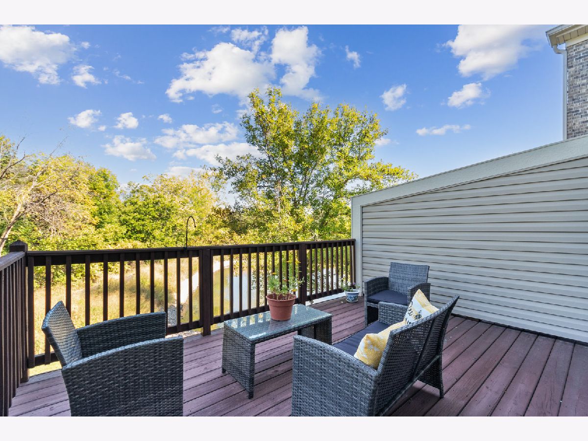 Step into this breathtaking 3-bedroom, 3.1-bathroom townhome, nestled in the coveted River Mist on the Fox subdivision. This exclusive community of 80 townhomes is surrounded by lush, landscaped open spaces adorned with trees, prairie grasses, tranquil ponds, and walking paths, offering a serene and picturesque retreat. This home boasts a bright and airy open floor plan, anchored by a two-story living room with stunning Palladian windows and a cozy gas fireplace. Step out onto the deck and take in the serene pond views. The kitchen is a delight, featuring cherry cabinets, a breakfast bar, and ample counter space, seamlessly flowing into the formal dining room. A convenient first-floor laundry room enhances the home's practicality. The mid-level hosts the 2nd and 3rd bedrooms, along with a full hall bathroom. Ascend to the upper level to find a charming loft that overlooks the living room. The luxurious primary bedroom offers a private retreat with a walk-in closet and a double sink with a vanity area. The finished walkout basement is perfect for entertaining, complete with a full bathroom, a large family room, and access to an inviting patio. Additional features include a two-car garage, a new HVAC system installed in 2023, and a water heater from 2019.