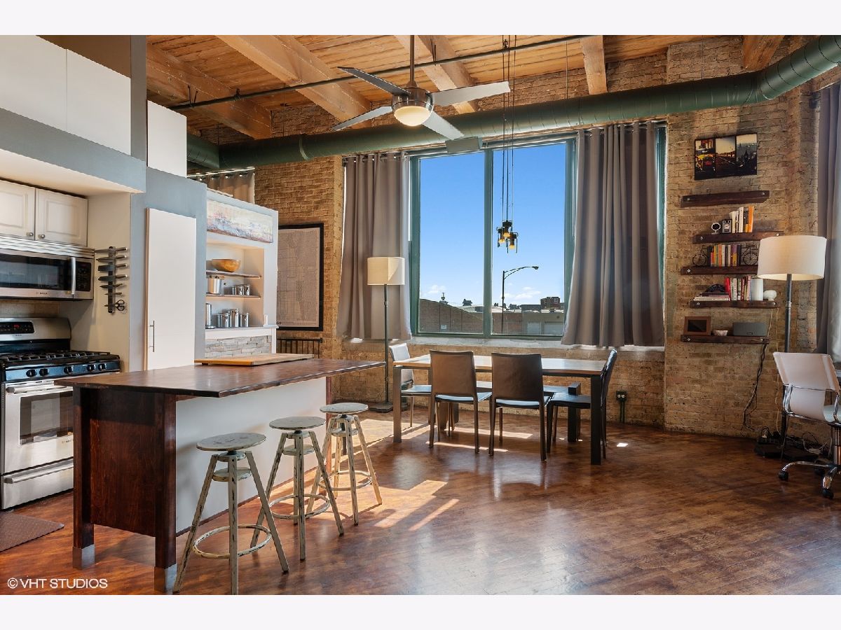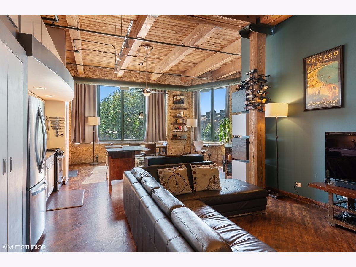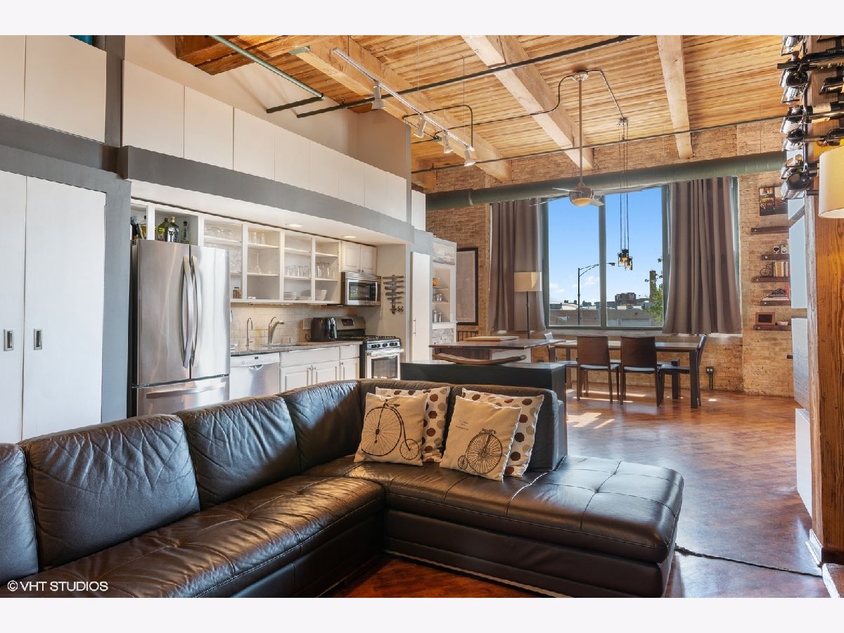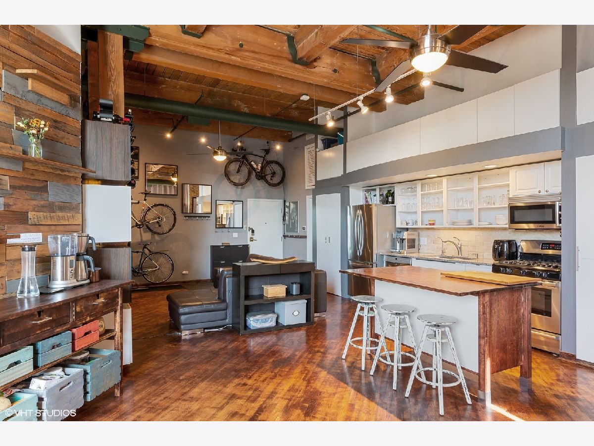 Welcome home to your true brick and timber loft with extravagant 14 foot ceilings! Walk into a large south-facing unit with natural sunlight, clear views of downtown, sweeping 8 foot windows and hardwood floors throughout! Both bathrooms have been renovated: hall bath with luxurious marble & granite; master bath with a slate walk-in shower and gorgeous sliding barn door. The open concept kitchen features new granite counter tops, a convenient island, Bosch and LG stainless steel appliances, plenty of white shaker cabinetry and a cozy, 2-sided gas fireplace. Enjoy a private balcony off the 2nd bedroom perfect for grilling on sunny summer days. A premeire heated garage parking spot is included. To top it all off, don't miss the incredible Chicago skyline views from a massive shared rooftop deck (see photos)! Steps from Logan Square and West Lakeview including grocery stores, the bowling alley, shops, restaurants, and plenty of entertainment! Minutes from the highway, bike trails and all public transportation. FHA approved building.