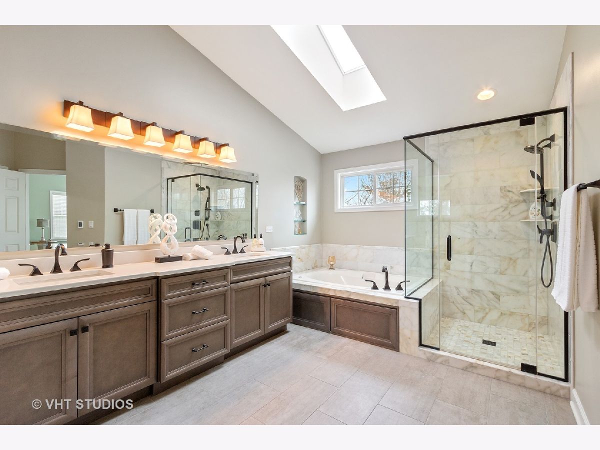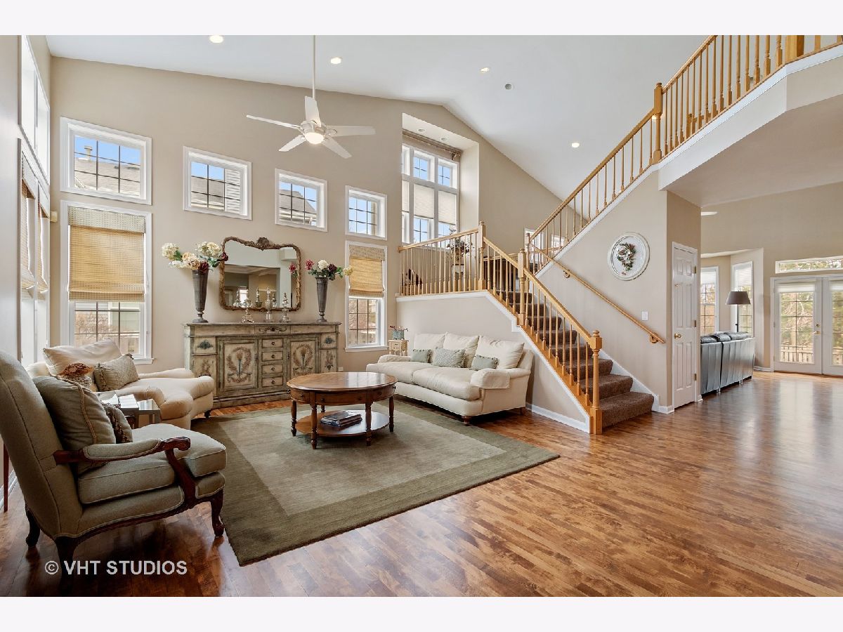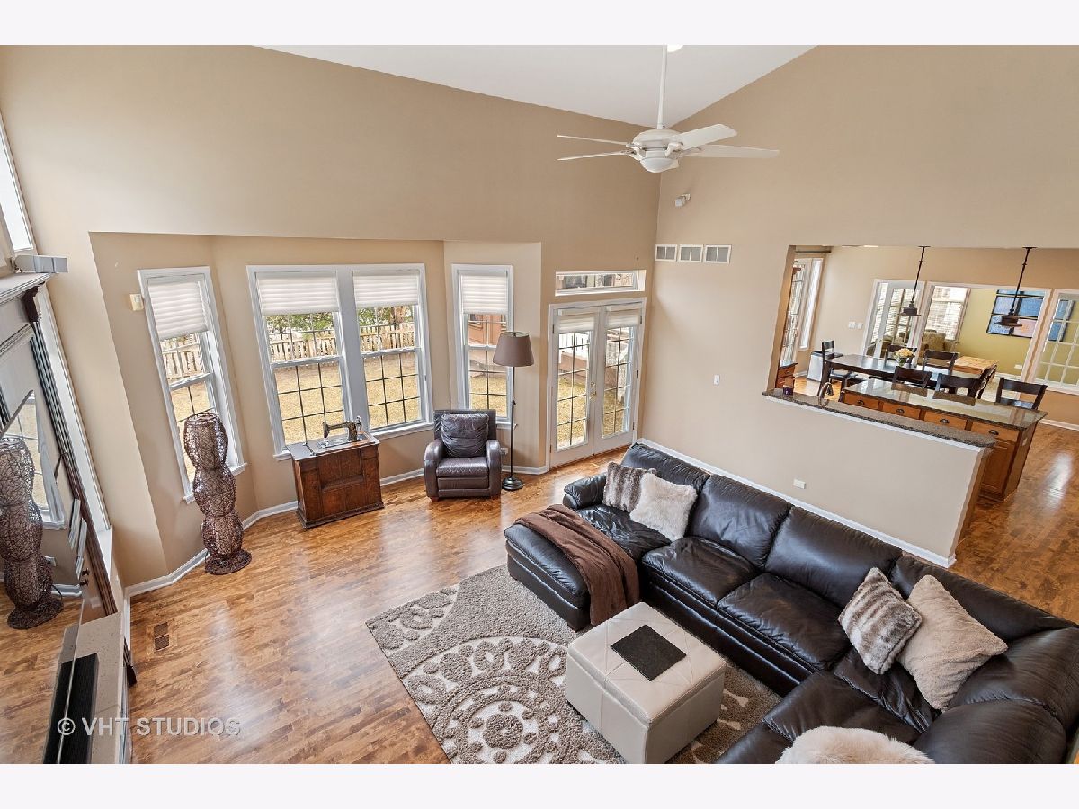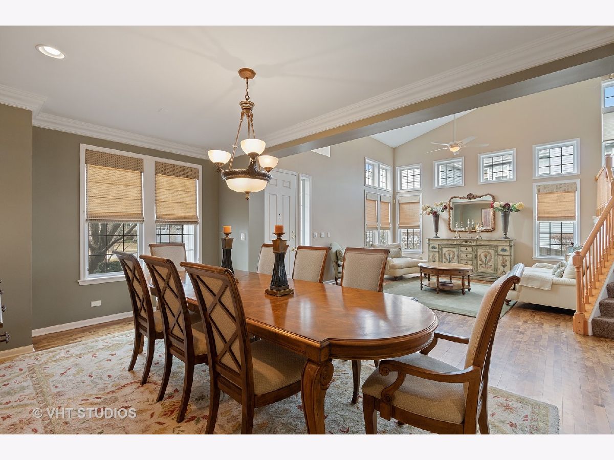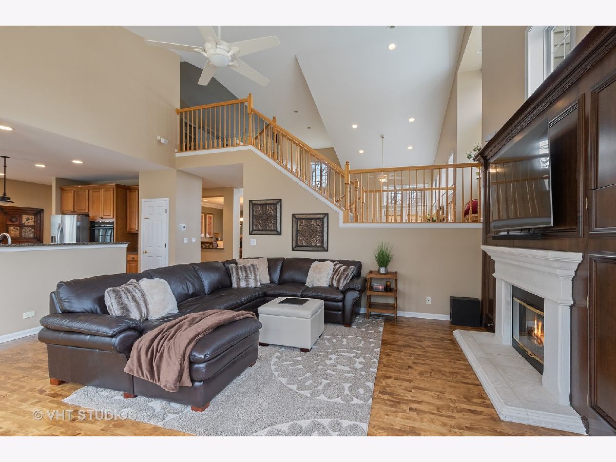 STEVENSON & D102* Entertainers dream home* Spacious open floor plan with UPGRADES GALORE* Enter through the 2 story foyer with gorgeous hardwoods & recessed lighting t/o entire 1st floor* Fabulous sunlit living room w/ vaulted ceiling* Formal Dining Room with crown moldings* Family room w/ vaulted ceiling, wood burning FP & beautiful wood built-in wall unit* GOURMET eat-in kitchen overlooks great room & offers 42" cabinets, granite counters, large center island w/breakfast bar & large pantry* Den, Office, Laundry room & FULL BATH complete the 1st floor* Awesome loft on second floor can be great computer area for kids* Oversized Master bedroom w/french doors, gas FP, vaulted clg & cozy sitting area* UPDATED LUXURY MASTER BATH w/dual vanity, HEATED floor, jacuzzi tub, separate shower & LARGE custom walk-in closet*3 additional bedrooms and full bath w/ dual vanity complete 2nd floor* AMAZING FINISHED BSMT w/FULL bath, additional kitchen/bar area, large recreation area, exercise room, utility area & 5th bedroom option *3 CAR heated garage*Large FENCED yard with wood deck, patio and gazebo w/hot tub* Custom window treatments, intercom system, lawn sprinkler system, alarm system*WELCOME HOME!