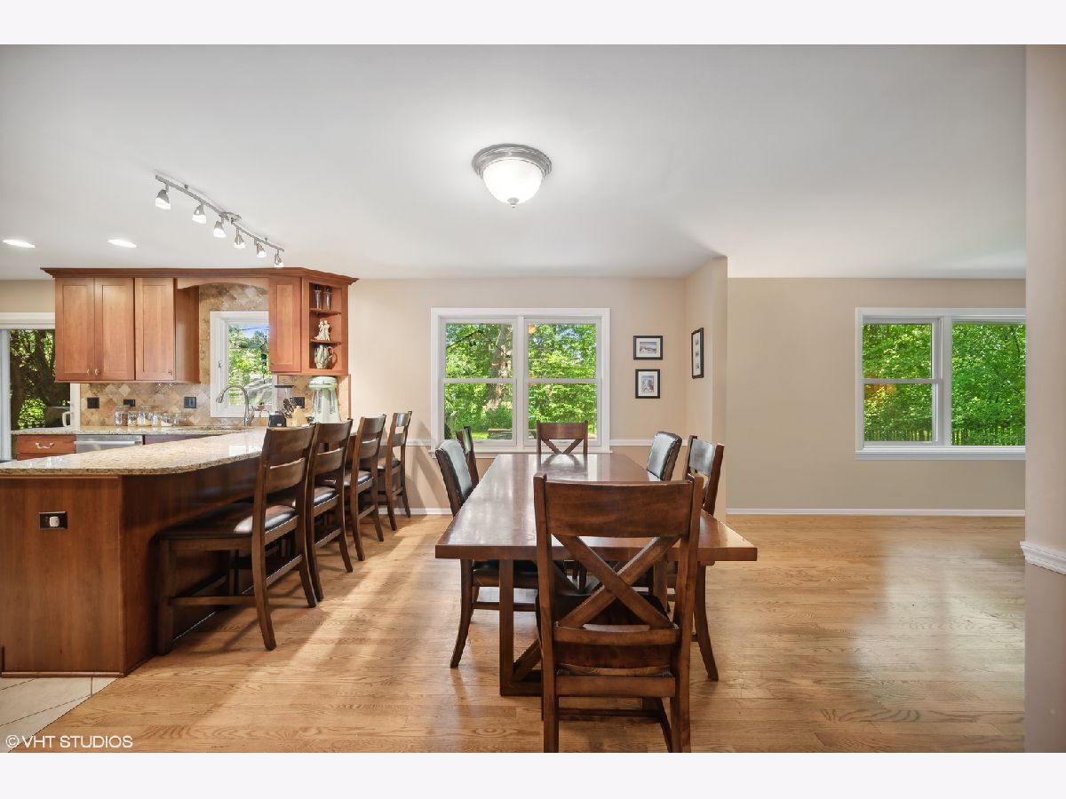 An ideal home with the perfect location close to town and the train! You'll love the generous room sizes and open floor plan. The living room and dining area overlook the lush yard with a large deck and mature landscaping, an ideal layout for entertaining guests. The roomy kitchen was updated in 2012 and features plenty of counter space including a large island and an abundance of storage. Adjacent to the kitchen is a spacious family room with a cozy fireplace making it the perfect space to relax. The first-floor bedroom with an en-suite bathroom could be used as the primary or a guest suite and provides additional privacy separated from the other bedrooms. A powder room and mud room with direct access to the attached 2-car garage complete the first floor. Upstairs you will find the spacious primary bedroom with an ensuite bathroom. This space was reconfigured to add a huge walk-in closet that features an office tuck away in the back, the perfect work from home space. The second floor also has two additional generous-sized bedrooms, hall bath, and laundry with great storage. The lower level is the ideal area for a rec room with plenty of space for an exercise area plus tons of storage space. This home has great outdoor space including a fenced backyard with a large deck and playset plus a charming front patio and spacious driveway. Attached 2-car garage. All of this is located on the edge of Downtown Northbrook with easy access to the Village Green Park, Sunset Food, the Metra, plus plenty of restaurants and shops. School district 28.