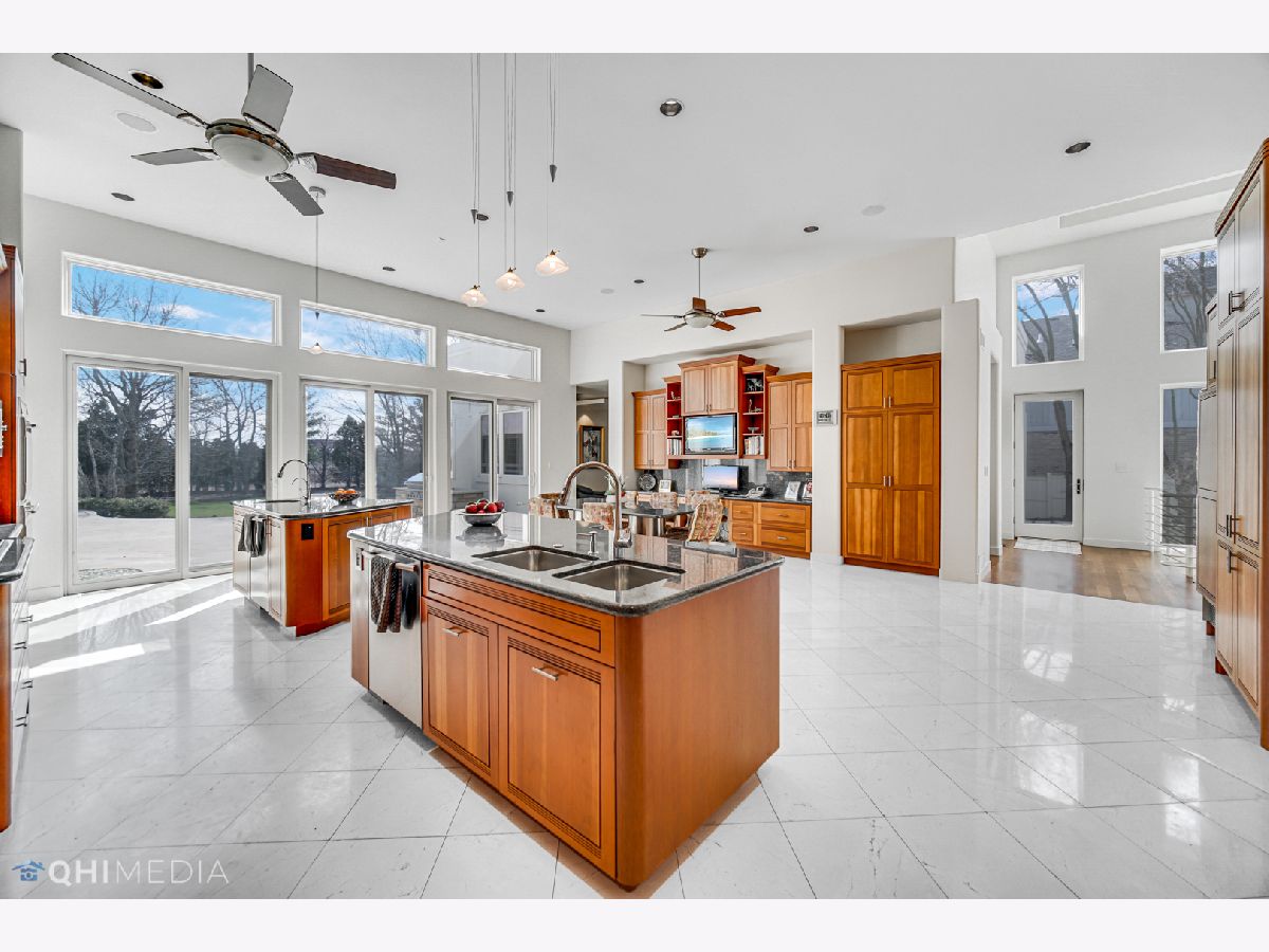 Welcome to the North Shore's most spectacular ranch. This 10,000 square foot masterpiece sits on over 1 acre with the most serene backyard that's peaceful for great relaxation and large enough for the best entertainment. This home is a perfect blend of contemporary mixed with transitional finishes for a unique design that sets it apart from any cookie cutter home in the area. It also has defined rooms yet maintains an open floor plan flow with the main living area ceiling heights being 12-16 feet and bedrooms at 10 feet. As you enter the home you'll be greeted by a large formal living room with a layered tray ceiling. From there it has a smooth flow to the luxurious kitchen with a double-island, built in 10-person table and a built in desk. The kitchen features heated floors, fireplace, 2 Subzero freezers, Subzero fridge, Wolf double oven, Wolf cook top and 2 Miele dishwashers. A heated floor hallway leads you to the master suite with an office, sitting room, spacious bathroom, 2 walk-in closets and a gym. Master bathroom features heated floors, a large walk in shower with 2 separate shower systems, body sprays and steam shower as well as built in soaking tub with jets for ultimate relaxation. In between the kitchen and master suite is where the wow factor of this home sits. Step into an indoor 1,800 square foot pool room where heated floors surround the 34x20 pool with swim machine, fiber optic lighting and hot tub. You'll never know there's a pool in this home with the Barrington no chlorine odor system. In the summer open up the sliding doors that surround the entire room to give it the indoor/outdoor feel. On the other side of the home is where you'll find the guest suite consisting of a sitting room, bedroom and full bathroom as well as an additional bedroom with en-suite bathroom and 2 bedrooms that have a jack and jill bathroom. Smart features include Crestron lighting and thermostats, Sonos music, and security cameras. Recent updates include kitchen cabinets, 4" white oak flooring, bathroom vanities, Pella windows and doors. A Kohler backup generator ensures that you will always have power, the HEATED DRIVEWAY ensures you never have to shovel or plow your driveway again and recirculating hot water ensures there's always hot water ready to come out immediately of every faucet and shower. 800 amp electric service. Oversized 1,000 SF 4 car heated garage with Floorguard epoxy coating and built in cabinets. Enjoy the open layout 3,500 SF basement with a 40x20 sports arena, full kitchen, bathroom and additional 4,000 SF of unfinished storage space. Exterior features include landscape lighting, in ground sprinklers, pond with double waterfall, stamped concrete patio with built in grill and it backs up to a protected Illinois Prairie. Perfectly located close to Wescott , Maple and Glenbrook North schools as well as easy access to both 94 and 294. This home is truly spectacular.