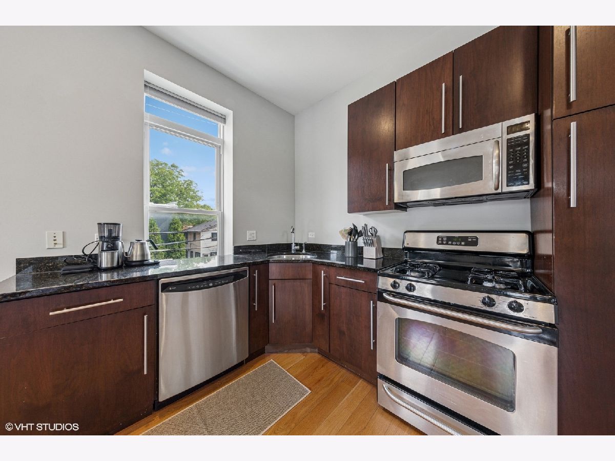 Charming 1-Bedroom Condo with Wrap-Around Deck in Prime Bucktown Location! Open-concept living space is flooded with natural light all day long. Hardwood floors and a gas fireplace creates a cozy atmosphere for relaxation. The kitchen features stainless steel appliances and granite countertops with plenty of space for dining. The generously sized bedroom comfortably accommodates a king-size bed, nightstands and a dresser, with a professionally organized closet for optimal storage. "Jack and Jill" bathroom with access from the hallway and bedroom. The expansive wrap-around deck is perfect for entertaining. Central heat and air, in-unit washer and dryer, and gated parking space included in the price! Nestled on a serene, tree-lined one-way street in the heart of Bucktown. This condo is close to vibrant parks including Holstein Park with outdoor pool, eclectic shops, Midtown Athletic Club, renowned restaurants, nightlife, and the 606 Trail. Public transportation options are easily accessible, as well as the expressway!