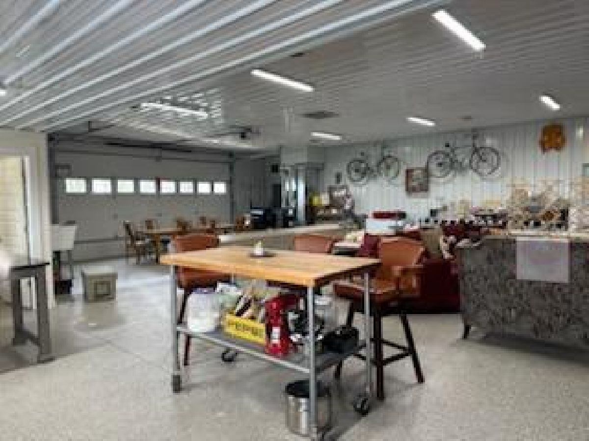 1600 sq. ft. building with multiply uses. Right now it is being used as a cooking business with awesome kitchen. Could be residential with very few changes. There are no interior walls except for the bathroon. Build in 2019 it is well insulated, has forced air heat and central air. Totally maintenance free exterior. You can have an open floorplan home or add a couple of walls and make it more traditional. It would be a perfect man cave home or a she shed home. Use your imagination!!! New double oven stove and 4 yr old fridge. Located on a corner lot with room for large garden or whatever you want.