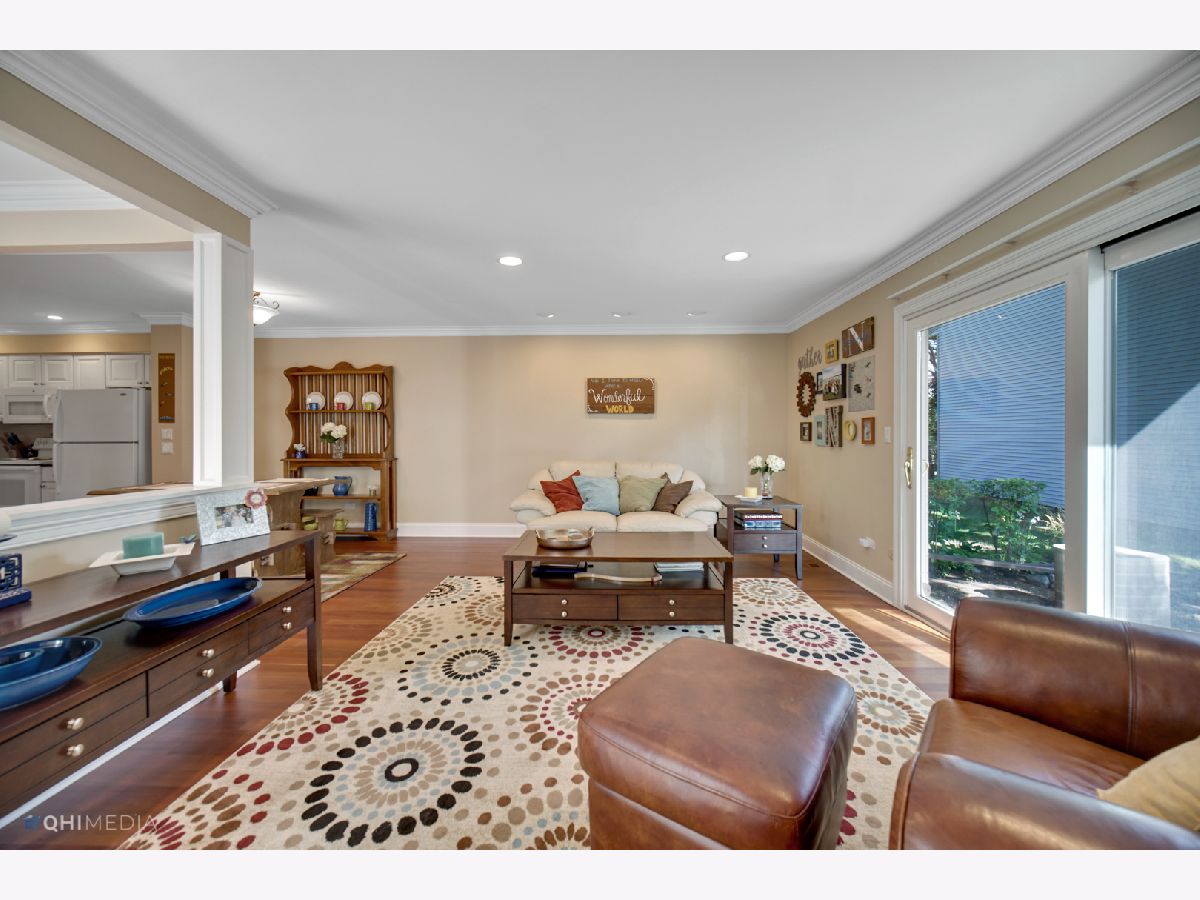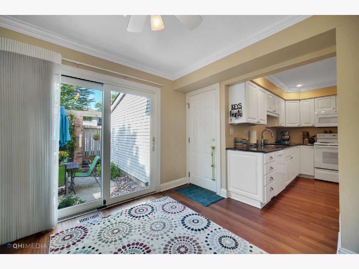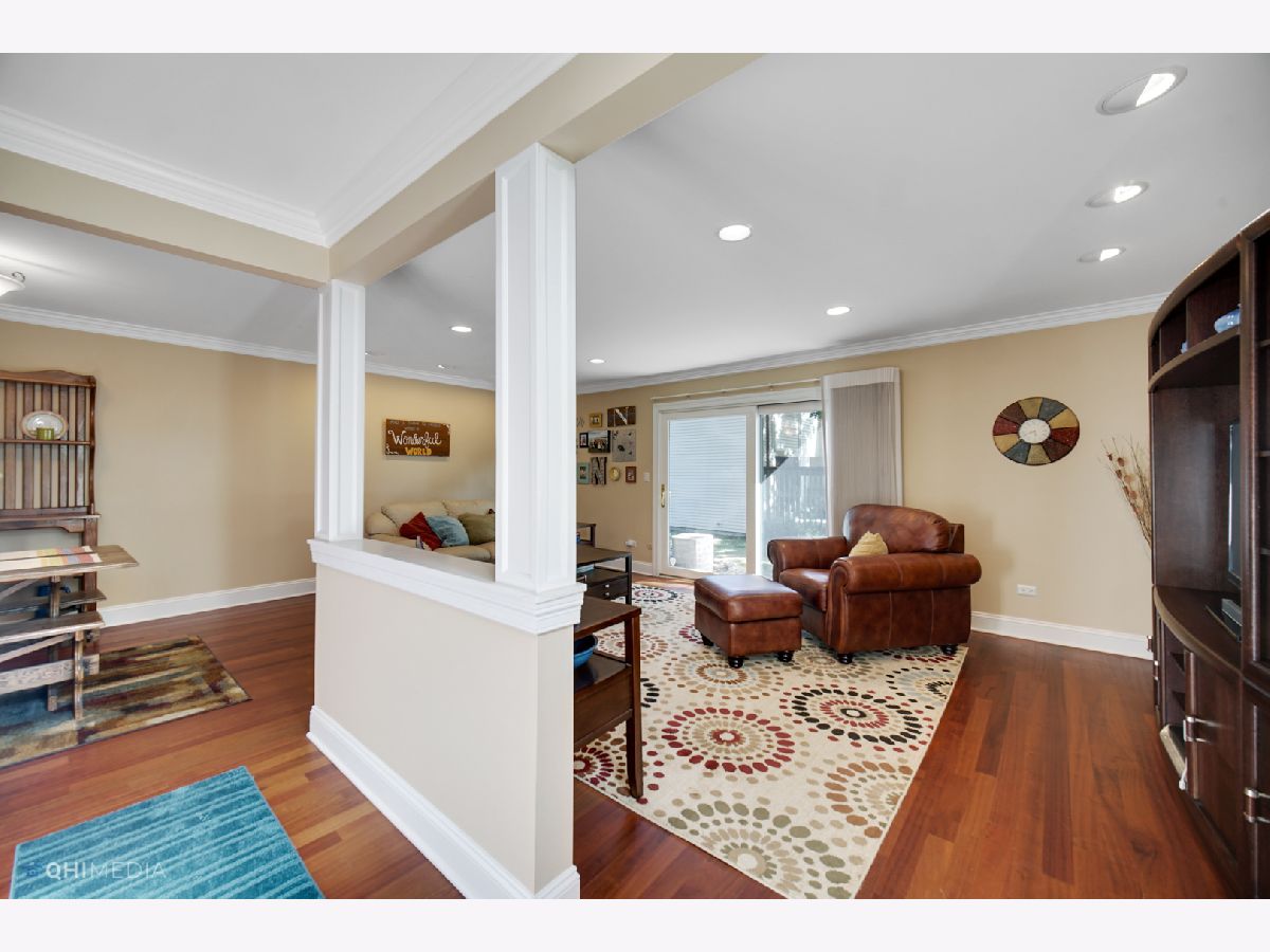 Welcome to Colony Country! This gorgeous, light-filled, end unit townhome has the perfect layout. The main level boasts cherry hardwood floors throughout with elegant crown molding, and recessed lighting. Updated kitchen with white cabinets and granite countertops, and a modern powder room. Spacious, open living room that leads to patio area, and comfortable dining room leading to your private, fenced courtyard. Upstairs you will find three nicely sized bedrooms and two full bathrooms. Both bathrooms are updated with abundant light. Ample walk-in closet in the master and sliding glass door leads to your cozy balcony, perfect for morning coffee. The finished basement adds another level of living space to entertain or sit at the bar area. Laundry room and work area finish out the basement. A spot for everyone in house to be together or apart. Situated among Old Orchard Golf Course, Colony Country has plenty to offer; pools, clubhouse, exercise facilities, and privacy. Hersey High School! Plenty to do in the surrounding area; shopping, restaurants, golf, movies, and more!