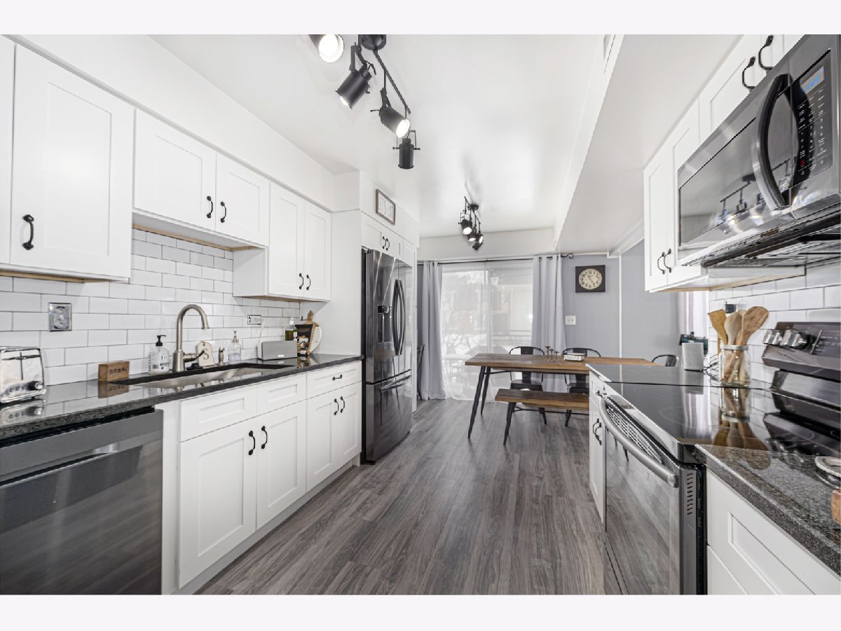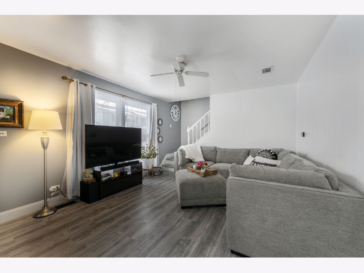 Move in ready 2 story townhome. End unit. 2 bedroom, 1.5 bath, full finished basement with convenient 2nd floor laundry. Eat in kitchen, new stainless steel appliances. Sliding doors open to balcony. Large master bedroom has walk-in closet. Recent updates include new flooring throughout, kitchen cabinets, appliances and garbage disposal. Furnace 2018. Hot water heater 2017. 2 assigned parking spots. Close proximity to shopping, restaurants, parks, x-ways and train. Walking distance to D54 Middle School. Walk to private association pool & park. Walk to Veterans Park (baseball & football fields)To show, park in visitor spot or assigned spots #126.