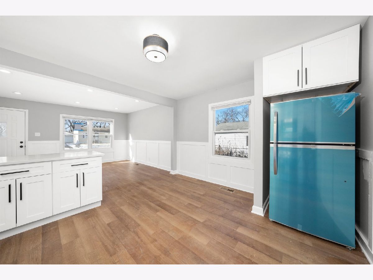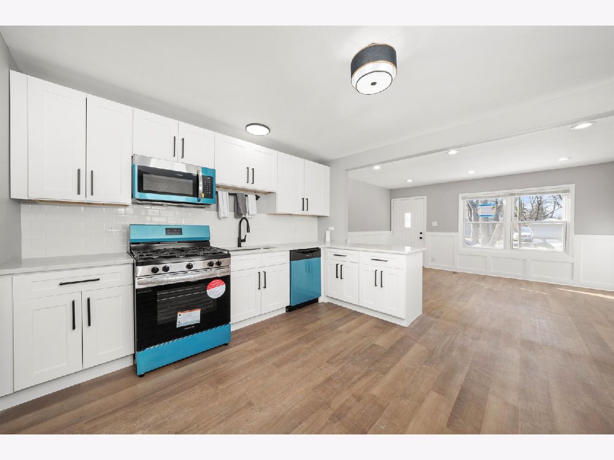 Check out this 3 bed 1 bath fully rehabbed home in Sauk Village. Walk into this beauty with brand new vinyl flooring, freshly painted walls, recessed lighting and wainscoting throughout the main living area. Brand new modern eat-in kitchen with white shaker cabinetry, quartz countertops, white subway tile backsplash and brand new SS appliances. The home offers 3 nice sized bedrooms and a full bath finished with modern tilework and fixtures. Utility closet with washer/dryer hookups. Brand new deck off the huge fenced in backyard with detached 1 car garage. Schedule your showing today!