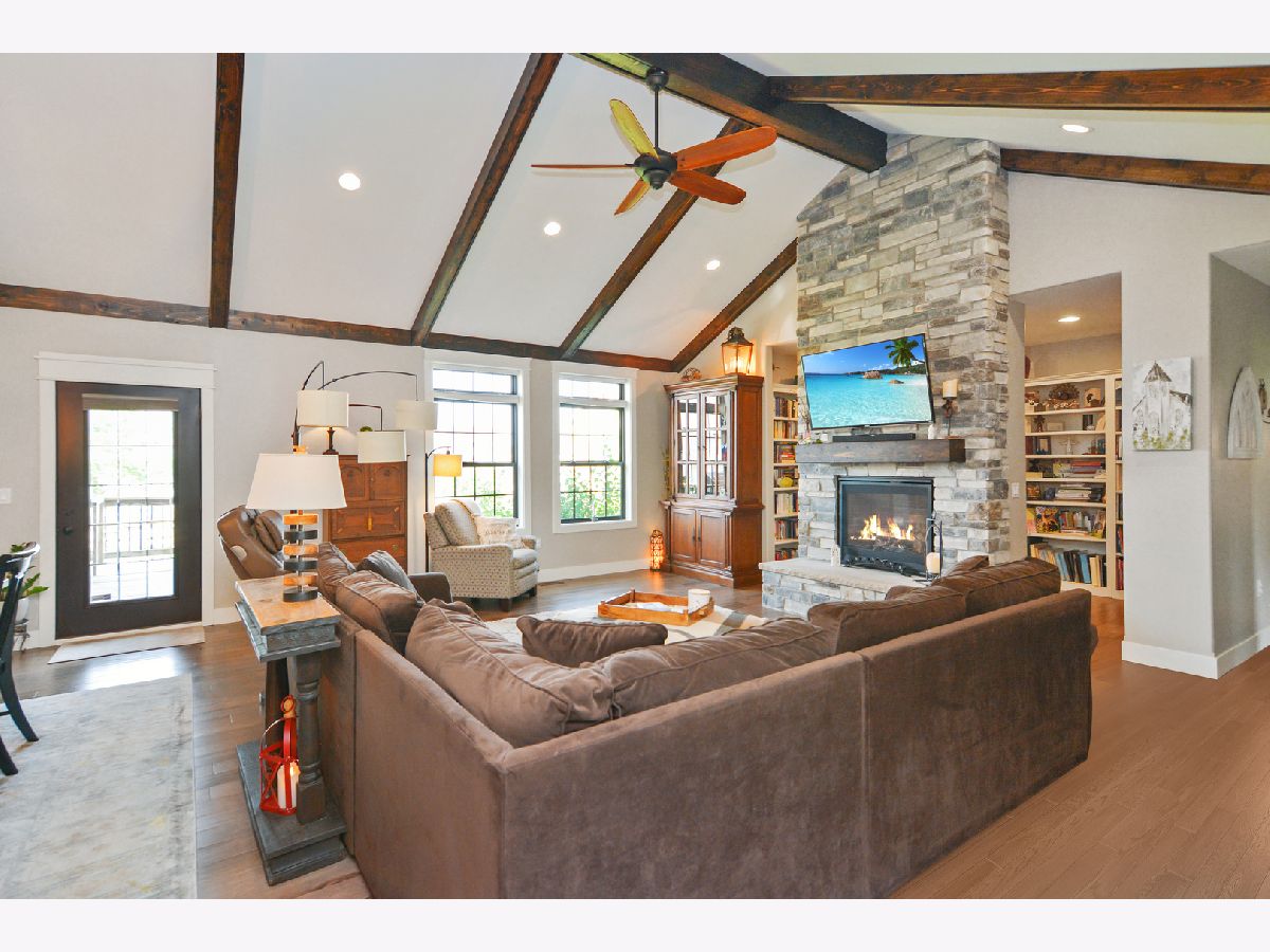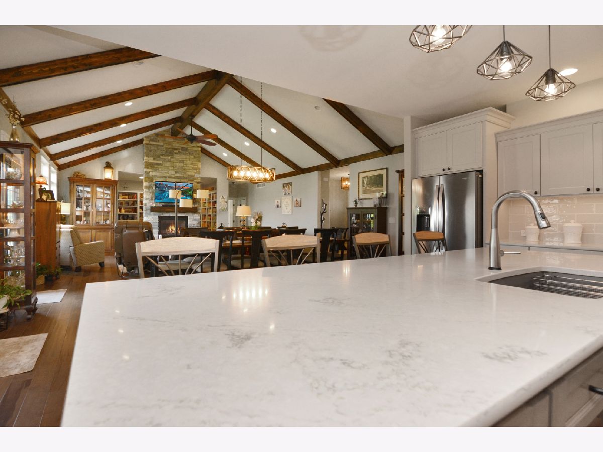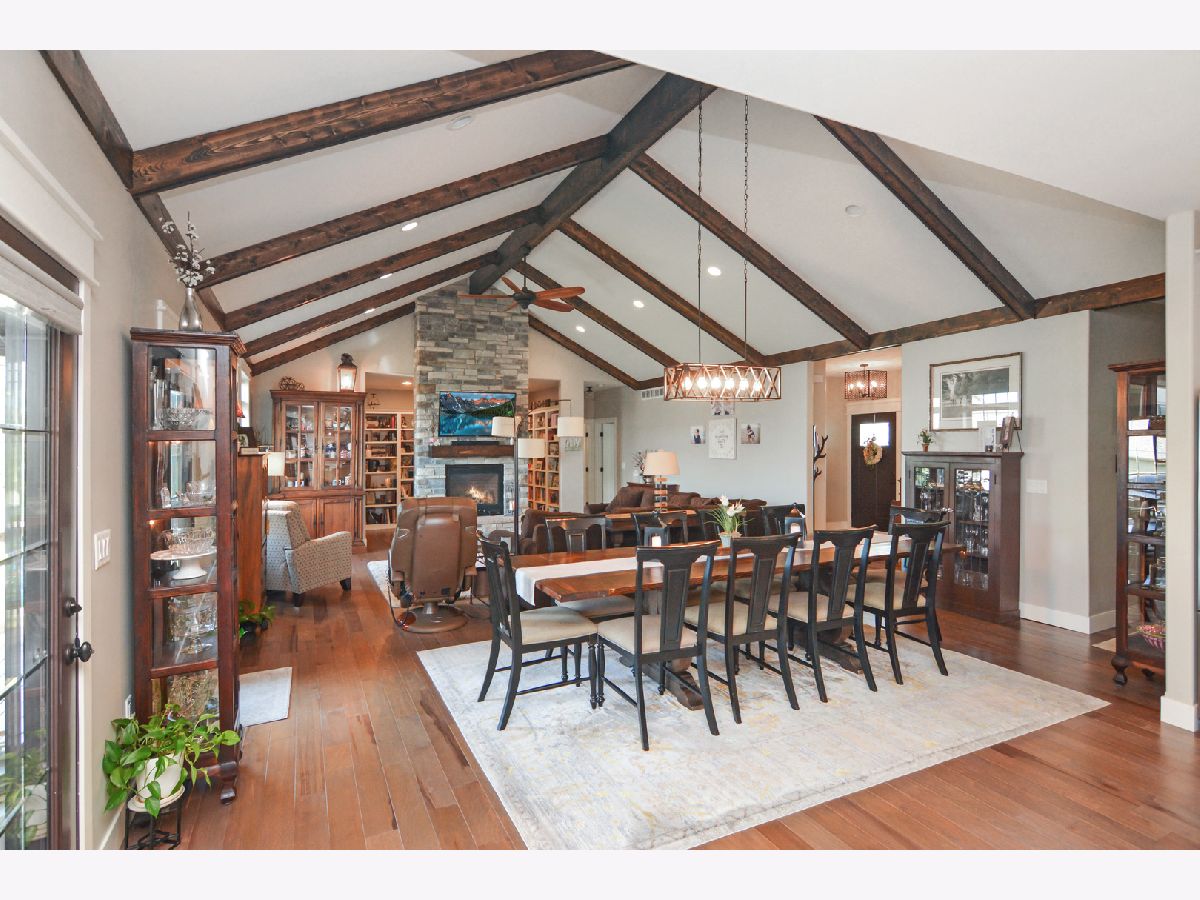Magazine Cover Worthy!! This custom-built one-owner ranch will take your breath away! A one-of-a-kind floor plan that is not only functional, but stunningly beautiful, as well! Offering 5 bedrooms, 3.5 baths, a heated 3-car garage and over 4,600 square feet, this North Bridge gem is appointed with ALL the bells and whistles, including hardwood flooring throughout most of the main level, 9' ceilings, gorgeous trim details and a well thought out design! The open main living area includes the great room that features a vaulted & beamed cathedral ceiling that reaches 15' high, a gas fireplace with floor to ceiling stone surround and the most incredible library behind it! The great room opens to the eat-in gourmet kitchen that is sure to inspire one's inner chef! It was custom designed and includes an abundance of top of the line custom Dynasty cabinetry with fantastic upgrades, Zodiac Quartz that looks similar to marble (but is more durable), gorgeous backsplash, an extra large island with breakfast bar and high end stainless appliances- including a gas stove, warming drawer and convection oven microwave! The kitchen also offers a swinging butler door that leads to the massive pantry/flex ROOM with built-ins, desk seating, wonderful counter space and custom cabinetry that serves as fantastic storage and also offers some bonus features like a built-in ironing board & gift wrapping station! The laundry closet is located just on the other side of this pantry/flex room. The generously sized 1st floor master includes a trey ceiling, dual walk-in closets (check out the photos to see the amazing custom shelving), an en-suite bath with a sprawling double vanity, hard wired heated towel bar and a huge tiled shower! The basement offers 9' ceilings, daylight windows, a 2nd kitchen (yes, you will count 4 ovens in this home), 3 bedrooms, a full bath, a MASSIVE family room and additional storage room! The yard is lovely and can be enjoyed from the deck or the screened in porch (there are glass inserts for the screen openings, too). This home was built and designed with the utmost care, so there are things that you will not see in many homes, including: Geothermal heating & cooling, copper plumbing lines, a water back-up sump pump, lighted enclosed storage under the screened porch, Nightlight outlets & USB plugs throughout the home, 2x6 exterior walls with R18 exterior wall insulation, R45 attic insulation, basement ceiling and interior walls insulated for sound, outside basement walls insulated with a moisture barrier (no wonder the basement is dry), Pella Windows, high quality paint, a heated garage... and on and on. Quality built, meticulously maintained, and shows like a model! This home is a dream come true!