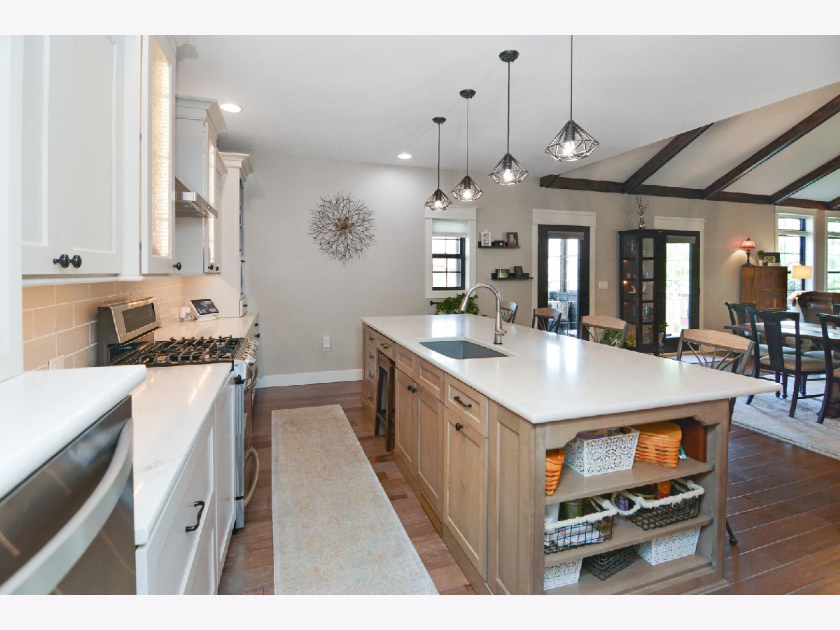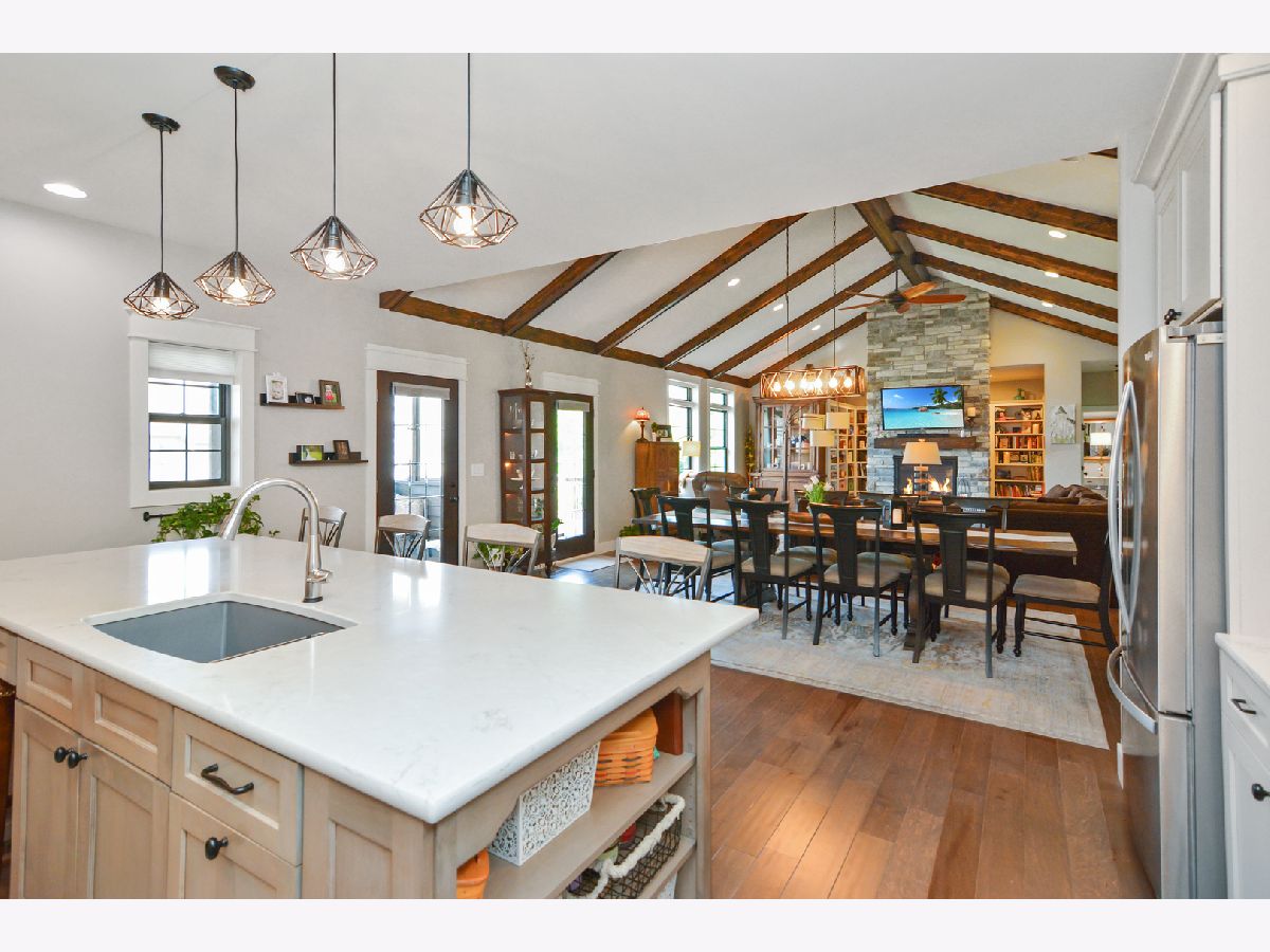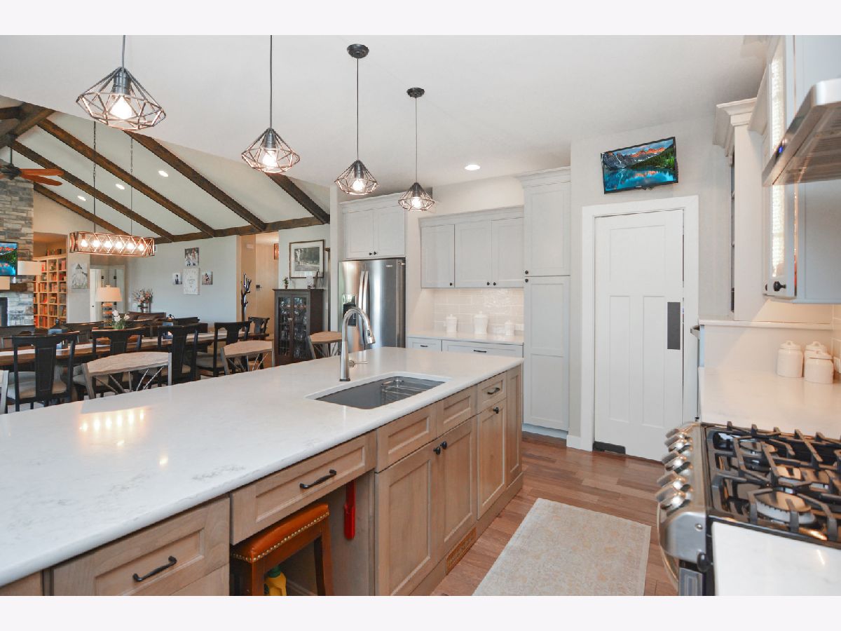 Magazine Cover Worthy!! This custom-built one-owner ranch will take your breath away! A one-of-a-kind floor plan that is not only functional, but stunningly beautiful, as well! Offering 5 bedrooms, 3.5 baths, a heated 3-car garage and over 4,600 square feet, this North Bridge gem is appointed with ALL the bells and whistles, including hardwood flooring throughout most of the main level, 9' ceilings, gorgeous trim details and a well thought out design! The open main living area includes the great room that features a vaulted & beamed cathedral ceiling that reaches 15' high, a gas fireplace with floor to ceiling stone surround and the most incredible library behind it! The great room opens to the eat-in gourmet kitchen that is sure to inspire one's inner chef! It was custom designed and includes an abundance of top of the line custom Dynasty cabinetry with fantastic upgrades, Zodiac Quartz that looks similar to marble (but is more durable), gorgeous backsplash, an extra large island with breakfast bar and high end stainless appliances- including a gas stove, warming drawer and convection oven microwave! The kitchen also offers a swinging butler door that leads to the massive pantry/flex ROOM with built-ins, desk seating, wonderful counter space and custom cabinetry that serves as fantastic storage and also offers some bonus features like a built-in ironing board & gift wrapping station! The laundry closet is located just on the other side of this pantry/flex room. The generously sized 1st floor master includes a trey ceiling, dual walk-in closets (check out the photos to see the amazing custom shelving), an en-suite bath with a sprawling double vanity, hard wired heated towel bar and a huge tiled shower! The basement offers 9' ceilings, daylight windows, a 2nd kitchen (yes, you will count 4 ovens in this home), 3 bedrooms, a full bath, a MASSIVE family room and additional storage room! The yard is lovely and can be enjoyed from the deck or the screened in porch (there are glass inserts for the screen openings, too). This home was built and designed with the utmost care, so there are things that you will not see in many homes, including: Geothermal heating & cooling, copper plumbing lines, a water back-up sump pump, lighted enclosed storage under the screened porch, Nightlight outlets & USB plugs throughout the home, 2x6 exterior walls with R18 exterior wall insulation, R45 attic insulation, basement ceiling and interior walls insulated for sound, outside basement walls insulated with a moisture barrier (no wonder the basement is dry), Pella Windows, high quality paint, a heated garage... and on and on. Quality built, meticulously maintained, and shows like a model! This home is a dream come true!