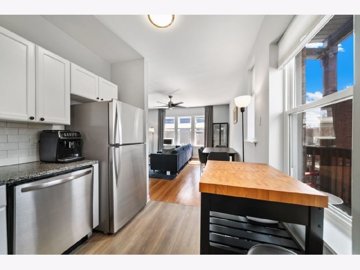 Sundrenched move in ready condo in Lincoln Square! Spacious living area with beautiful hardwoods that gets sunlight all day with room for a dining table flows in to the renovated kitchen with all new stainless steel appliances & new faucet. Two spacious bedrooms with generous closet space. bathroom has been updated with new toilet, faucet and shower fixtures. Balcony off the kitchen is perfect for grilling. Custom pull down shades throughout. All new LED light fixtures, new ceiling fans, new plug & light switch plates. Completely repainted in October 2022. Three new window air conditioners included, three new radiator valves. Rebuilt storm door & frame. Additional storage and deeded exterior parking space included in the price. Amazing location in the heart of Lincoln Square across the street from Davis Theater & Starbucks. Blocks to Welles Park, Western Brown Line & buses.