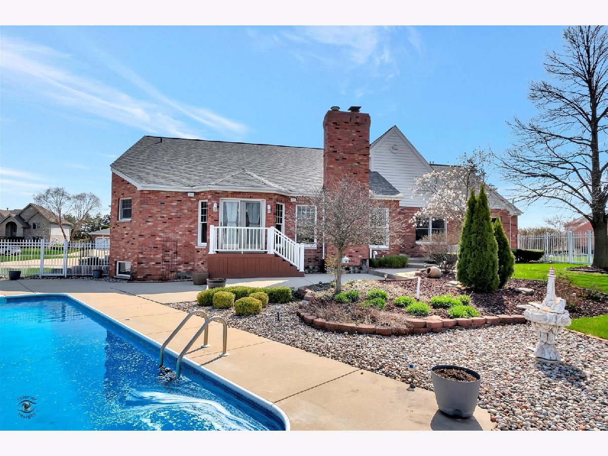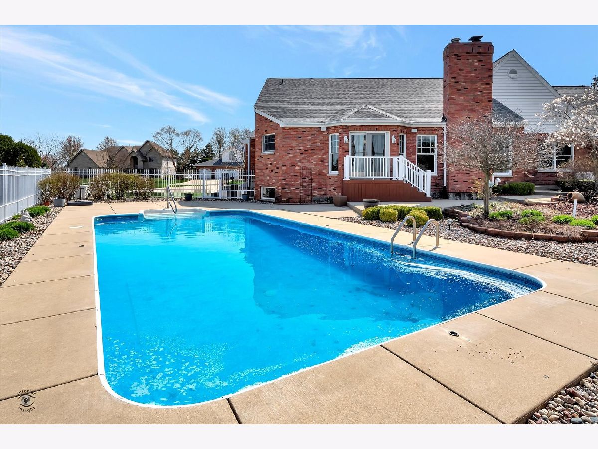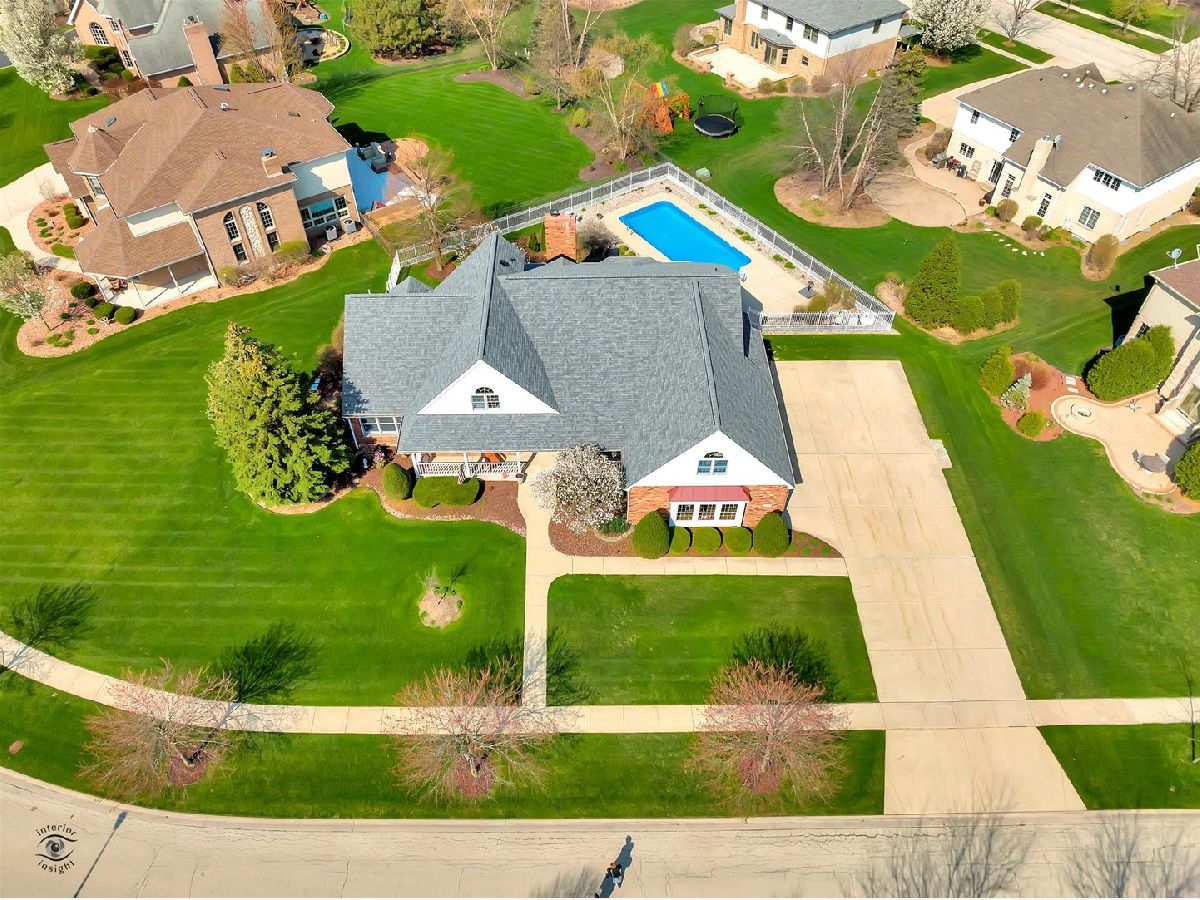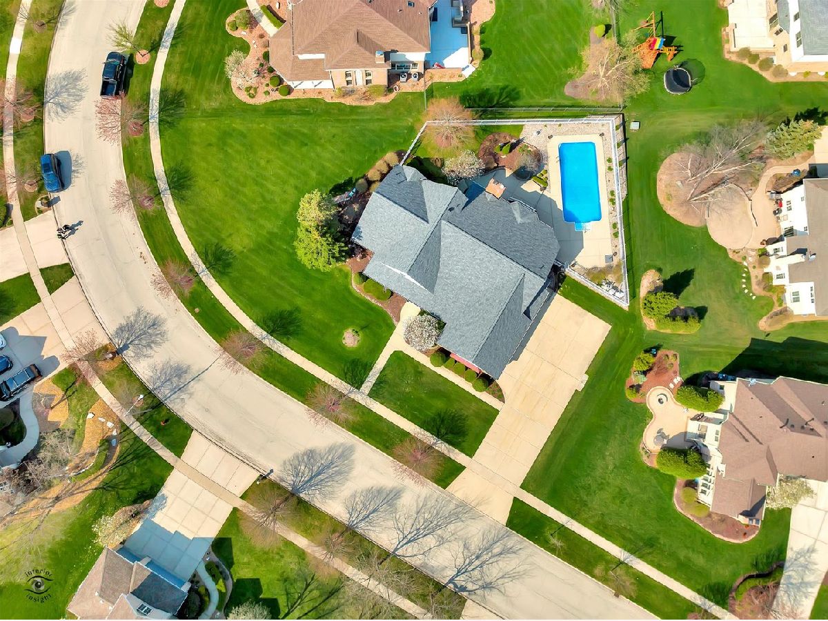 Captivate your senses at this inviting traditional-style Frankfort pool home with enduring charm! Gaze at its naturally lit, generously sized rooms and breathtaking soaring ceilings throughout. Arrive at the extra-long concrete driveway, leading to the three-car side-load garage and step inside the light and bright foyer, with dramatic views of the impressive oak staircase. You'll feel right at home in the over-sized open living room while the neutral colors, large windows, and an attractive fireplace with custom wood mantle provide a warm and welcoming feel. Entertaining will be a breeze with the home chef's dream kitchen which includes ample oak cabinetry, stainless steel appliances, center island with seating, a large walk-in pantry and bonus butler pantry adjacent to the craftsman style dining room with gleaming hardwood floor. The main floor owner's suite boasts two walk-in closets w/organizational shelves, glam bath w/jetted tub, separate shower & dual sinks. There is a work from home space that will be the envy of your Zoom meetings with admirable views of the backyard, built in shelving, large closet and French doors for privacy. This office space can easily be transformed into a main level bedroom! At the top of the stairs, you'll find a spacious loft with many useful possibilities. Another unique feature of this home is the dual stairs. The second stairway is located near the kitchen for easy access to the second floor. Summer memories will surely be made in the beautiful outdoor living space with a 16'x32' heated in-ground pool. All pool equipment conveys, including the mesh winter cover, and basketball & volleyball nets. The pool is 3 1/2 feet deep in the shallow and 5 1/2 feet in the deep end. If you're looking for added living space then look no further than the smartly finished basement which includes a full bath, lush carpet, built-in cabinetry, and a huge dedicated storage room. This home boasts many upgrades including new kitchen flooring, new roof in 2020, pool vinyl liner in 2018, central vacuum, ceiling fans throughout, reverse osmosis water tank, garbage disposal, furnace humidifier, radiant heated basement and garage flooring, fully fenced yard, and in-ground sprinkler system. All appliances convey. Let your new journey begin at 22402 Hughes Street, Frankfort!
