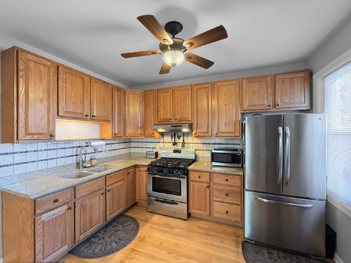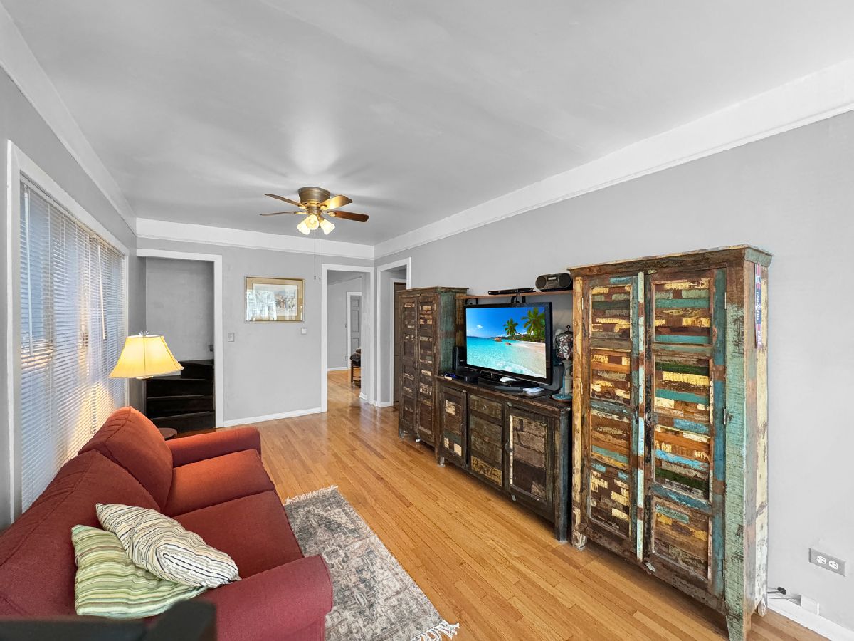 SPACIOUS BRICK BUNGALOW WITH PRIDE OF OWNERSHIP! This beautifully maintained Chicago bungalow offers 2 generously sized bedrooms with ample closet space on each level, plus a third bedroom in the finished lower level, providing additional living space. The updated kitchen features newer cabinets, while the stunning natural woodwork and gleaming hardwood floors add timeless charm throughout the home. A formal dining room is perfect for gatherings, and decorative iron screen doors enhance both the front and back entrances. The versatile attic includes a bedroom and additional space that can serve as a 4th bedroom or be customized to fit your needs. The exterior boasts professional landscaping and a spacious backyard with a covered concrete area that complements the large 2-car garage. Recent updates include a new roof (2021), new chimney stainless steel liner and cap (2022), tuckpointing (2022), and a new rear wood staircase off the porch (2023). Situated just 1/2 block from Blackhawk Park and conveniently located near Cicero and Fullerton, this home offers the perfect balance of comfort and convenience. ***Multiple Offers Received***