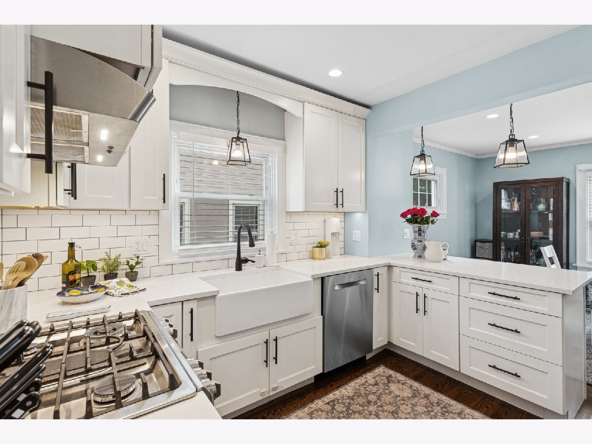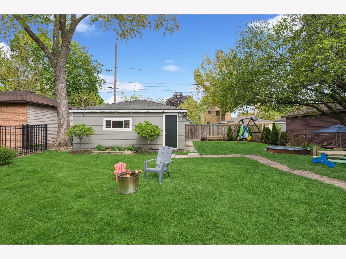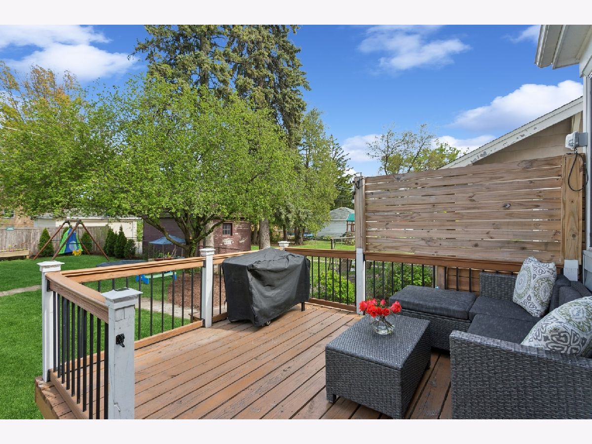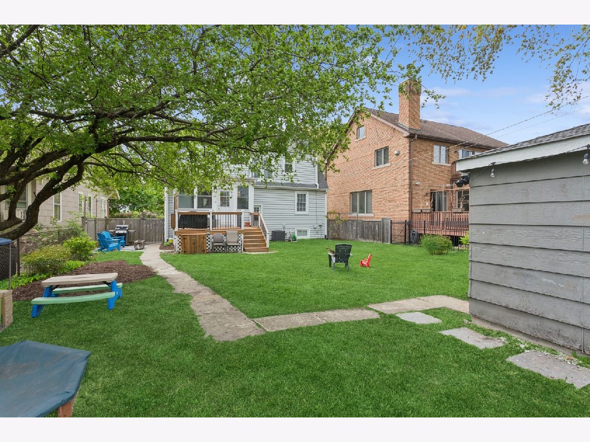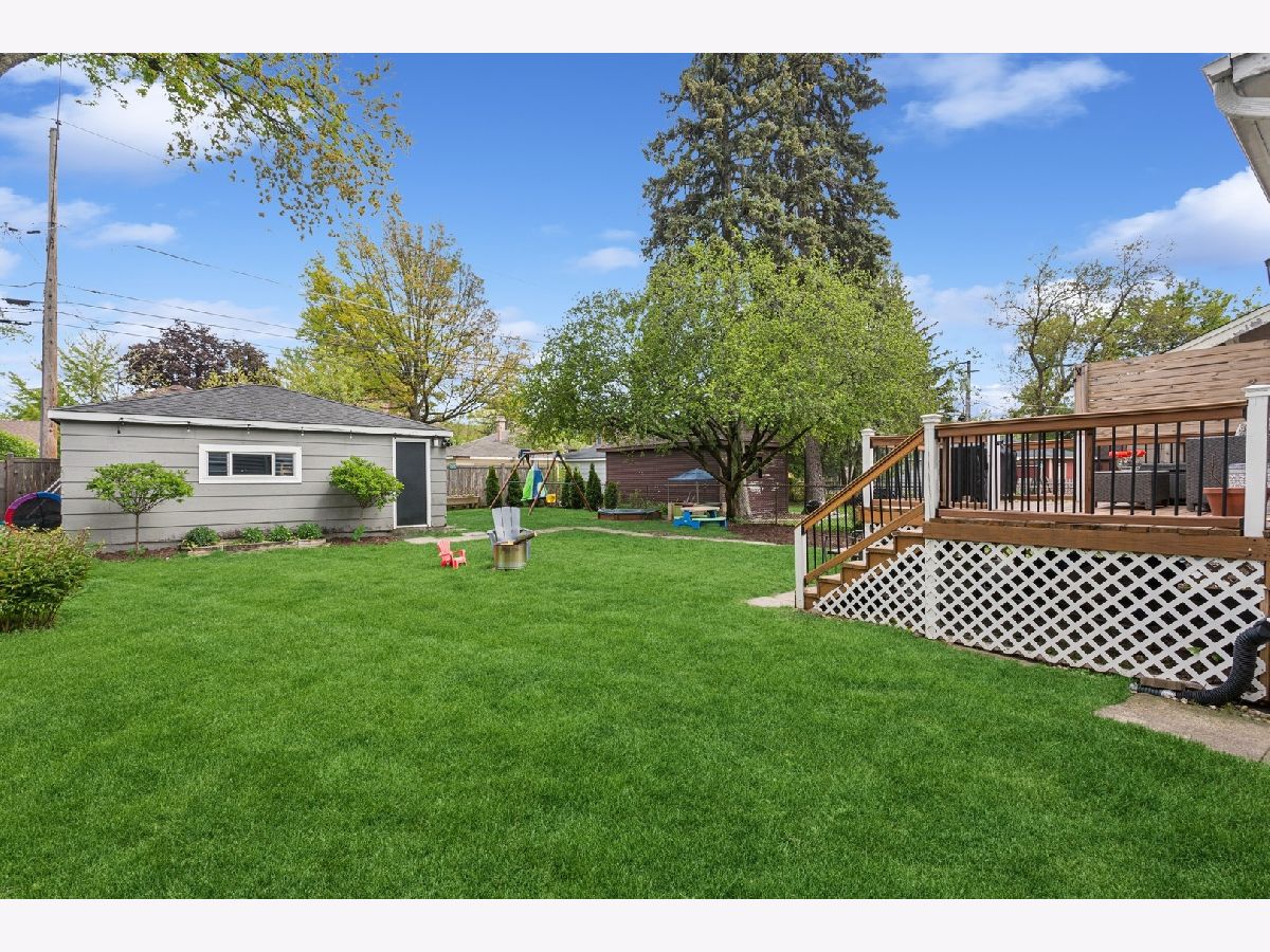 Welcome to this charming 3-BR | 3.1-Bath Cape Cod in the sought-after Carpenter School district! Beautiful updates throughout will tug at your heartstrings from the moment you arrive. Step into the private foyer and you're greeted by an original leaded-glass door, a captivating detail that sets the tone for the warmth and character found throughout the home. The spacious living room features custom built-ins that span the wall, offering both style and storage, while surrounding a cozy fireplace. Elegant sconce lighting adds a touch of sophistication. The kitchen (2020), thoughtfully opened to the dining room, is a true showstopper. It features crisp white cabinetry, white quartz countertops, classic subway tile backsplash, stainless steel appliances, and farmhouse-style fixtures. A breakfast bar with countertop seating finishes this bright and airy space, perfect for entertaining. A convenient mudroom sits just off the kitchen, offering handy storage and access to the roomy deck and large backyard. An updated powder room completes the main level. Upstairs, you'll find three bedrooms, including a primary suite that fits a king-sized bed. The newly added full ensuite bath (2020) showcases a sliding barn door and subway tiles that echo the kitchen's aesthetic. Two additional bedrooms share a full hall bath. The full finished basement offers an additional gathering space for family and friends, along with an oversized fourth bedroom with newer carpet. There's also a third full bath and a laundry room for added convenience. Be pleasantly surprised by the spacious backyard ideal for entertaining, play, and outdoor enjoyment with two distinct zones for relaxing: the deck, plus a remote nook with a mounted TV-your own outdoor retreat! A detached 2.5-car garage with overhead storage completes the exterior. Located in a friendly neighborhood near Centennial Park's pool and fitness center, Uptown's restaurants, bars and shops, Park Ridge Library, Farmers Market, Metra and more-this home has it all!