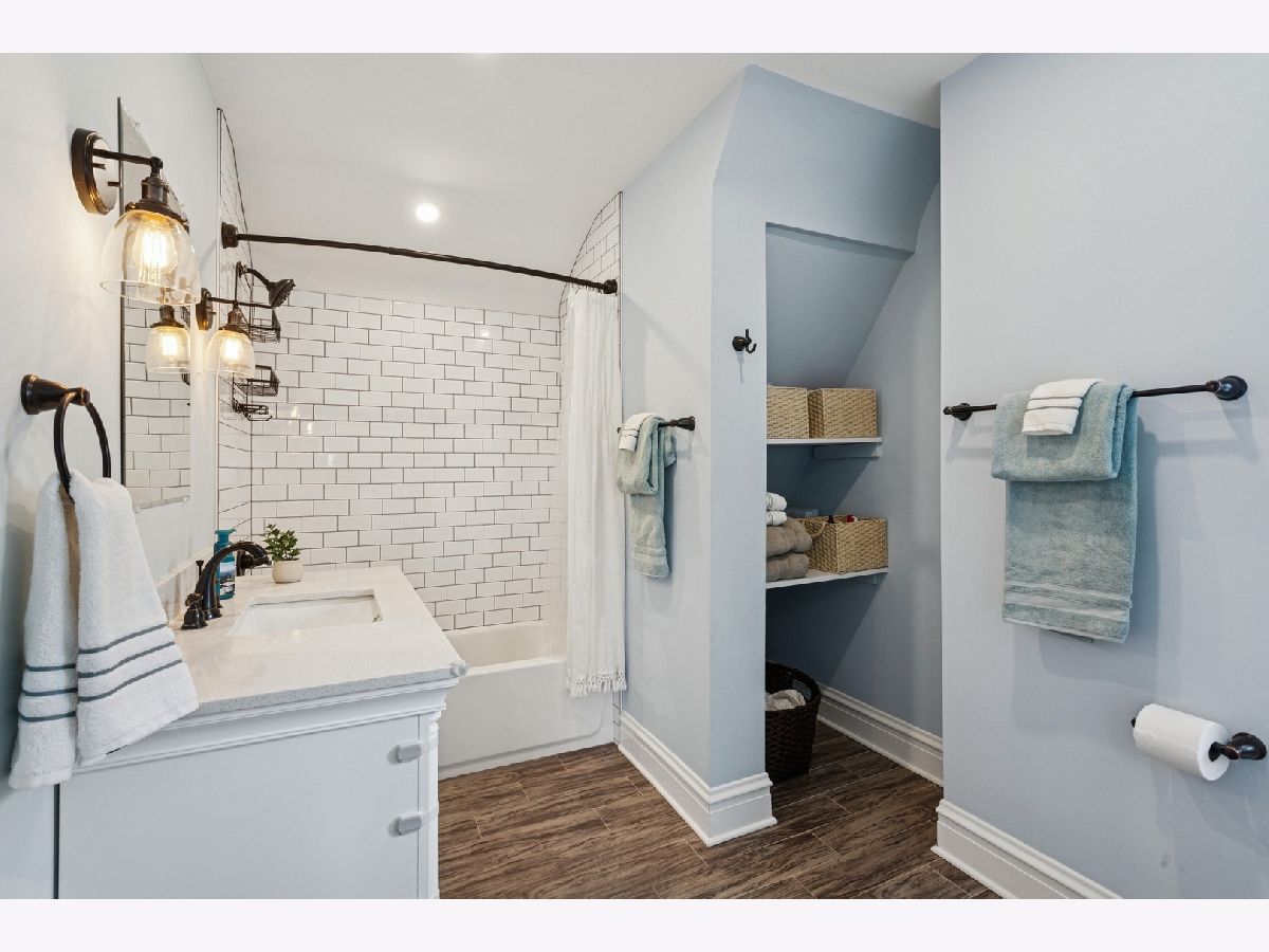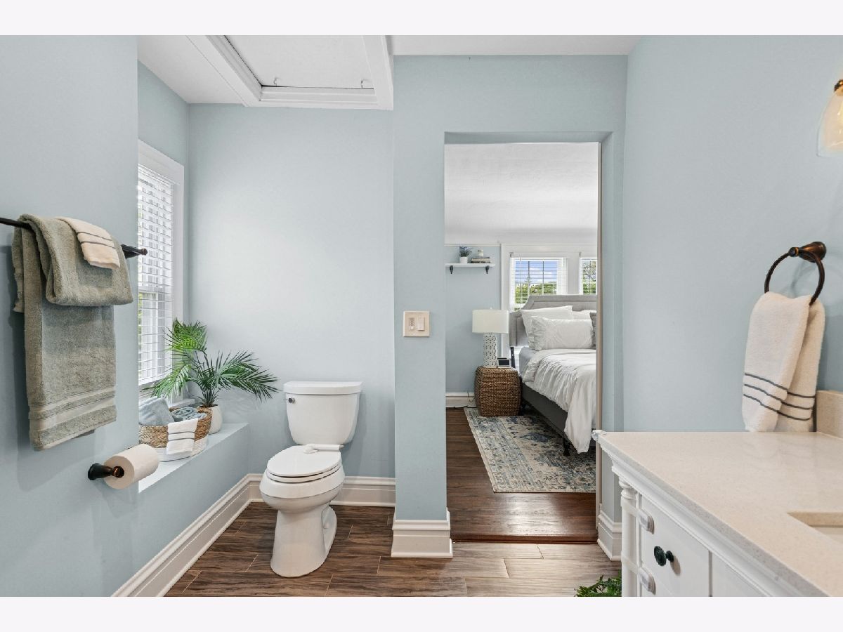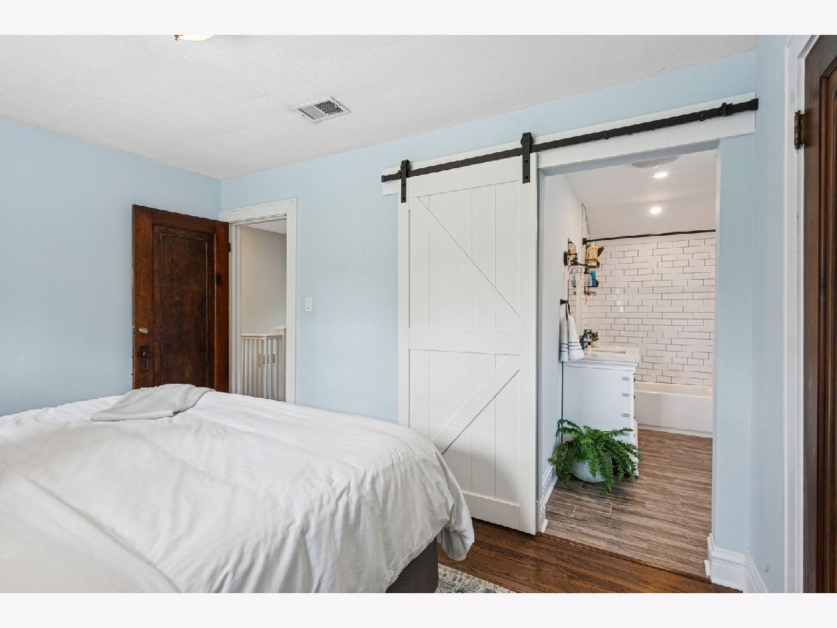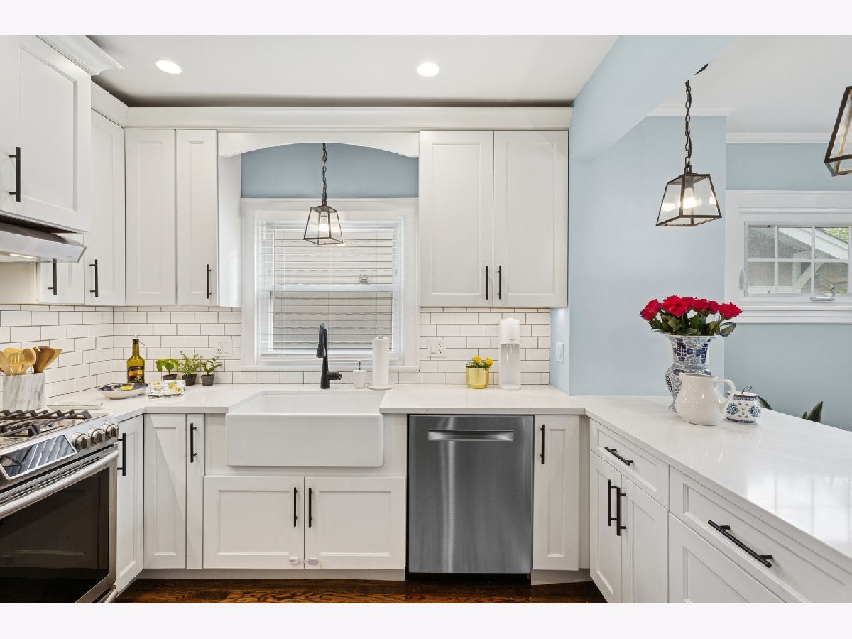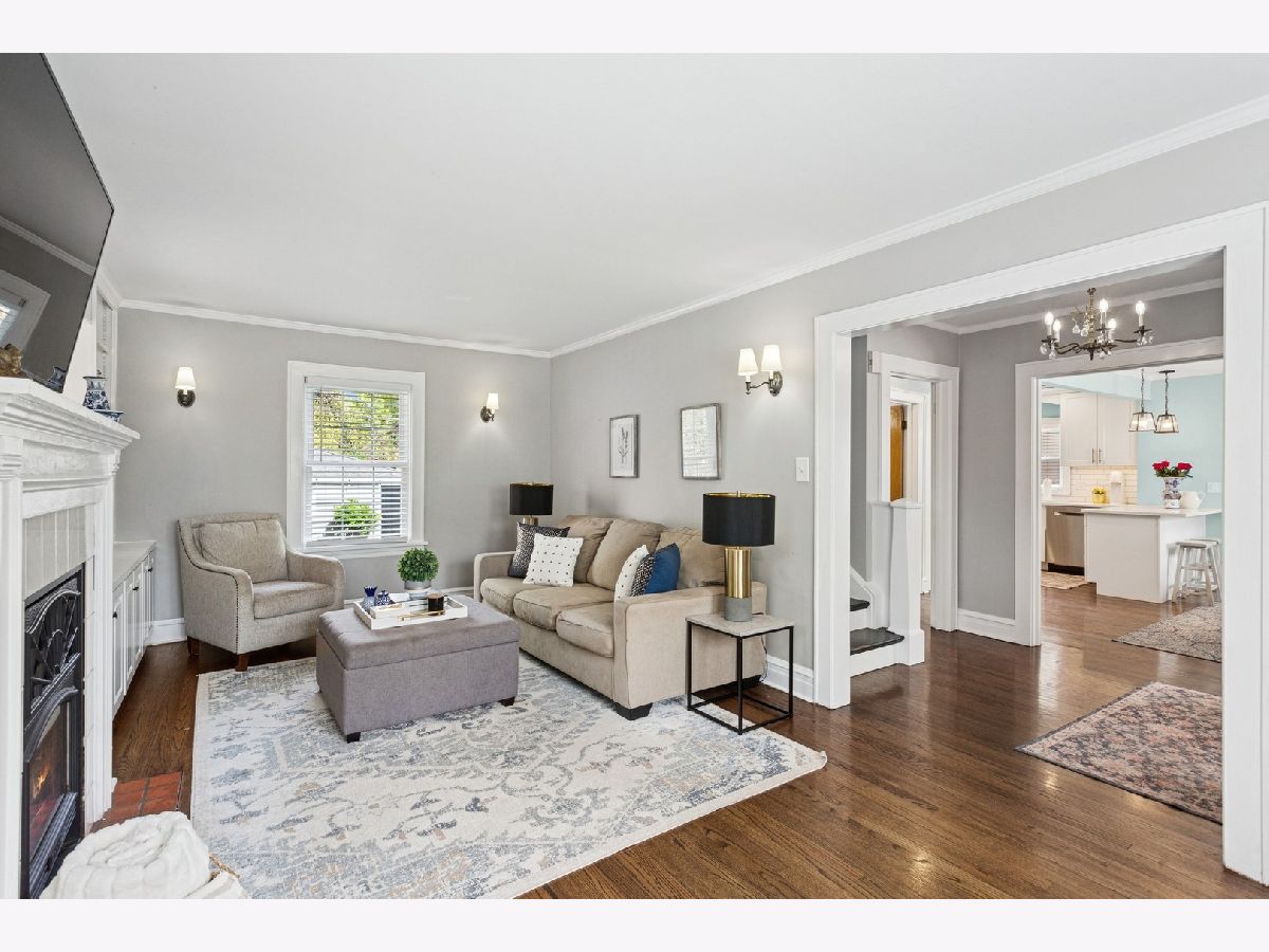 Welcome to this charming 3-BR | 3.1-Bath Cape Cod in the sought-after Carpenter School district! Beautiful updates throughout will tug at your heartstrings from the moment you arrive. Step into the private foyer and you're greeted by an original leaded-glass door, a captivating detail that sets the tone for the warmth and character found throughout the home. The spacious living room features custom built-ins that span the wall, offering both style and storage, while surrounding a cozy fireplace. Elegant sconce lighting adds a touch of sophistication. The kitchen (2020), thoughtfully opened to the dining room, is a true showstopper. It features crisp white cabinetry, white quartz countertops, classic subway tile backsplash, stainless steel appliances, and farmhouse-style fixtures. A breakfast bar with countertop seating finishes this bright and airy space, perfect for entertaining. A convenient mudroom sits just off the kitchen, offering handy storage and access to the roomy deck and large backyard. An updated powder room completes the main level. Upstairs, you'll find three bedrooms, including a primary suite that fits a king-sized bed. The newly added full ensuite bath (2020) showcases a sliding barn door and subway tiles that echo the kitchen's aesthetic. Two additional bedrooms share a full hall bath. The full finished basement offers an additional gathering space for family and friends, along with an oversized fourth bedroom with newer carpet. There's also a third full bath and a laundry room for added convenience. Be pleasantly surprised by the spacious backyard ideal for entertaining, play, and outdoor enjoyment with two distinct zones for relaxing: the deck, plus a remote nook with a mounted TV-your own outdoor retreat! A detached 2.5-car garage with overhead storage completes the exterior. Located in a friendly neighborhood near Centennial Park's pool and fitness center, Uptown's restaurants, bars and shops, Park Ridge Library, Farmers Market, Metra and more-this home has it all!