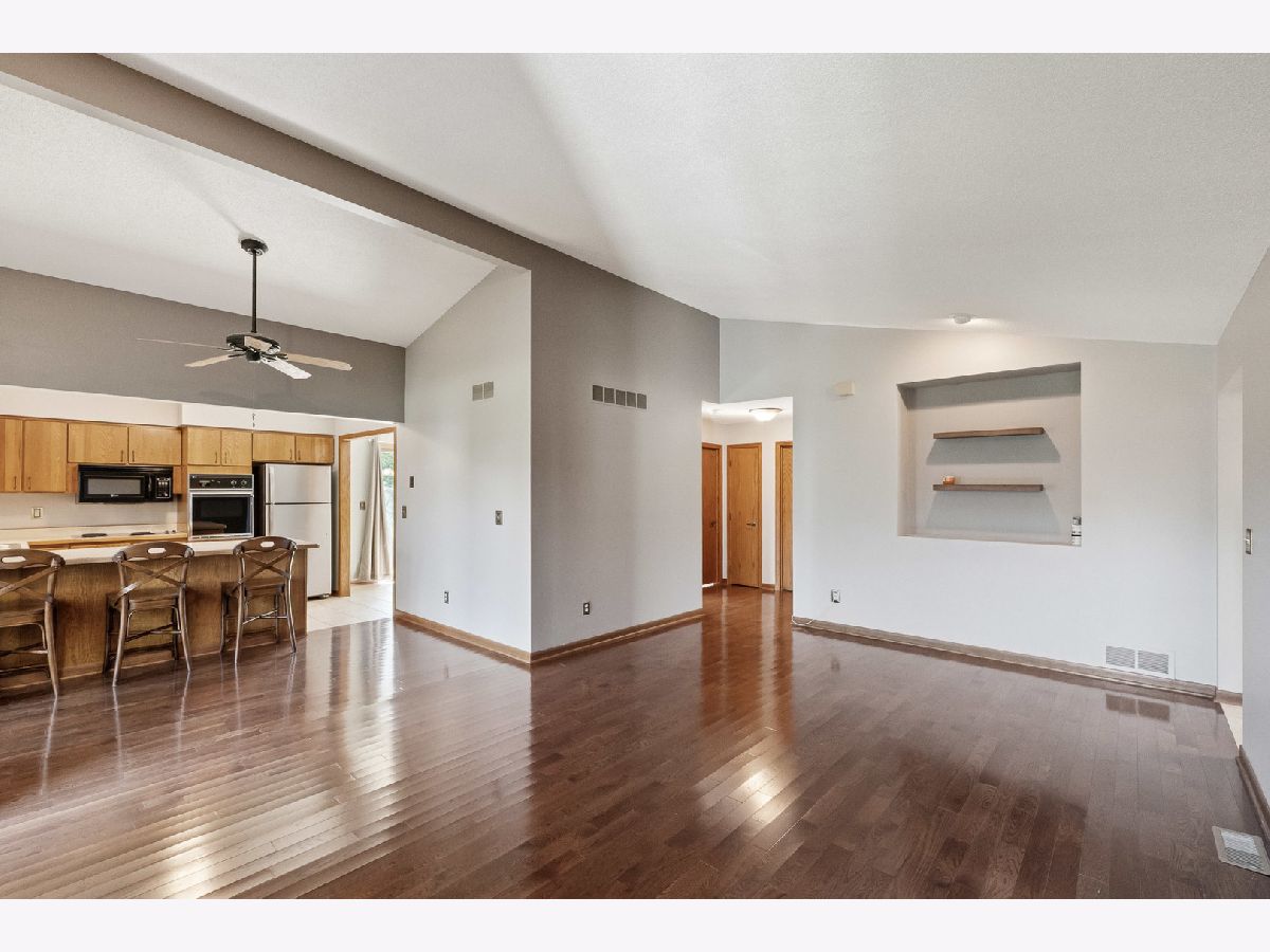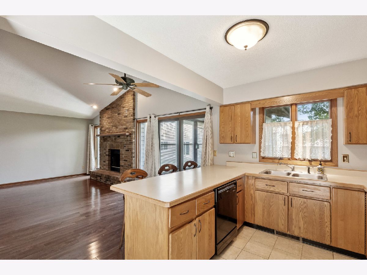 Well located duplex in quiet residential area on cul de sac within 5 min to 88, shopping, banking, schools and more. Open living room with hardwood floors and floor to ceiling brick wood burning fireplace and vaulted ceiling. Fully equipped Kitchen w/vaulted ceiling and breakfast bar. Huge primary suite with w/dual closets & dual sinks. Main floor laundry. Well maintained hardwood doors and trim throughout main level. Screened porch off kitchen and living room. Lower level family room with potential to finish off more living space. Dining room could be converted to 3rd bedroom. 2 car garage. Quick close possible.